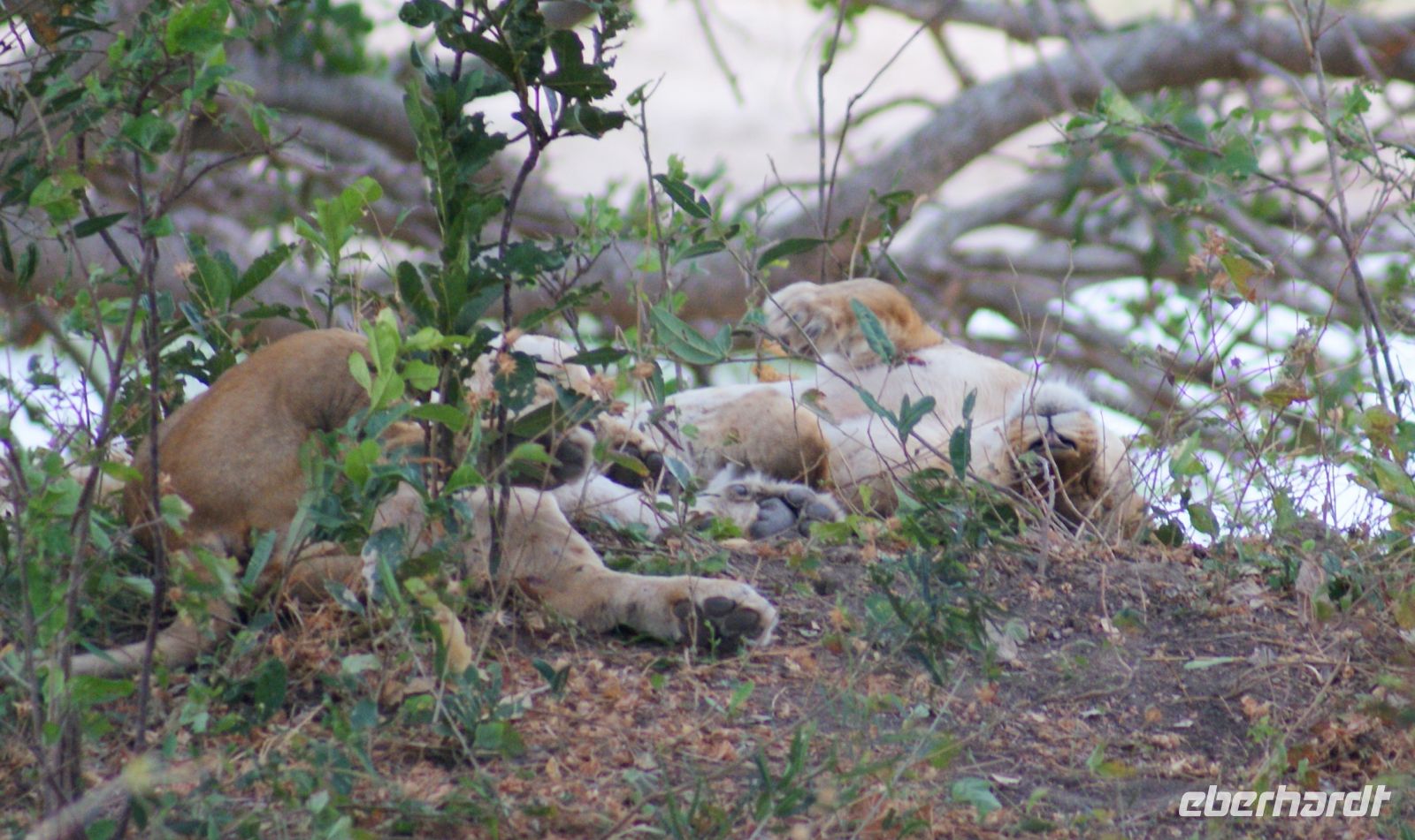 Und dann passiert es: Nick hört über den Buschfunk, dass Löwen gesichtet wurden. Somit flitzen auch wir mit unserem Landcruiser dort hin. Sehen zunächst: einen Löwen. Zuerst nur einer halb verborgen auf einem Felsen. Wir stoppen den Wagen, beobachten in Stille. Mit der Zeit gesellt sich ein weiterer dazu, dann noch einer. Unsere Geduld wird belohnt – ganze 1,5 Stunden verweilen wir an diesem Hügel, und nach und nach offenbart sich das volle Bild: fünf majestätische Löwen räkeln sich träge in der Nachmittagssonne, recken die Köpfe, gähnen und beobachten uns mit derselben Neugier, mit der wir sie bestaunen. Wir fühlen uns mittendrin im "König-der-Löwen"-Film – live und unvergesslich. Vor allem freut uns, dass sich unsere Geduld ausgezahlt hat. Kurz bevor wir das Camp erreichen, erleben wir noch einen letzten Höhepunkt: neun Rothschildgiraffen grasen genüsslich in der Abenddämmerung. Ihr friedlicher Gang, die eleganten Silhouetten im Gegenlicht – es wirkt fast wie gemalt. Ein perfekter Abschluss dieses unvergesslichen Safaritages.