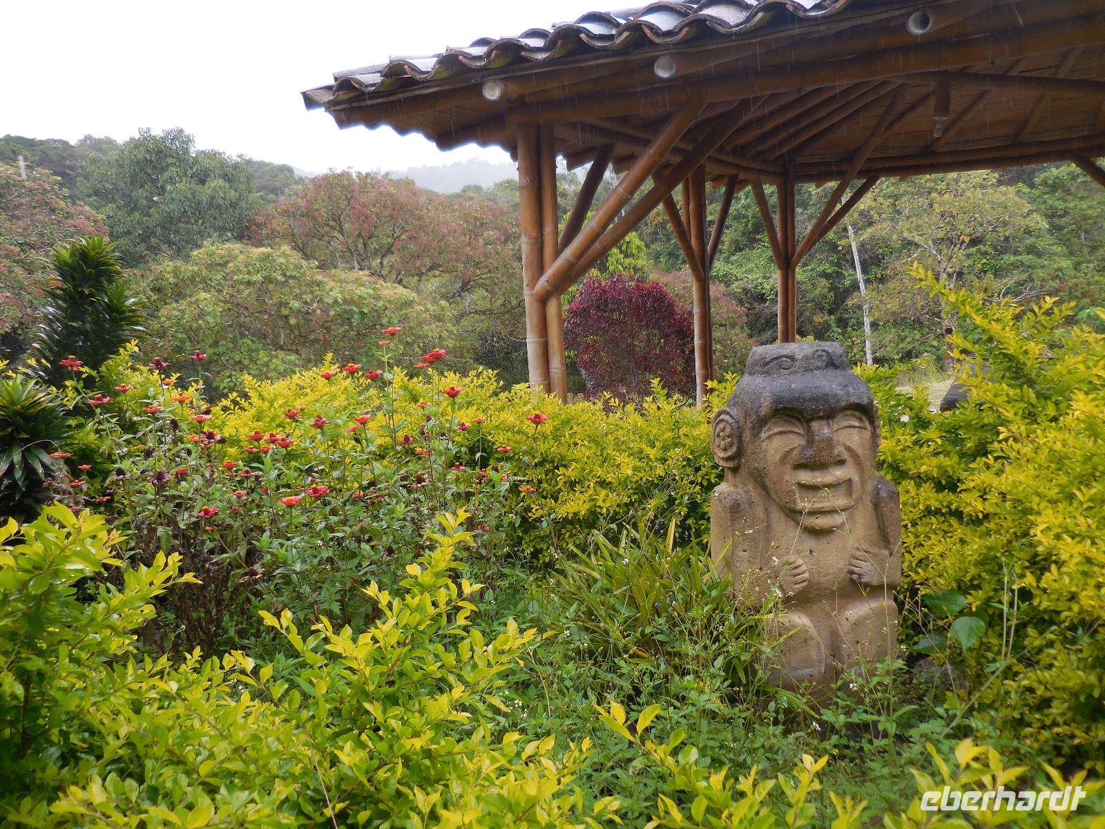 Nach einer regenreichen Nacht, viel Hundegebell und Hahnengeschrei starteten wir um 8:30 Uhr mit dem heutigen Tagesprogramm. Holger holte uns am Hotel ab und wir fuhren zum nicht weit entfernten Eingang des Archäologischen Parks von San Augustin. Der Park selbst misst eine Fläche von 78 Hektar und wir begannen die Besichtigung in einem kleinen Museum wo Holger uns vieles zur Entstehung und Bedeutung der Funde erklärte. Konrad T. Preuß war der 1. deutsche Archäologe (Anthropologe) der hier um 1914 diverse Ausgrabungen gemacht hat. Auf einem Weg von etwa 5 Kilometer bestaunten wir die unterschiedlichen Formen und Gesteine die alle unterschiedliche Figuren darstellten. Keine glich der anderen. Zwischendurch bestaunten wir auch etliche Orchideenarten, denn Kolumbien hat insgesamt ca. 4.300 Arten zu bieten. Da der Regen stärker wurde, liefen nicht alle den gesamten Weg und zwischendurch wärmten wir uns bei Kaffee oder Aromatica wieder auf.