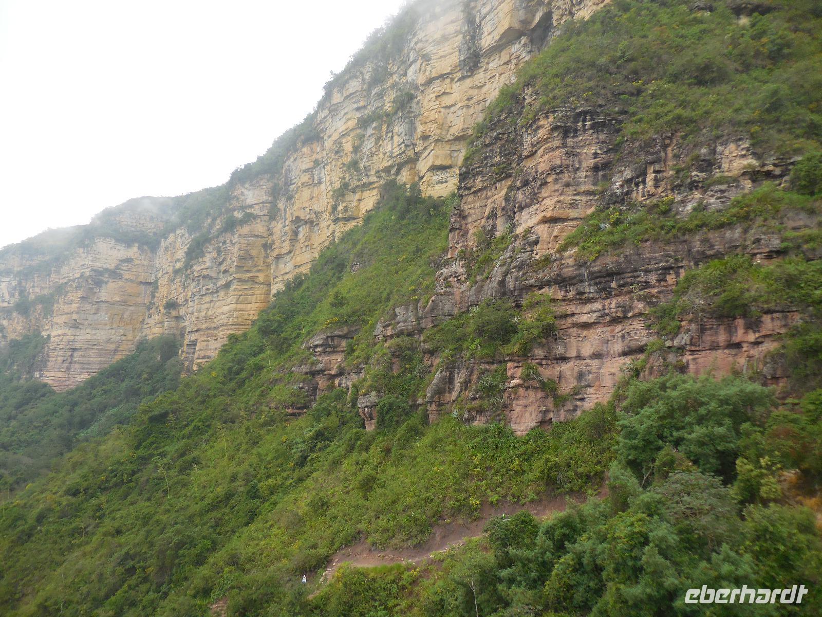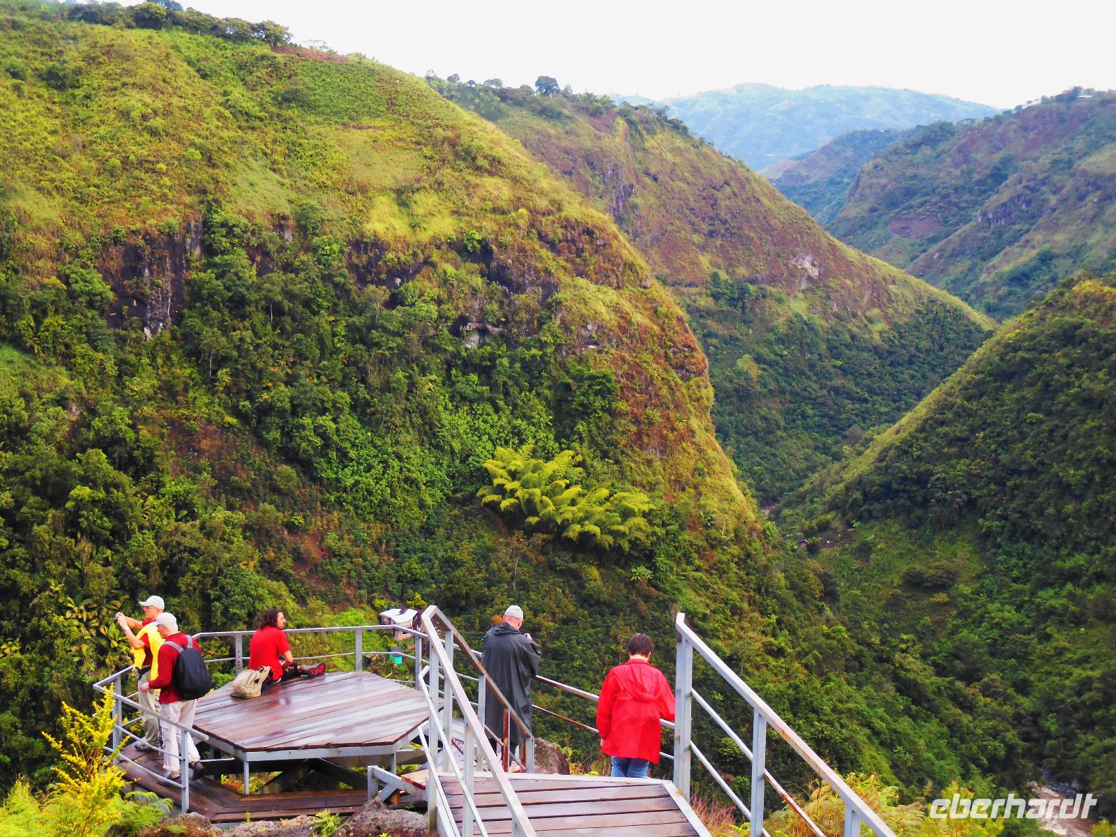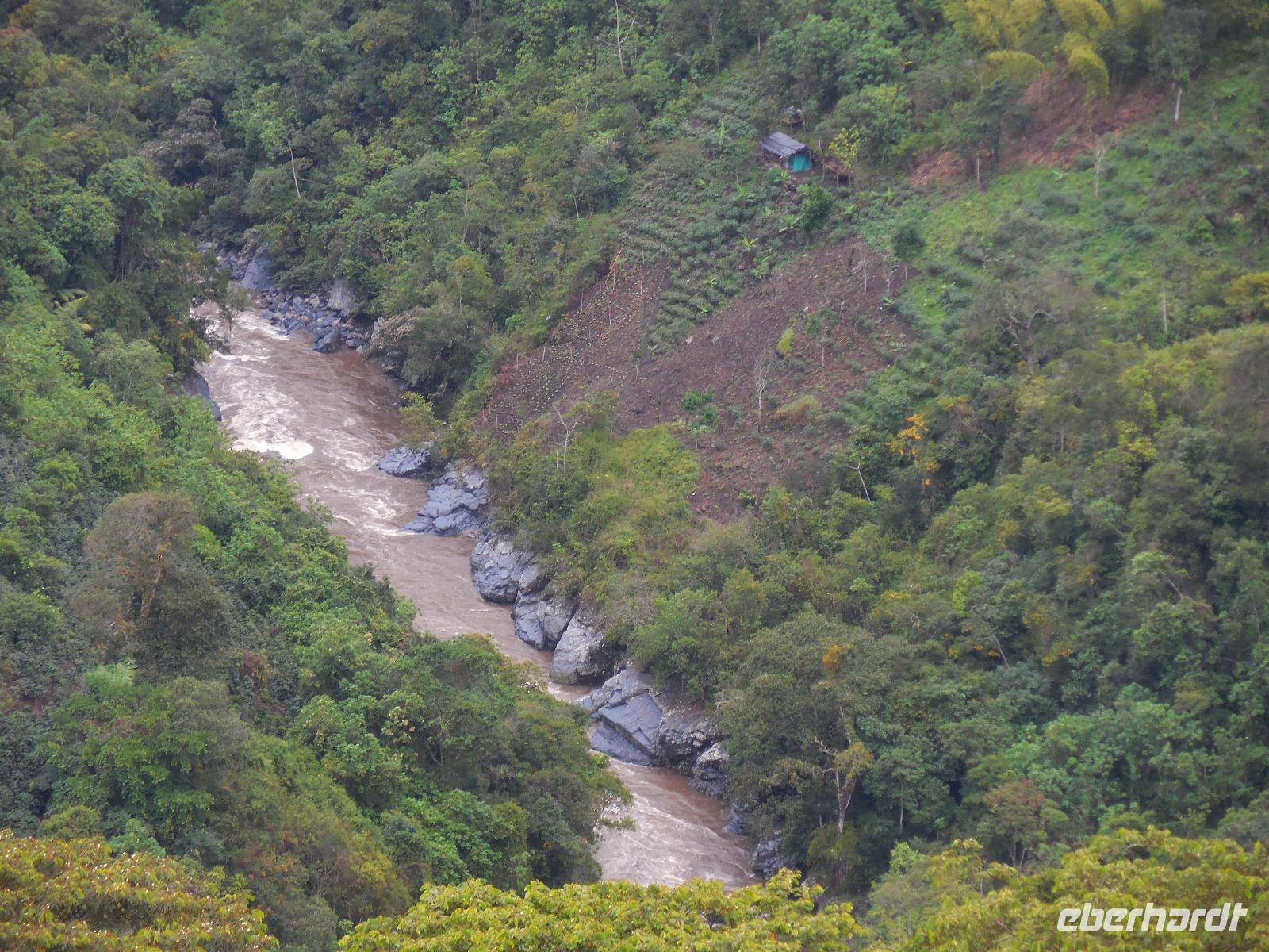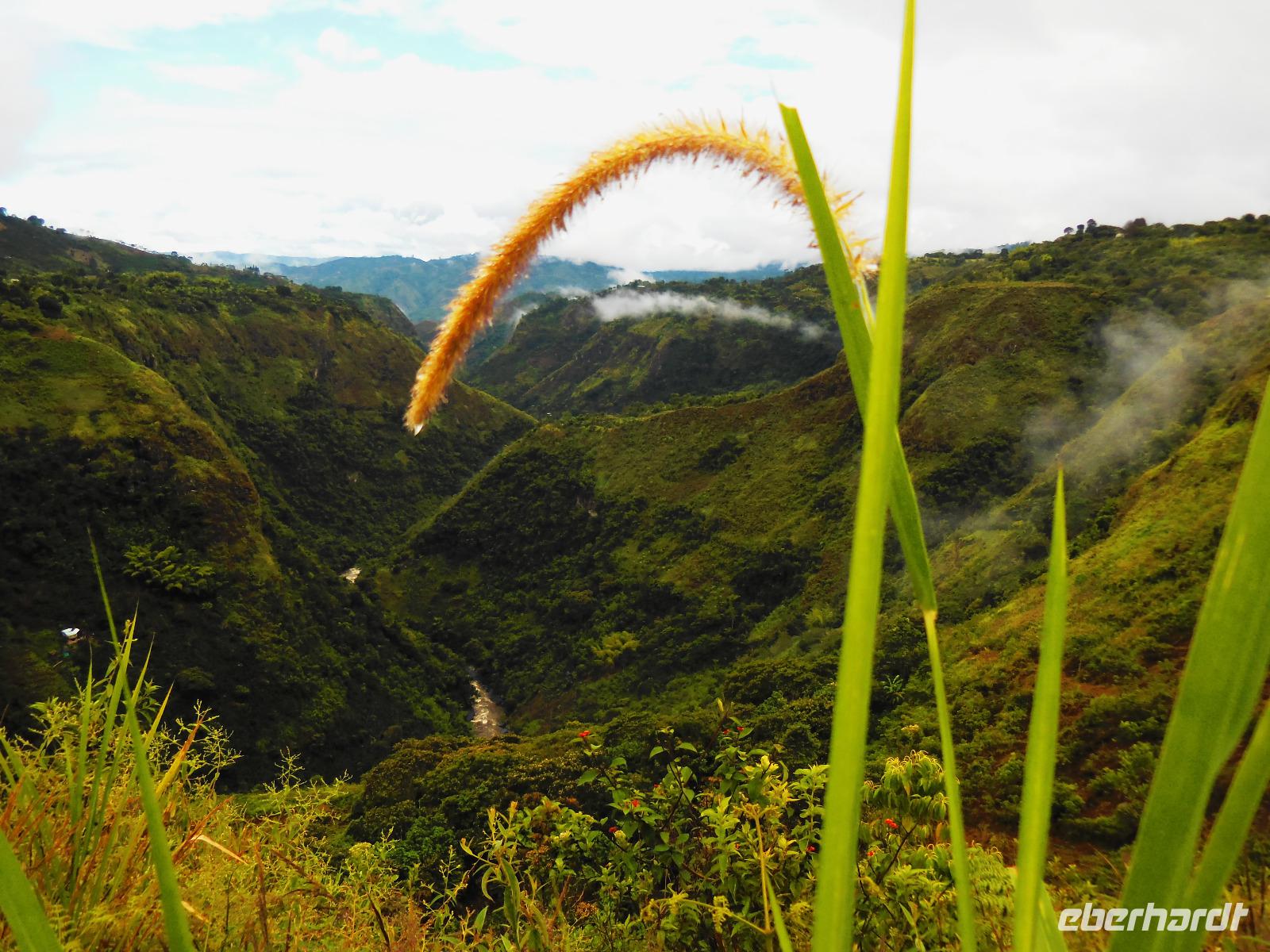 Das heutige Mittagessen nahmen wir erneut gemeinsam mit Kolumbianern an der Straße ein und es schmeckte wieder super. Anschließend kehrten wir kurz zum Hotel zurück, zogen uns um und machten uns erneut auf den Weg zur nächsten Wanderung. Drei mutige Reiseteilnehmer absolvierten den Weg auf dem Pferd. Der Rest ging zu Fuß nach Chakira (nicht zu verwechseln mit der kolumbianischen Sängerin Shakira :-)). Hier bestaunten wir die beeindruckend schhöne Landschaft hoch über der Magdalena-Schlucht. Und da es geregnet hatte, sahen wir auch etliche Wasserfälle. 18 Uhr waren wir zurück im Hotel, machten uns frisch und genossen unser Abendessen bei einem Italiener nicht weit vom Dorf entfernt