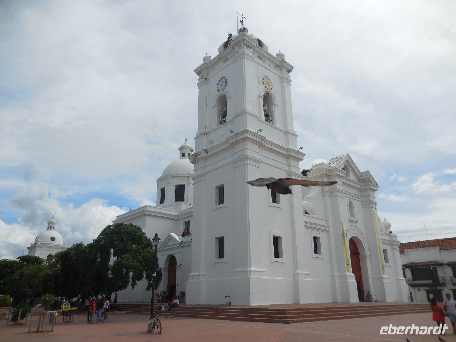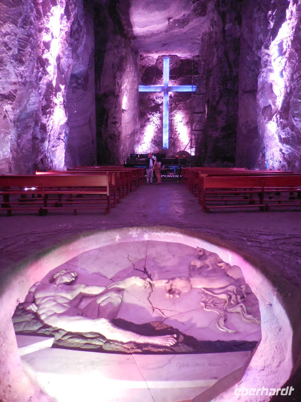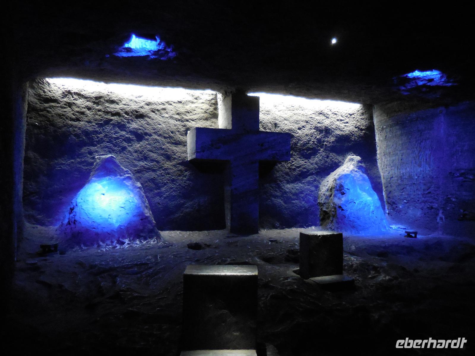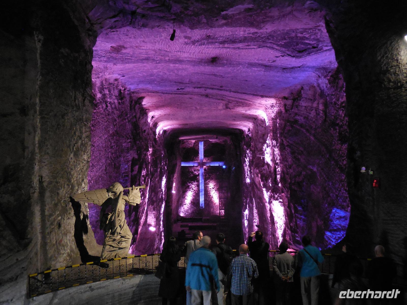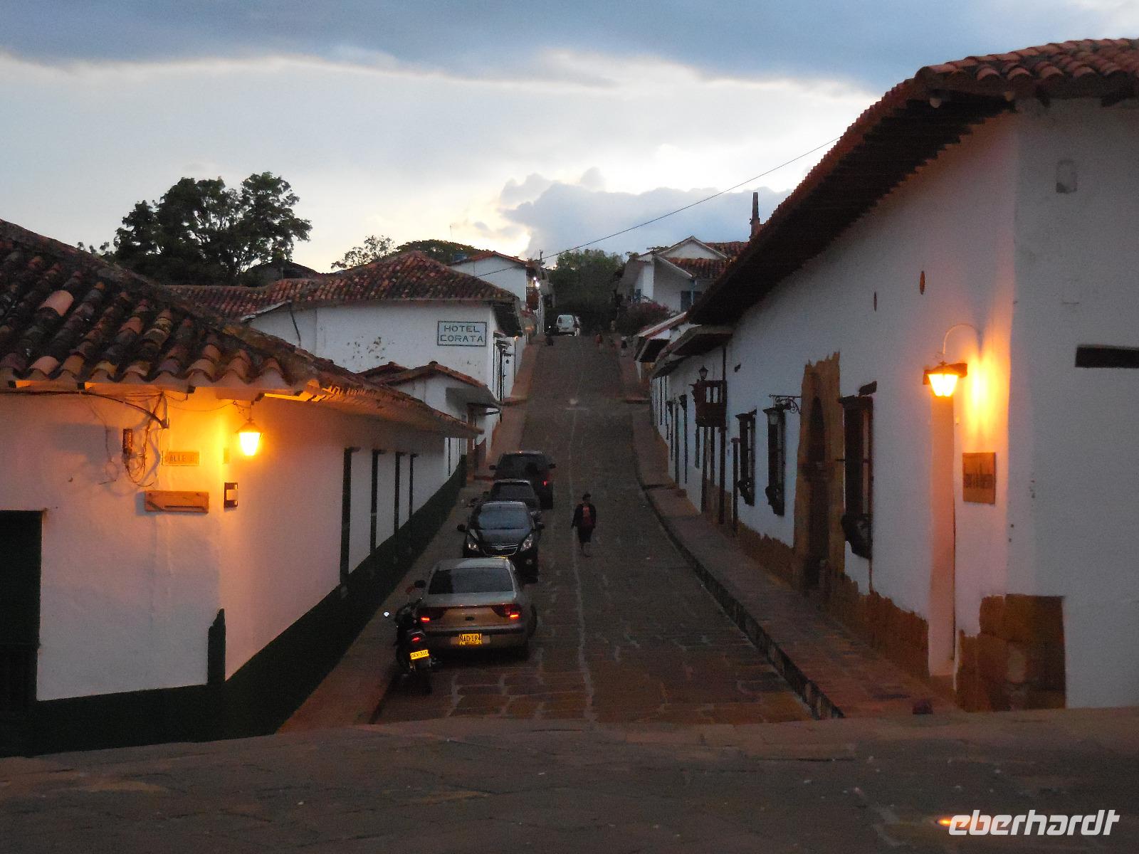 Der frühe Vogel fängt den Wurm heißt es so schön und deshalb standen wir mit der Sonne auf. Leider war diese heute Morgen unauffindbar, denn es hatte die ganze Nacht in Strömen geregnet. Aber davor ließen wir uns nicht abschrecken und fuhren zum Flughafen nach Neiva. Der Flieger hatte aufgrund des Wetters über eine Stunde Verspätung so dass wir erst kurz vor dem Mittag wieder in Bogota landeten. Hier empfing uns erneut Luis und wir fuhren gleich raus aus der 10 Millionen-Metropole Bogota in Richtung Norden. Kurze Zeit später erreichten wir das Örtchen Zipaquira und aßen hier in einem guten aber preisintensiven Restaurant zu Mittag. Eine große Portion Fleisch oder einen Teller voll Suppe gab es für jeden. Weitere fünf Minuten Fahrtweg von hier bergauf erreichten wir gegen 13:30 Uhr die bekannte Salzkathedrale, wovon es wohl nur zwei Stück auf der Welt gibt. Die zweite steht in Polen. Im weitläufigen Areal der Salzkathedrale hielten wir uns knappe drei Stunden auf. Mehr Zeit hatten wir leider nicht, denn wir mussten noch weitere drei Stunden Fahrt für den heutigen Tag in Kauf nehmen. Das nächste Ziel: Villa de Leyva erreichten wir deshalb erst gegen 20 Uhr. Das Abendessen ist jedoch vorbestellt, so dass alles schnell über die Bühne geht und wir müde in die Betten fallen.