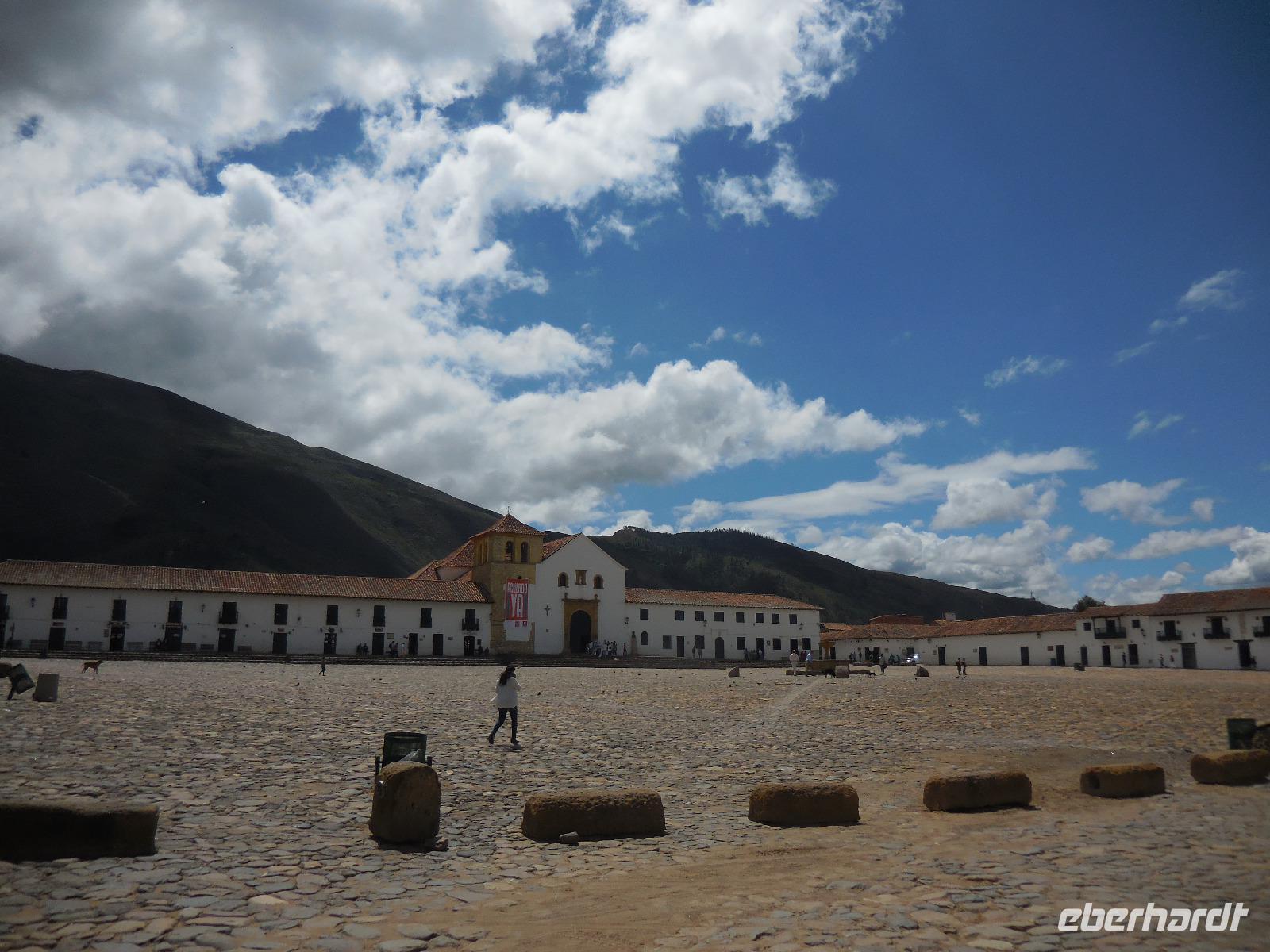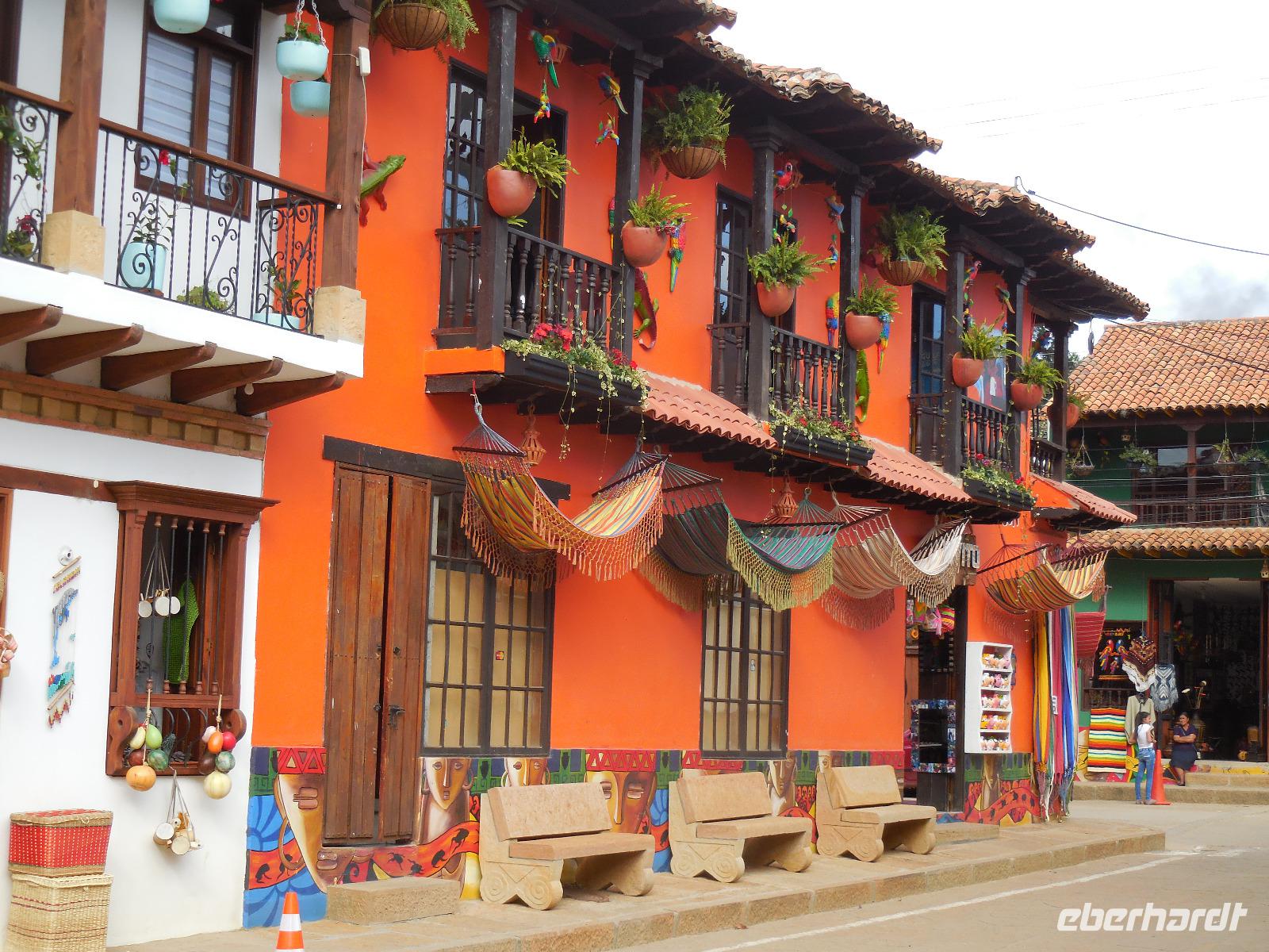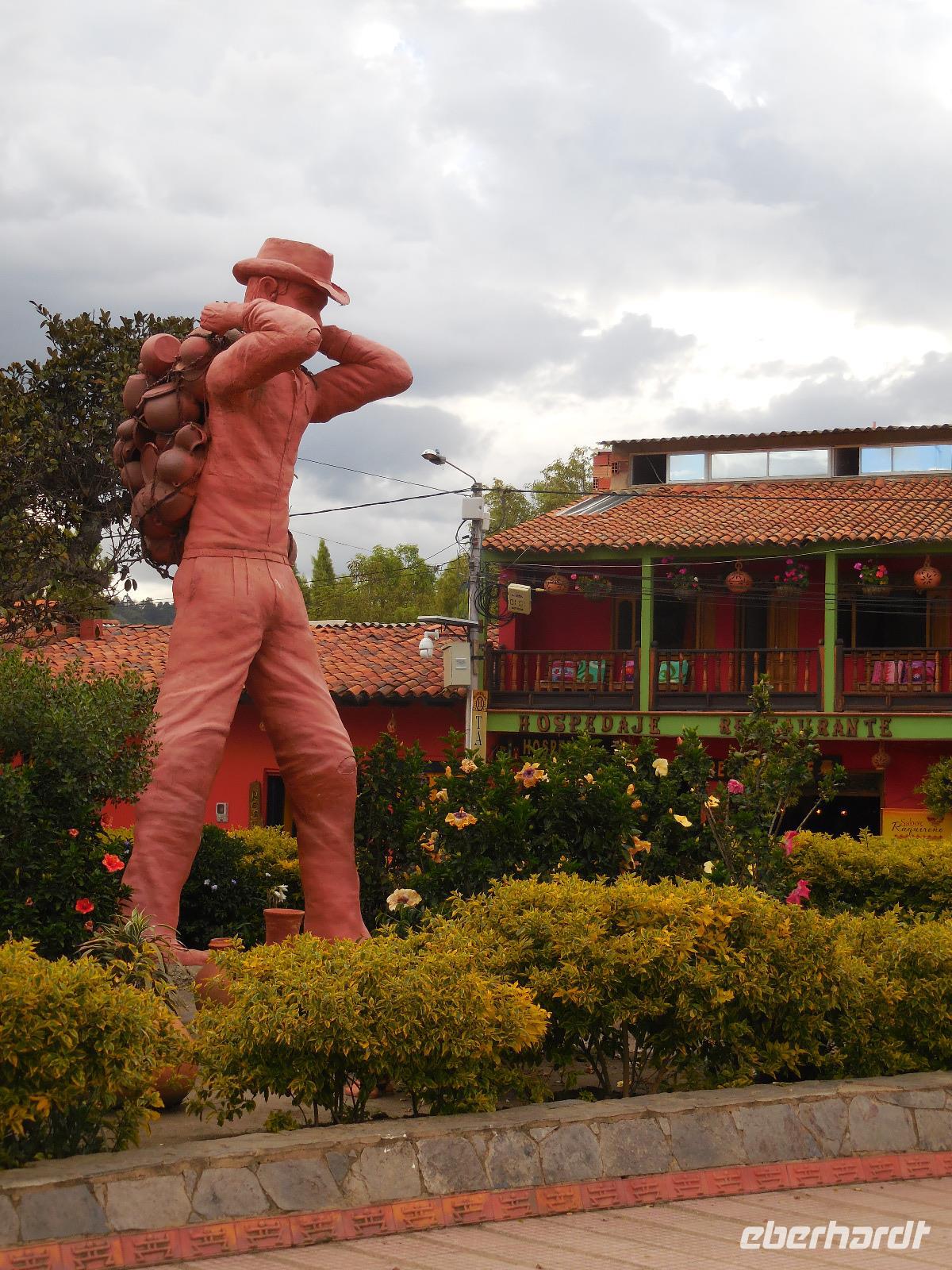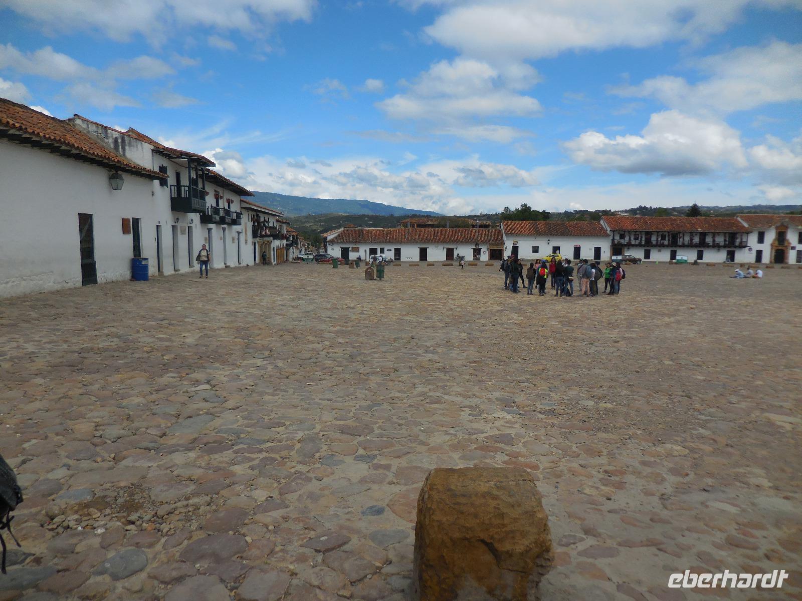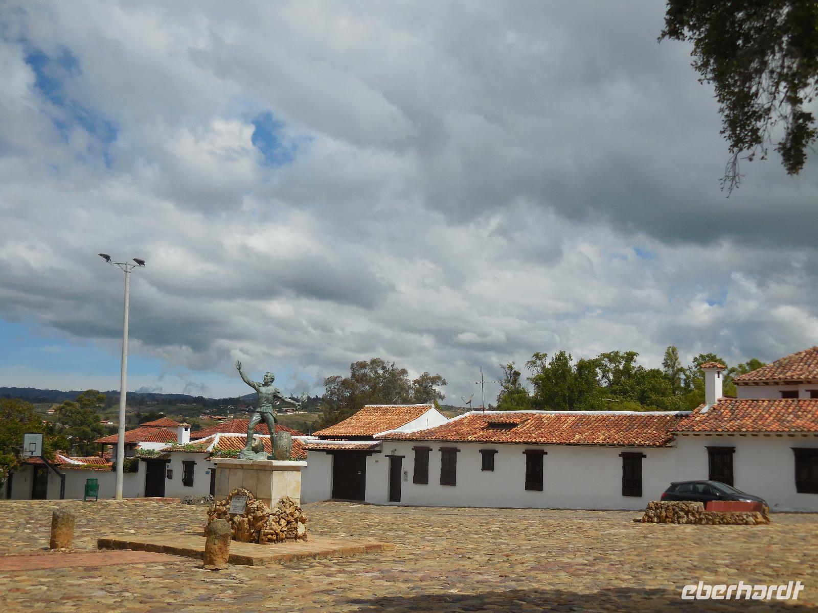 Nach einem ausgiebigen Frühstück im Hotel starteten wir um 9 Uhr zu Fuß vom Hotel zum Stadtrundgang der kleinen 12.000 Einwohner-Metropole. Wir liefen zum riesengroßen Hauptplatz (Plaza Mayor), der zu den größten Plätzen der Welt zählt und ca. 14.000 m² misst. Klaus Kinski hat auf diesem Platz im Jahr 1987 den Film Cobra Verde gedreht und zu früheren Zeiten wurde dieser auch für Hinrichtungen von Freiheitskämpfern benutzt. Der Kirche oberhalb des Platzes statteten wir ebenfalls einen Besuch ab und schlenderten gemütlich durch die vielen kleinen Gassen der Stadt. Gegen 11 Uhr waren wir zurück am Hotel und stiegen hier kurze Zeit später in den Bus ein, der uns zunächst zu einem Haus fuhr, welches ganz aus Terrakotta gebaut wurde. Einzigartig schön! Auf der Weiterfahrt kamen wir am Infernito vorbei, dem Muisca-Observatorium. Hier machten wir nur ein kurzes Foto-Päuschen und fuhren weiter zum Kloster Ecce Homo. Mit Luis gingen wir in die zahlreichen Räume und er erklärte uns alles dazu. Da die ersten schon wieder hungrig wurden, gab es für diejenigen ein süßes Stück Kuchen. Im Anschluss brachte uns der Bus zum Weingut in der Nähe. Hier probierten wir von Rot- und Weißwein auf Kosten von Eberhardt. Wer mochte bestellte sich dazu etwas Käse, Kräcker und Wurst. Die letzte Etappe für heute war das Töpferdorf Raquira. Jedes Geschäft hier verkauft Ton in jeglichen Farben, Größen und Formen.