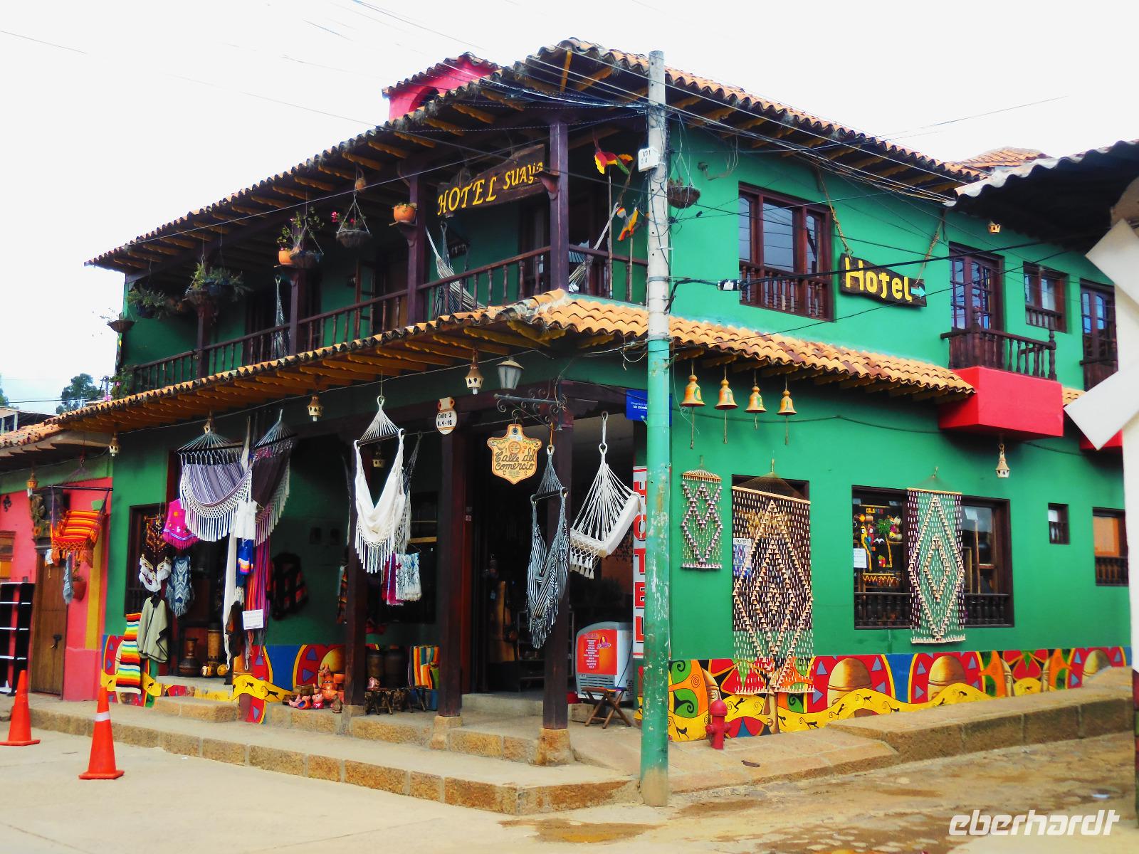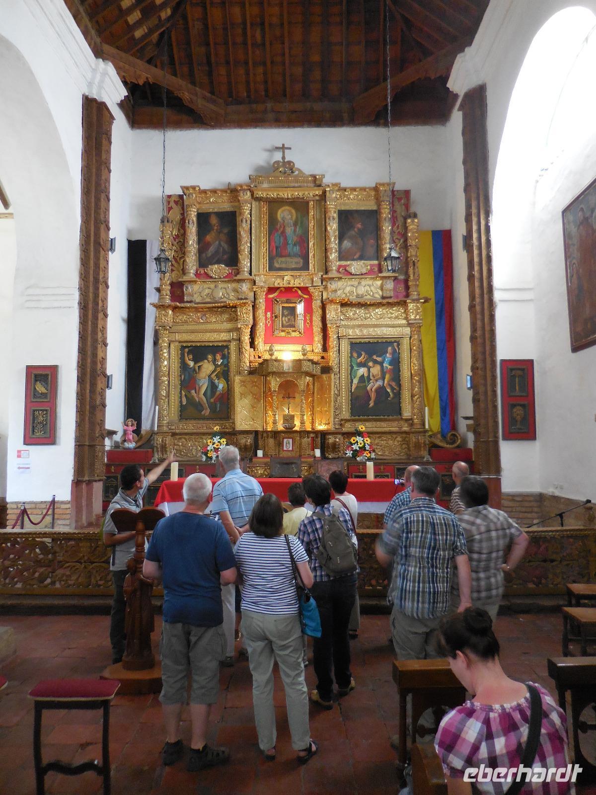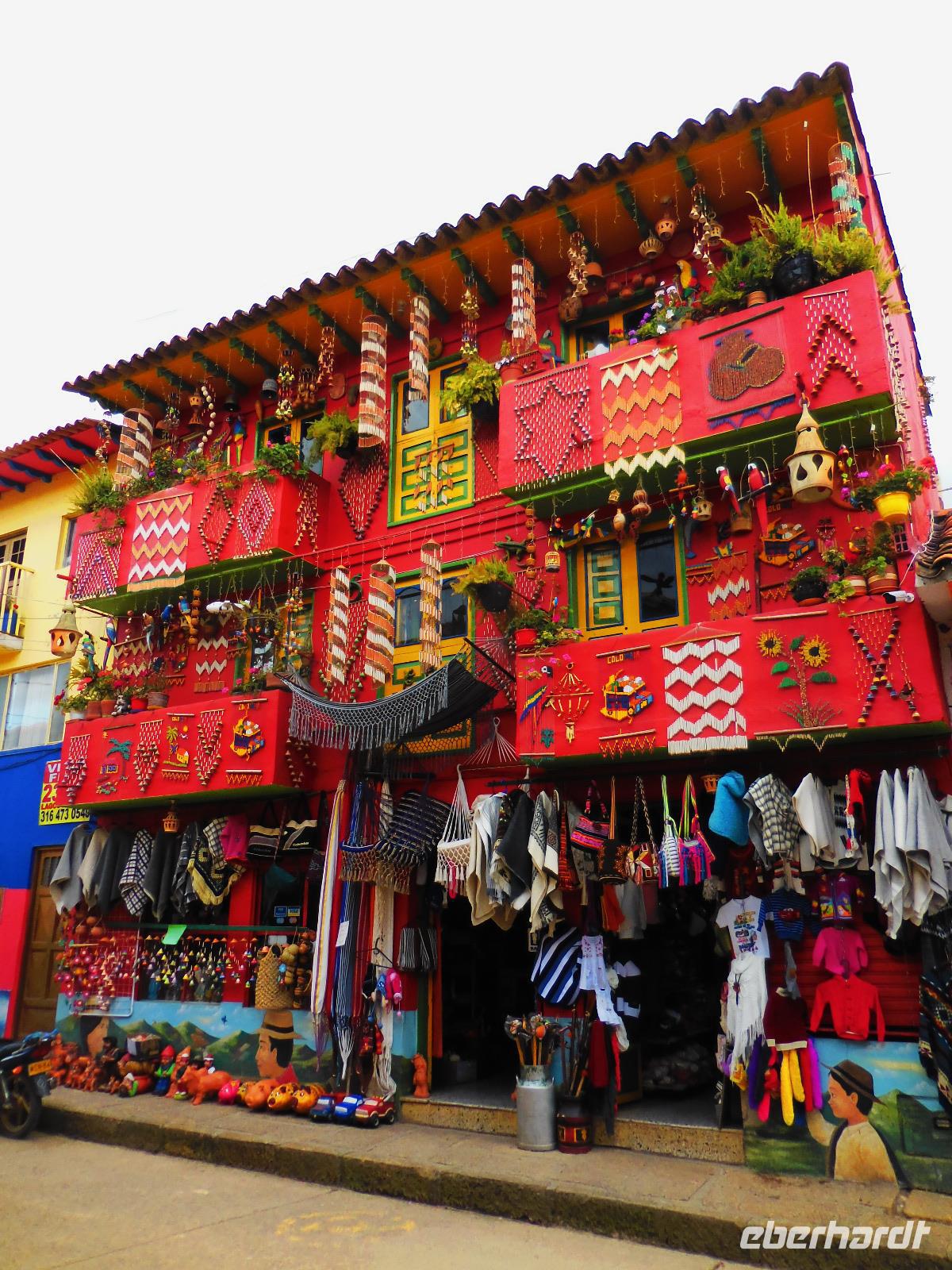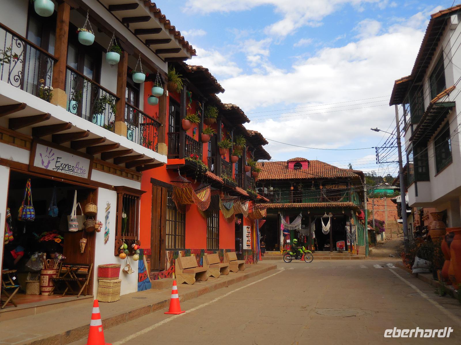 Nach einem ausgiebigen Frühstück im Hotel starteten wir um 9 Uhr zu Fuß vom Hotel zum Stadtrundgang der kleinen 12.000 Einwohner-Metropole. Wir liefen zum riesengroßen Hauptplatz (Plaza Mayor), der zu den größten Plätzen der Welt zählt und ca. 14.000 m² misst. Klaus Kinski hat auf diesem Platz im Jahr 1987 den Film Cobra Verde gedreht und zu früheren Zeiten wurde dieser auch für Hinrichtungen von Freiheitskämpfern benutzt. Der Kirche oberhalb des Platzes statteten wir ebenfalls einen Besuch ab und schlenderten gemütlich durch die vielen kleinen Gassen der Stadt. Gegen 11 Uhr waren wir zurück am Hotel und stiegen hier kurze Zeit später in den Bus ein, der uns zunächst zu einem Haus fuhr, welches ganz aus Terrakotta gebaut wurde. Einzigartig schön! Auf der Weiterfahrt kamen wir am Infernito vorbei, dem Muisca-Observatorium. Hier machten wir nur ein kurzes Foto-Päuschen und fuhren weiter zum Kloster Ecce Homo. Mit Luis gingen wir in die zahlreichen Räume und er erklärte uns alles dazu. Da die ersten schon wieder hungrig wurden, gab es für diejenigen ein süßes Stück Kuchen. Im Anschluss brachte uns der Bus zum Weingut in der Nähe. Hier probierten wir von Rot- und Weißwein auf Kosten von Eberhardt. Wer mochte bestellte sich dazu etwas Käse, Kräcker und Wurst. Die letzte Etappe für heute war das Töpferdorf Raquira. Jedes Geschäft hier verkauft Ton in jeglichen Farben, Größen und Formen.