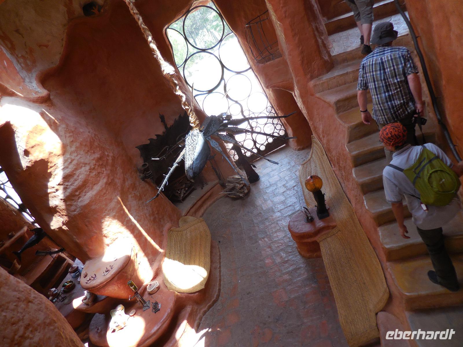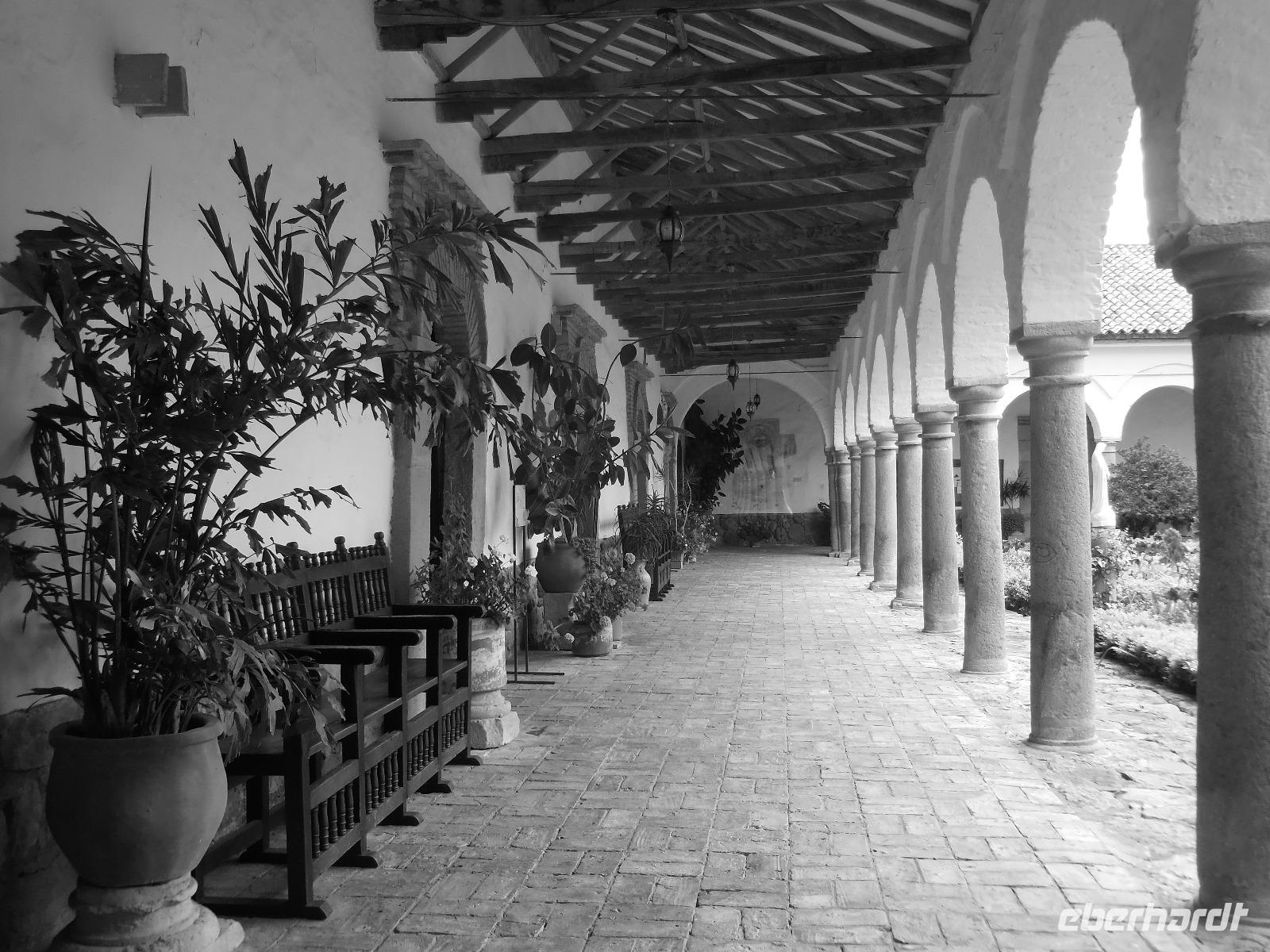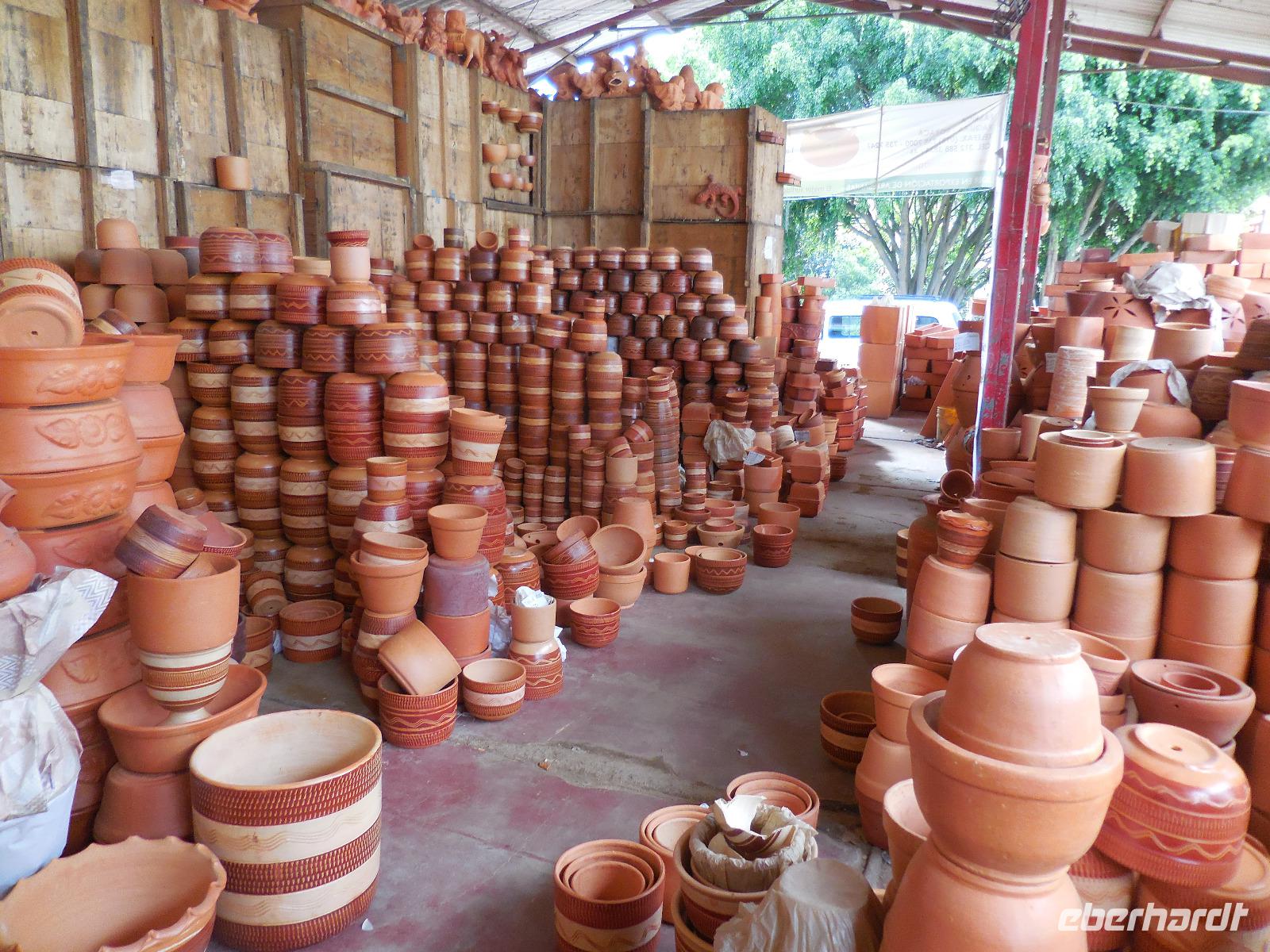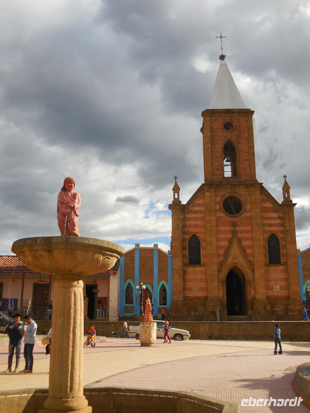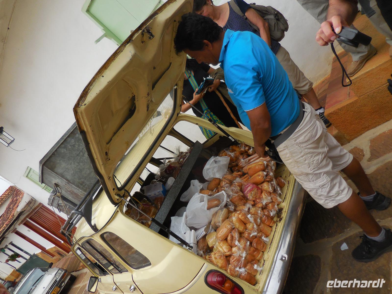 Nach einem ausgiebigen Frühstück im Hotel starteten wir um 9 Uhr zu Fuß vom Hotel zum Stadtrundgang der kleinen 12.000 Einwohner-Metropole. Wir liefen zum riesengroßen Hauptplatz (Plaza Mayor), der zu den größten Plätzen der Welt zählt und ca. 14.000 m² misst. Klaus Kinski hat auf diesem Platz im Jahr 1987 den Film Cobra Verde gedreht und zu früheren Zeiten wurde dieser auch für Hinrichtungen von Freiheitskämpfern benutzt. Der Kirche oberhalb des Platzes statteten wir ebenfalls einen Besuch ab und schlenderten gemütlich durch die vielen kleinen Gassen der Stadt. Gegen 11 Uhr waren wir zurück am Hotel und stiegen hier kurze Zeit später in den Bus ein, der uns zunächst zu einem Haus fuhr, welches ganz aus Terrakotta gebaut wurde. Einzigartig schön! Auf der Weiterfahrt kamen wir am Infernito vorbei, dem Muisca-Observatorium. Hier machten wir nur ein kurzes Foto-Päuschen und fuhren weiter zum Kloster Ecce Homo. Mit Luis gingen wir in die zahlreichen Räume und er erklärte uns alles dazu. Da die ersten schon wieder hungrig wurden, gab es für diejenigen ein süßes Stück Kuchen. Im Anschluss brachte uns der Bus zum Weingut in der Nähe. Hier probierten wir von Rot- und Weißwein auf Kosten von Eberhardt. Wer mochte bestellte sich dazu etwas Käse, Kräcker und Wurst. Die letzte Etappe für heute war das Töpferdorf Raquira. Jedes Geschäft hier verkauft Ton in jeglichen Farben, Größen und Formen.