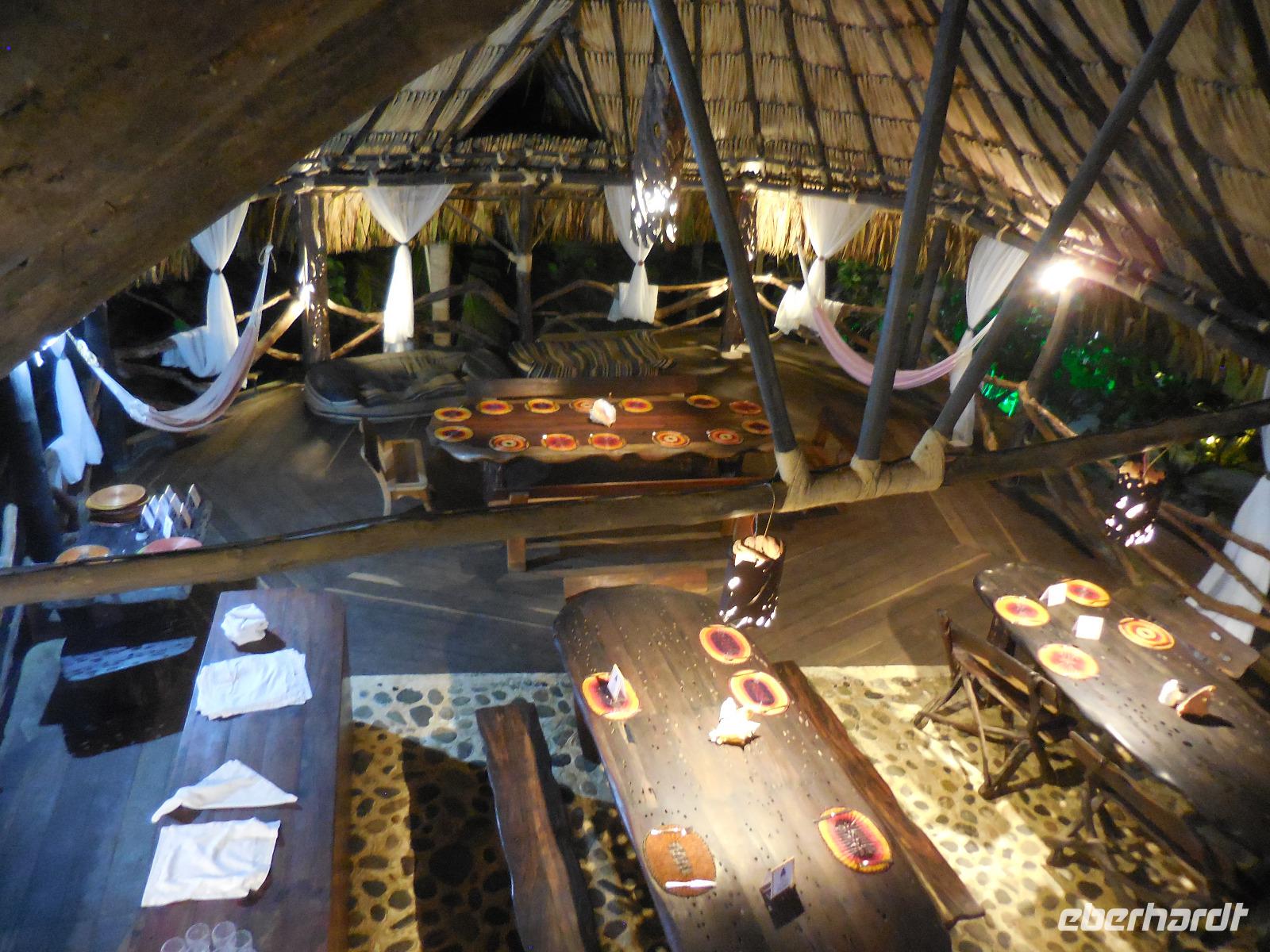 Um 8 Uhr morgens hieß es: Weiterfahrt mit Fahrer Williams in den Nationalpark Tayrona. Der Eingang des Parkes lag ca. eine Fahrtstunde von Santa Marta entfernt und hier empfing uns Jorge, ein lokaler Guide des Nationalparkes. Dieser führte uns auf dem einfachsten Weg zu unserem Mittagsrestaurant. In der Hitze und der hohen Luftfeuchtigkeit machte uns schon der einfachste Weg eine große Hürde. Nur etwa drei Kilometer Fußweg lag vor uns - aber bergauf und bergab - mal im Schatten und mal in der Sonne. Es war wirklich schwer bei diesem Wetter. Bei Ankunft am Restaurant wollte auch fast keiner mehr zum nächsten Strand laufen, wo man sich hätte ein wenig abkühlen können. Deshalb machten sich nur zwei mit Jorge auf den Weg und die beiden haben es kein bischen bereut, denn das Wasser und der Strand waren super! Wieder zurück am Restaurant wurde bereits das Mittagessen serviert und es gab leckeren Fisch und Meeresfrüchte. Dazu köstliche Säfte, die nach mehr schmeckten. Leider war dann die Mango aus. Nach dem Essen wollte keiner so richtig los, denn wir mussten den gleichen Weg wieder zurück. Aber wir meisterten den Rückweg unter zwei Stunden. Alle waren total erschöpft aber glücklich dies geschafft zu haben. Kurz vor 16 Uhr waren wir zurück am Parkplatz und eine gute Stunde später auch schon nahe Palomino, wo wir für die nächsten zwei Nächte unser Quartier direkt am Meer bezogen. Leider war es schon dunkel, so dass wir die Erkundung des Geländes auf den Folgetag verschieben mussten. Dafür nahmen wir im außen liegenden Restaurant der Unterkunft unsere Plätze ein und aßen bei gefühlten 30 grad den leckeren Fisch.