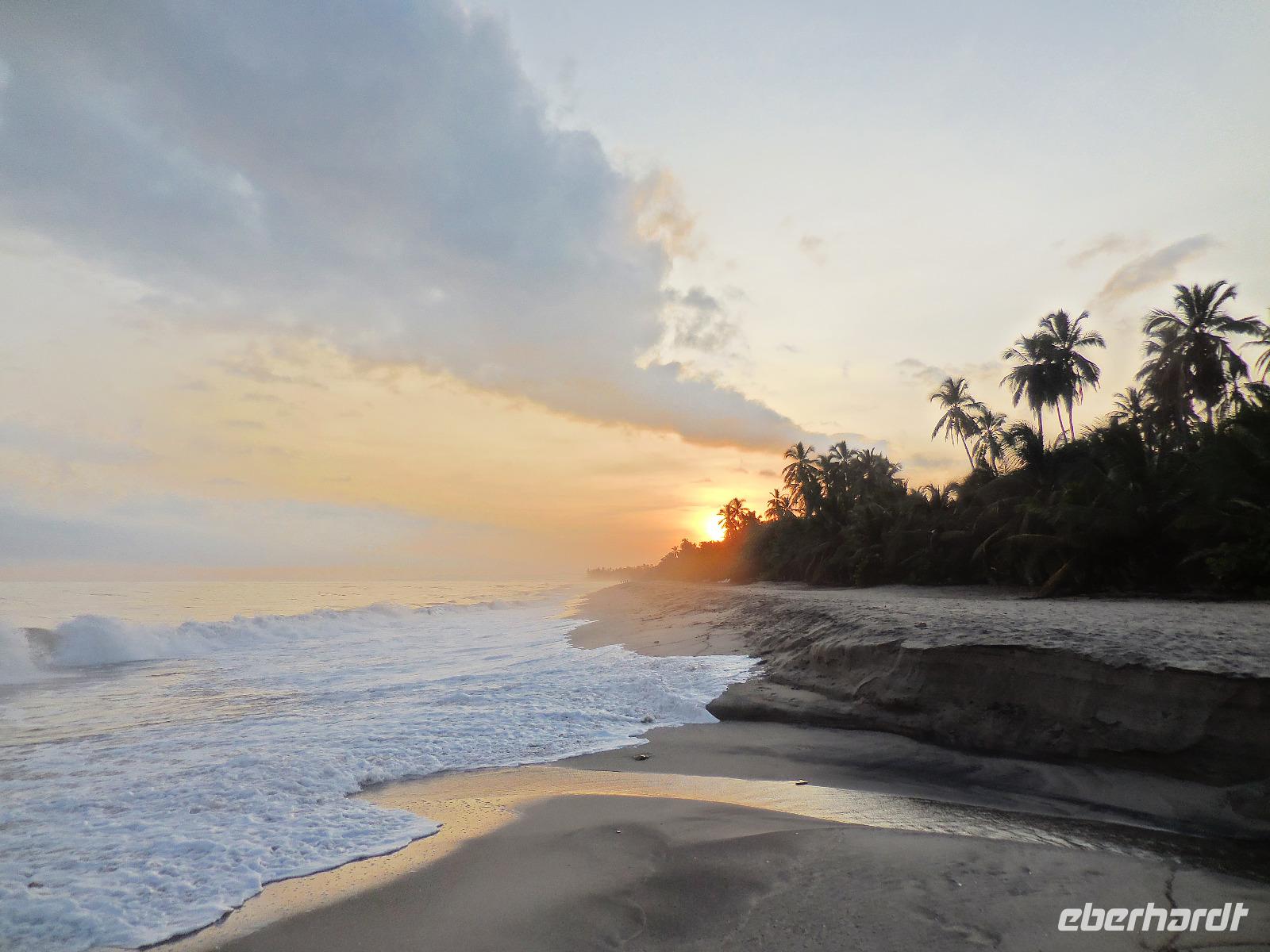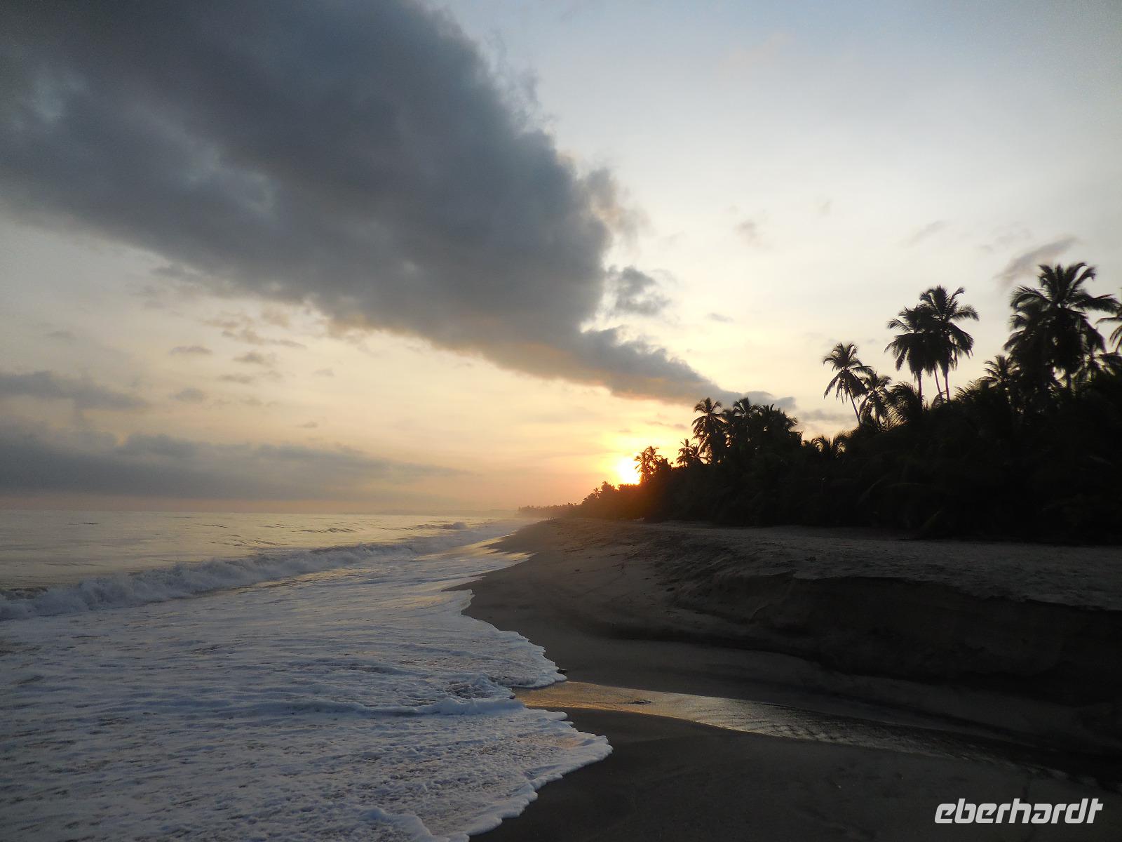 Die ersten Neugierigen unserer Gruppe trafen sich um 6 Uhr Morgens zum Sonnenaufgang am Strand - in der Hoffnung dass man die hohen Berge im Hintergrund sah. Leider war dies aufgrund der Wolken nicht möglich, aber wir stellten uns vor - wir waren am höchsten Küstengebirge der Welt!!! In weniger als 40 Kilometer Entfernung zum Strand liegen die höchsten Berge des Landes mit mehr als 5.000 Metern Höhe.