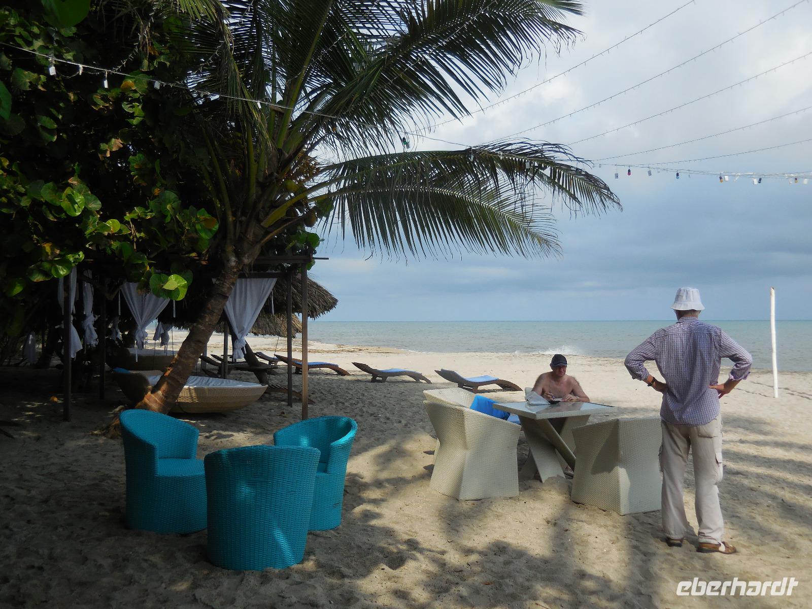 Einige nutzen den Abend noch zum kleinen Spaziergang zum Meer und in die nächste Kneipe mit Colombia Bier und Eis.