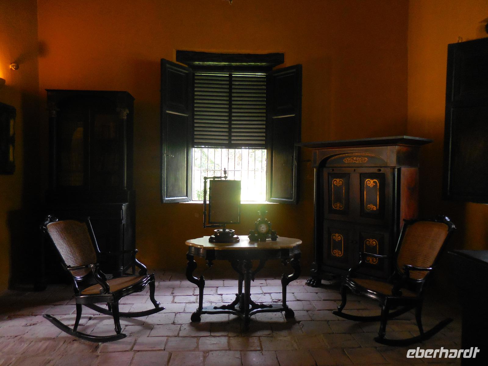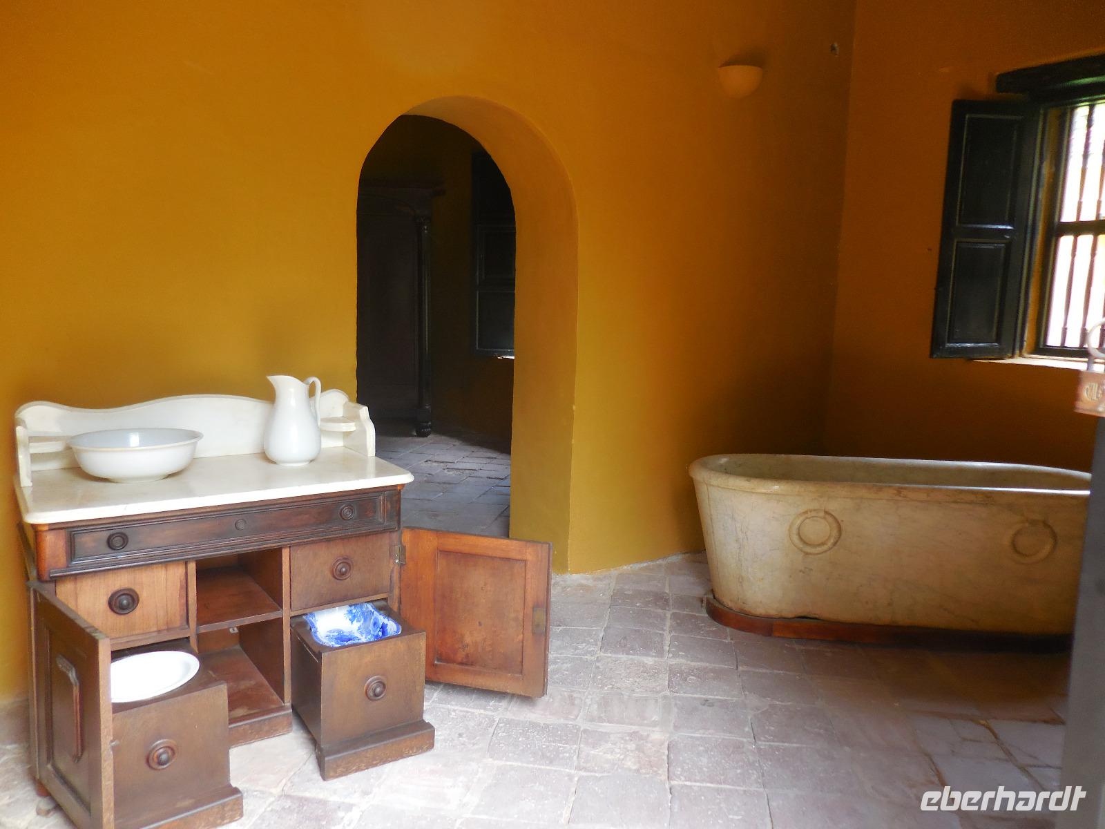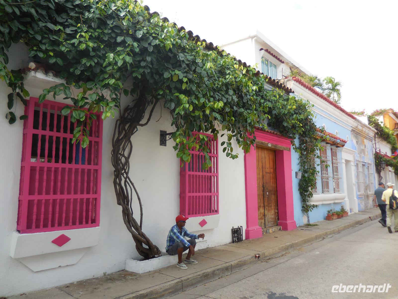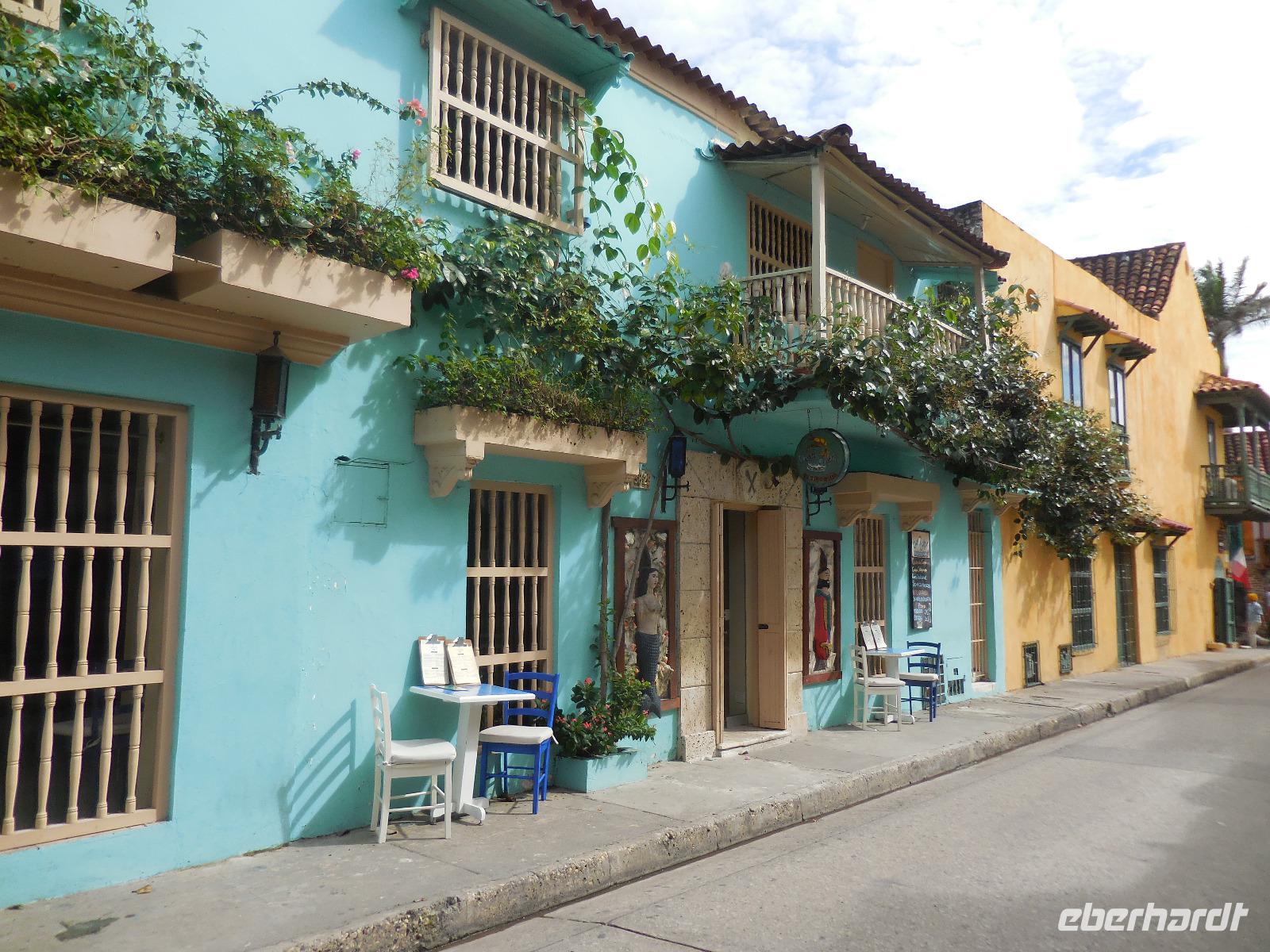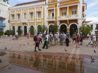 Der Morgen begann mit einem Geburtstagsständchen für eine unserer Mitreisenden vor dem Frühstück. Anschließend brachte man unsere Koffer hinauf zur Straße. Von Palomino aus fuhren wir mit Fahrer Saul zurück in westliche Richtung nach Santa Marta, wo wir zwei Tage zuvor mit dem Flieger angekommen sind. Hier besichtigten wir zunächst die Finca, in der Simon Bolivar 1830 elf Tage lang gelebt und dann verstorben ist. Der lokale Guide Daniela führte uns durch das Areal und erklärte uns alles. Sie ist Schülerin in Santa Marta und bessert mit den Führungen für Touristen ihr Taschengeld auf. Raffaela übersetzte für uns. In der Stadt Santa Marta schauten wir anschließend an der Kathedrale vorbei, die mit der Grundsteinlegung die älteste des Landes ist und die Überreste des Stadtgründers beherbergen. In der Altstadt schauten wir uns das Zollamt, das Denkmal des Stadtgründers Rodrigo de Bastidas und die Uferpromenade an. Im Vorort von Santa Marta, Rodadero, aßen wir in einem Strandrestaurant zu Mittag und hatten dann noch knapp 200 km Fahrtweg vor uns bis Cartagena. Dazwischen liegt Barranquilla, die viertgrößte Stadt von Kolumbien mit 1,5 Mio. Einwohnern. Hier mündet der Rio Magdalena ins Meer und hier wird der zweitgrößte Karneval der Welt gefeiert. Kurz vor 19 Uhr erreichten wir unser schönes Hotel direkt in der Altstadt von Cartagena. Das heutige Abendessen nahmen wir in einem gemütlichen Restaurant nicht weit entfernt ein. Zum Tagesabschluss lud uns das Geburtstagskind auf eine Runde Wein und Chips im gemütlichen Hotel am späten Abend ein und so konnten alle gut schlafen :-)