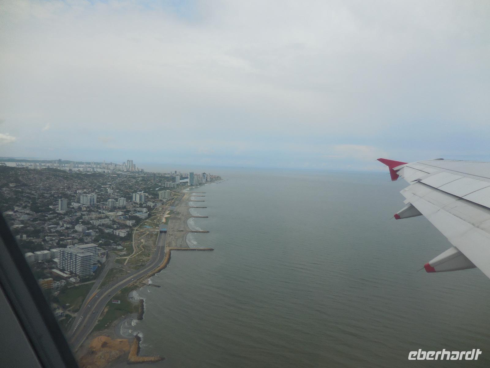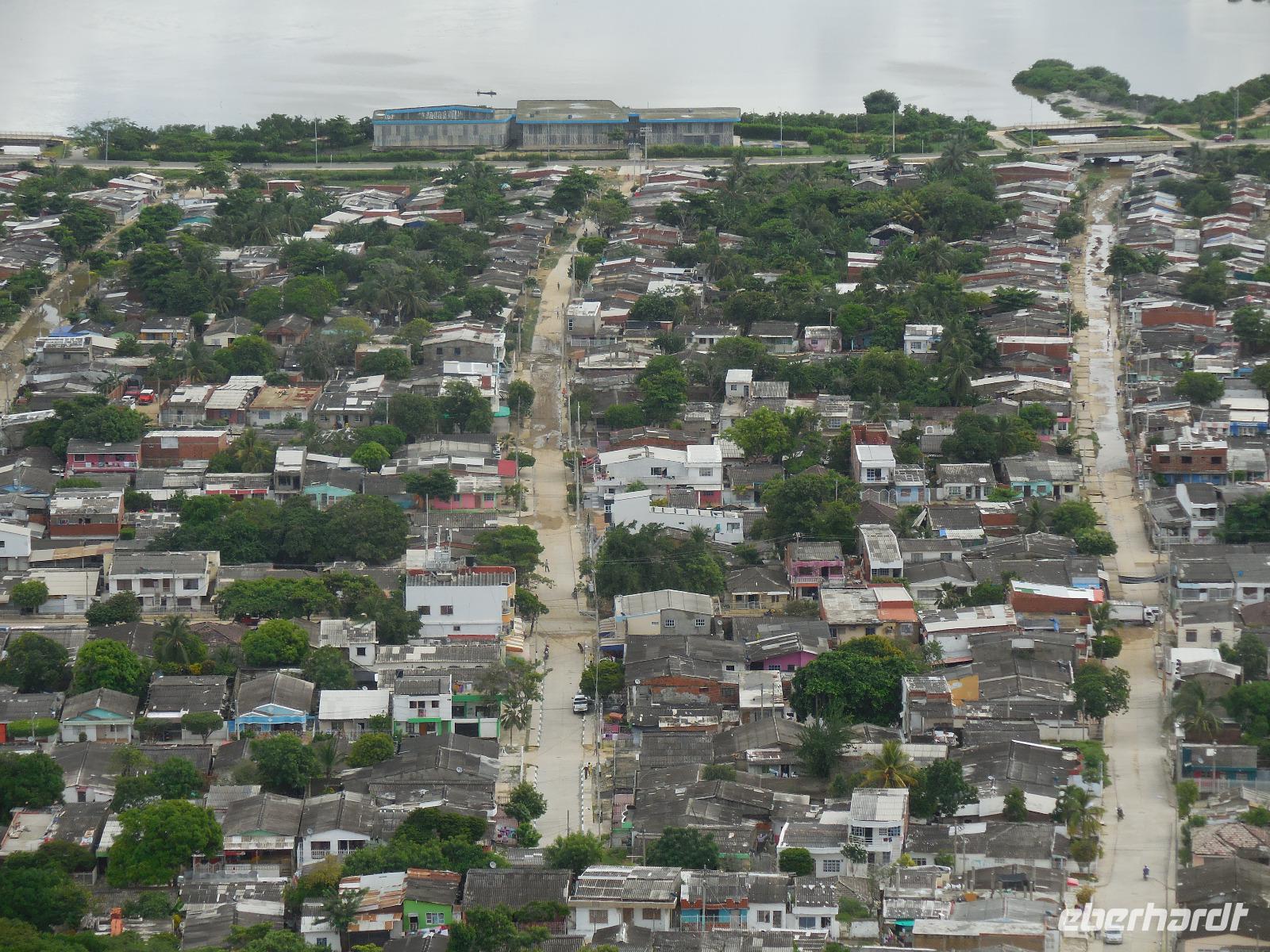 Wieder im Bus mussten wir noch weitere 70 Kilometer bis zum Flughafen von Bucamaranga schaffen. Unser Flug ging pünktlich kurz vor 15 Uhr zurück nach Bogota. In Bogota stiegen wir um, nahmen am Flughafen unser Abendessen ein, da dies nach Ankunft in Santa Marta zu spät geworden wäre und flogen nach Santa Marta. Hier landeten wir kurz nach 20 Uhr und der Regen war vorbei. Wir wurden freundlich von Raffaela empfangen und fuhren zum Hotel in der Altstadt von Santa Marta. Einige Straßen standen noch unter Wasser, so dass wir froh waren, erst heute hier angekommen zu sein.