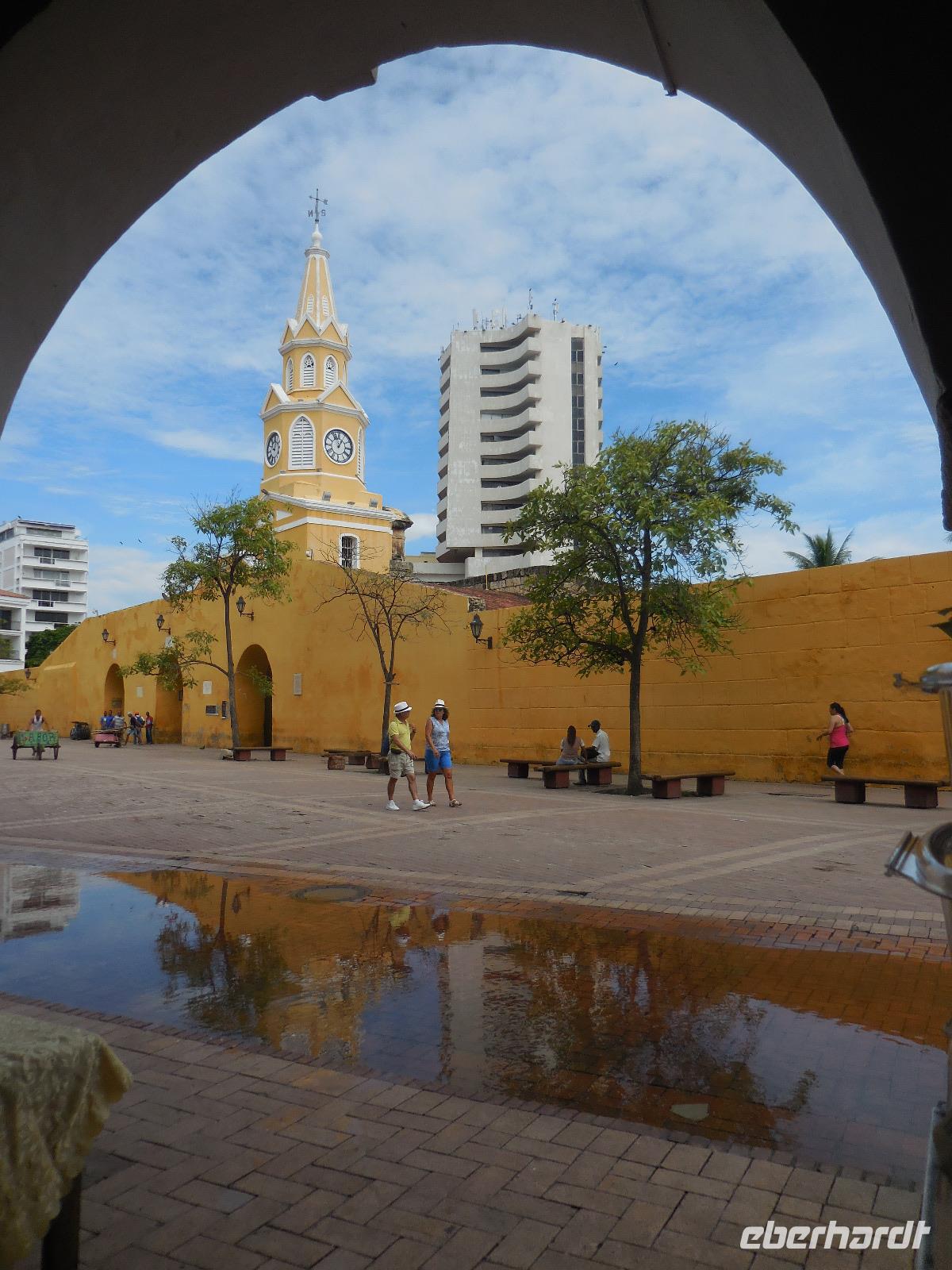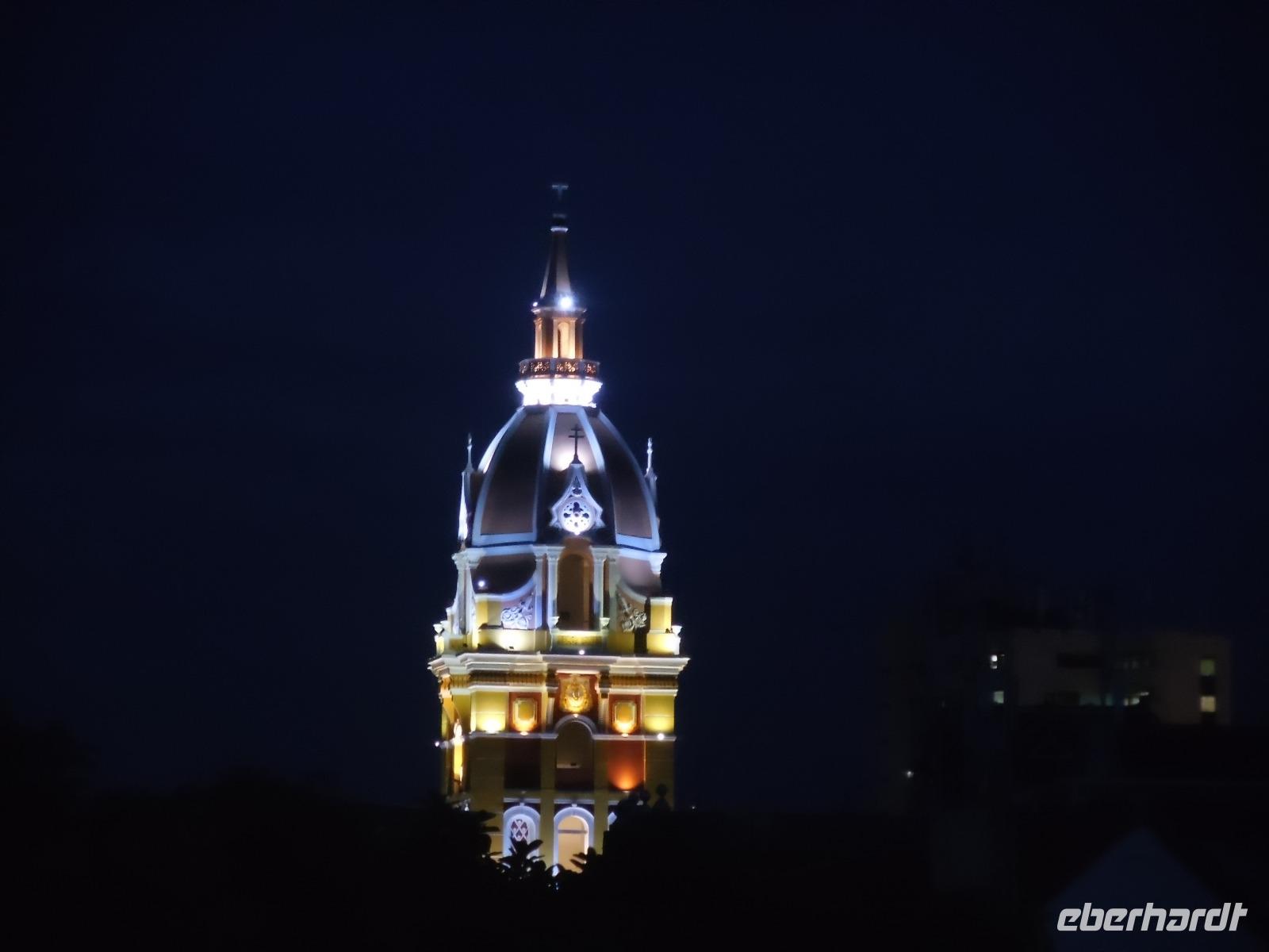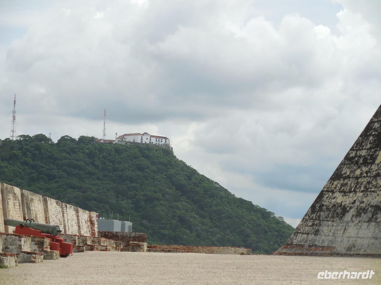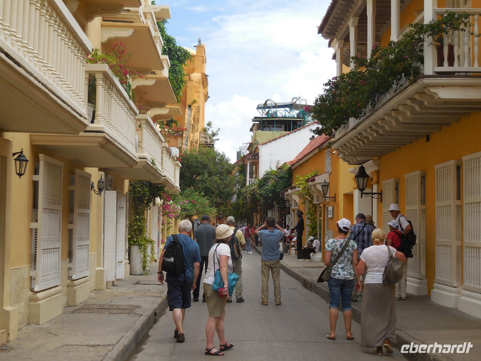 Wir begannen um 9 Uhr mit der Stadtbesichtigung von Cartagena und Saul, der Fahrer von gestern, holte uns wieder ab. Er brachte uns als erstes raus aus der Stadt und vorbei am Marinekrankenhaus, dem Hafen, dem Uhrenturm, dem Teatro Colon und dem Stadtviertel Getsemani bis auf einen Hügel von ca. 150 Meter Höhe zum Kloster La Popa, was soviel wie der Schiffsbug bedeutet. Eine knappe Stunde dauerte die Besichtigung des Augustinerklosters, wo wir leider nicht mehr die einzigen Touristen, wie die Tage zuvor, waren. Dann fuhren wir wieder hinab bis zur Festungsanlage, welche die größte ist, die die Spanier je errichtet haben. Sie ist im bastionischen Terrassenstil errichtet und hat drei Ebenen. Auch hier dauerte die Besichtigung etwa eine Stunde und dann kamen wir in die Altstadt von Cartagena. Wir bummelten gemütlich durch die hübschen Gassen und aßen anschließend in der Altstadt zu Mittag. Der Nachmittag stand allen für eigene Erkundungen und Einkäufe zur Verfügung. Dies wurde natürlich auch rege und ausgiebig genutzt. Zum Abendessen waren wir fast alle wieder beisammen und aßen in einem schönen Restaurant zu Abend.