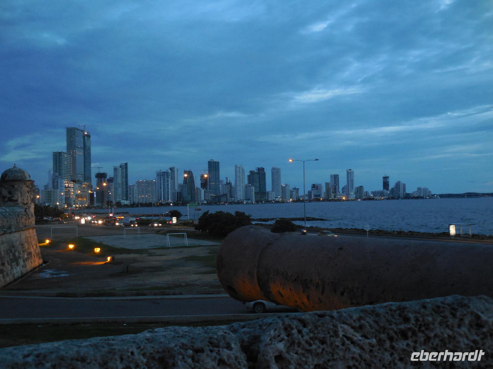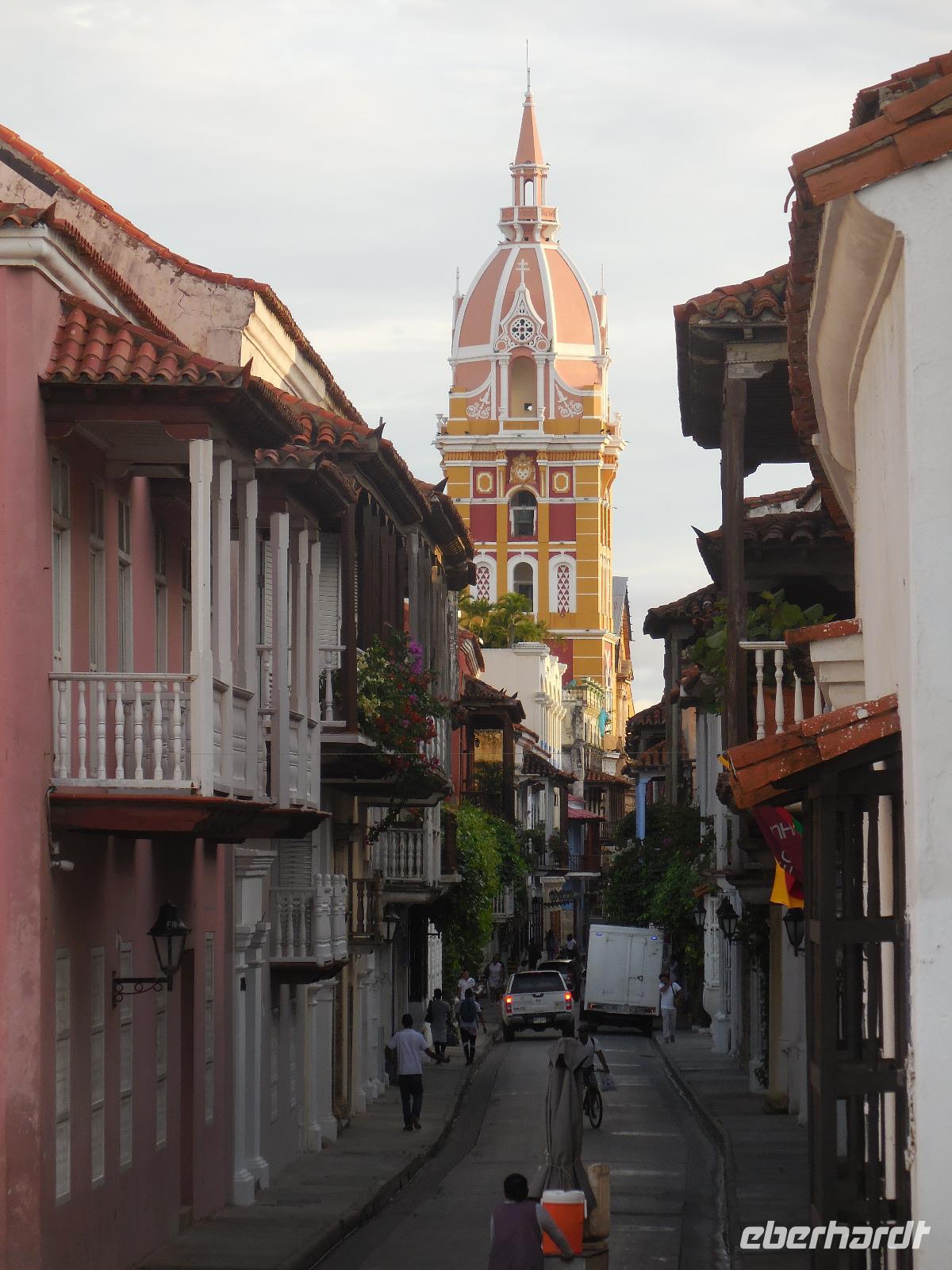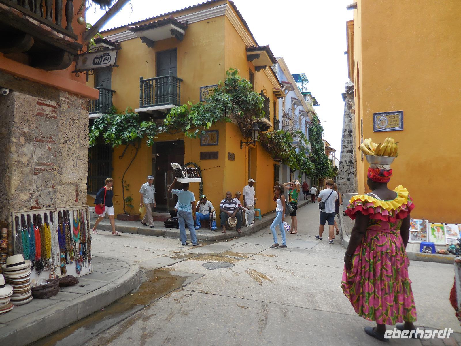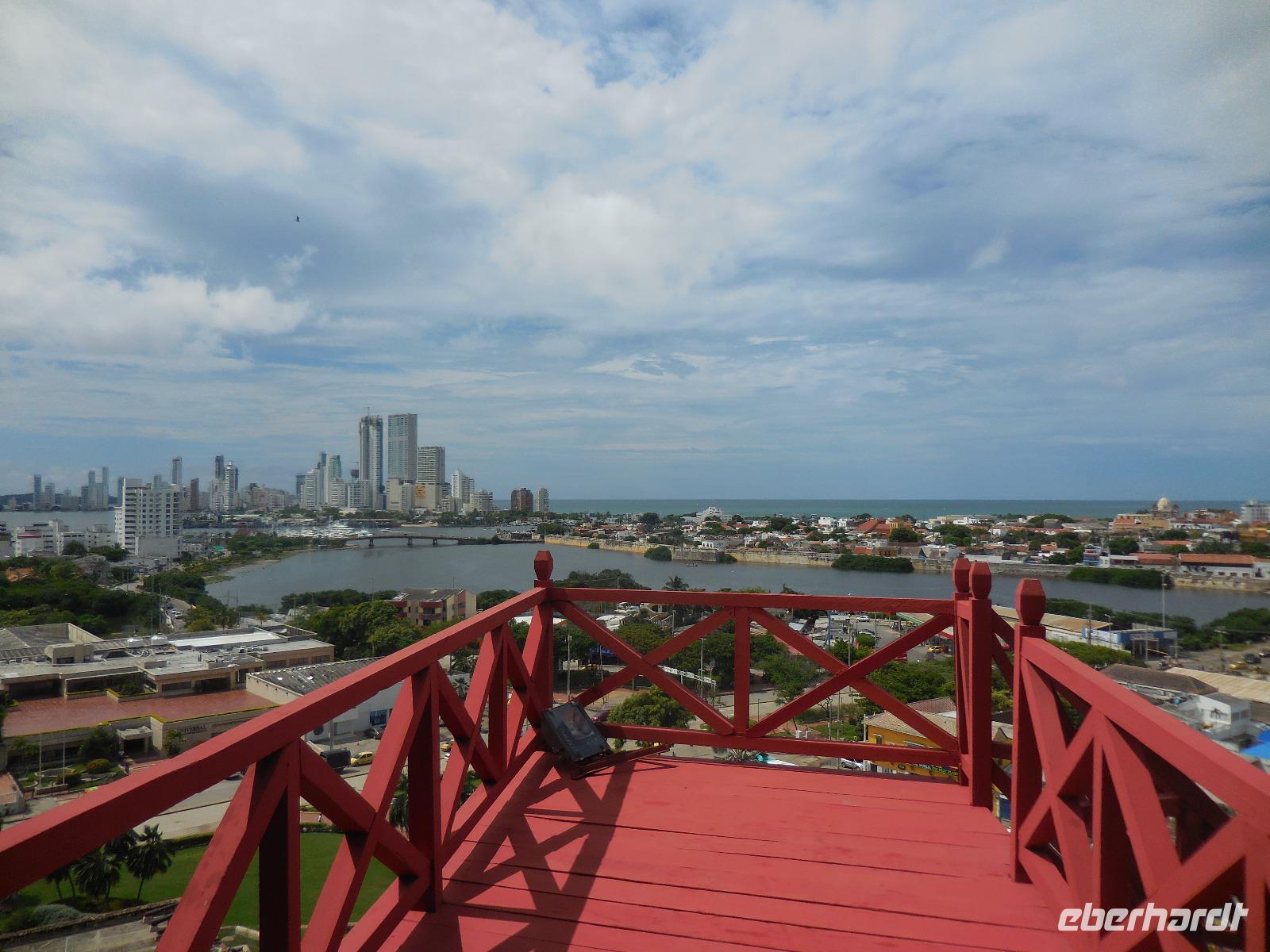 Wir begannen um 9 Uhr mit der Stadtbesichtigung von Cartagena und Saul, der Fahrer von gestern, holte uns wieder ab. Er brachte uns als erstes raus aus der Stadt und vorbei am Marinekrankenhaus, dem Hafen, dem Uhrenturm, dem Teatro Colon und dem Stadtviertel Getsemani bis auf einen Hügel von ca. 150 Meter Höhe zum Kloster La Popa, was soviel wie der Schiffsbug bedeutet. Eine knappe Stunde dauerte die Besichtigung des Augustinerklosters, wo wir leider nicht mehr die einzigen Touristen, wie die Tage zuvor, waren. Dann fuhren wir wieder hinab bis zur Festungsanlage, welche die größte ist, die die Spanier je errichtet haben. Sie ist im bastionischen Terrassenstil errichtet und hat drei Ebenen. Auch hier dauerte die Besichtigung etwa eine Stunde und dann kamen wir in die Altstadt von Cartagena. Wir bummelten gemütlich durch die hübschen Gassen und aßen anschließend in der Altstadt zu Mittag. Der Nachmittag stand allen für eigene Erkundungen und Einkäufe zur Verfügung. Dies wurde natürlich auch rege und ausgiebig genutzt. Zum Abendessen waren wir fast alle wieder beisammen und aßen in einem schönen Restaurant zu Abend.