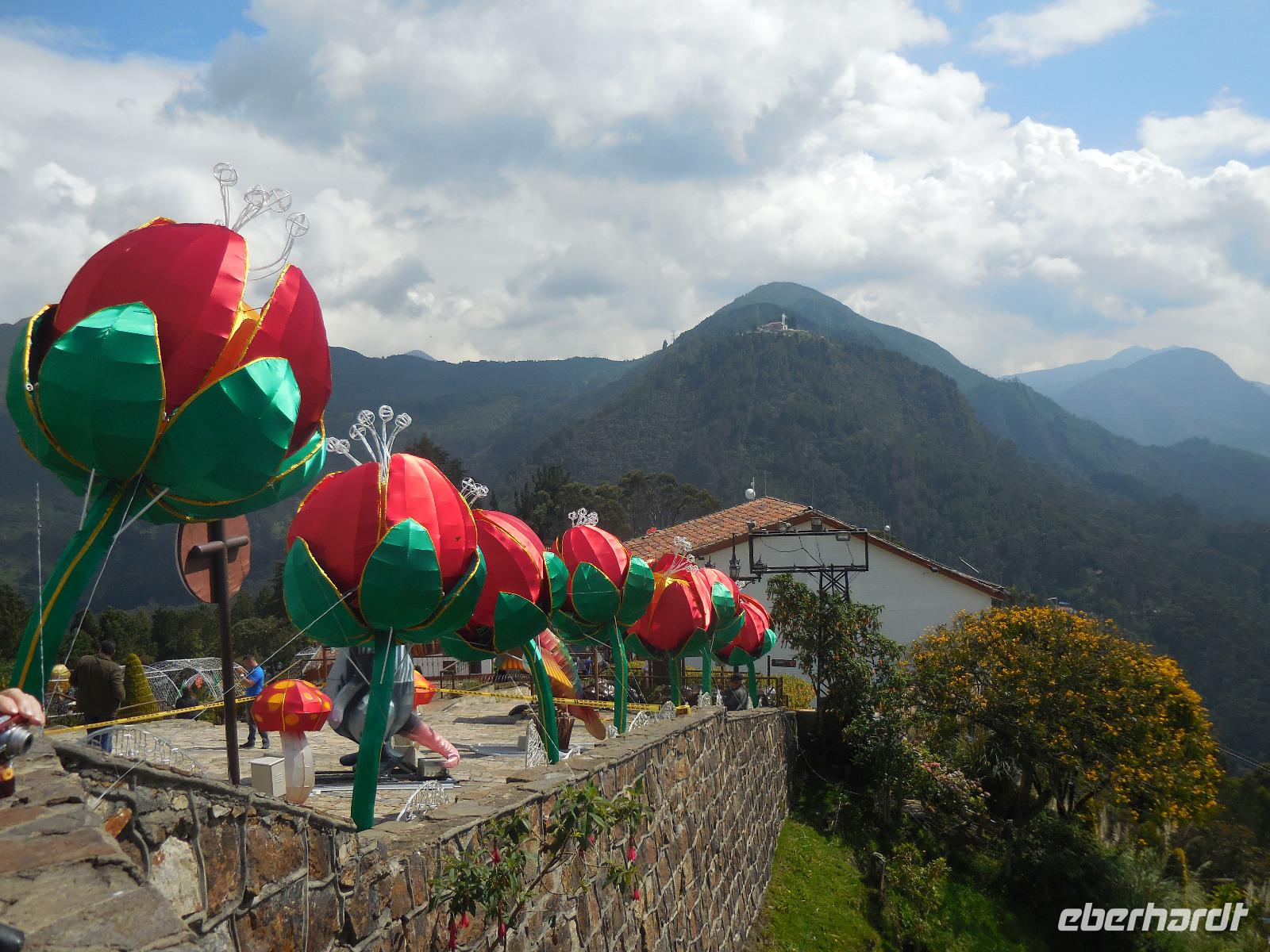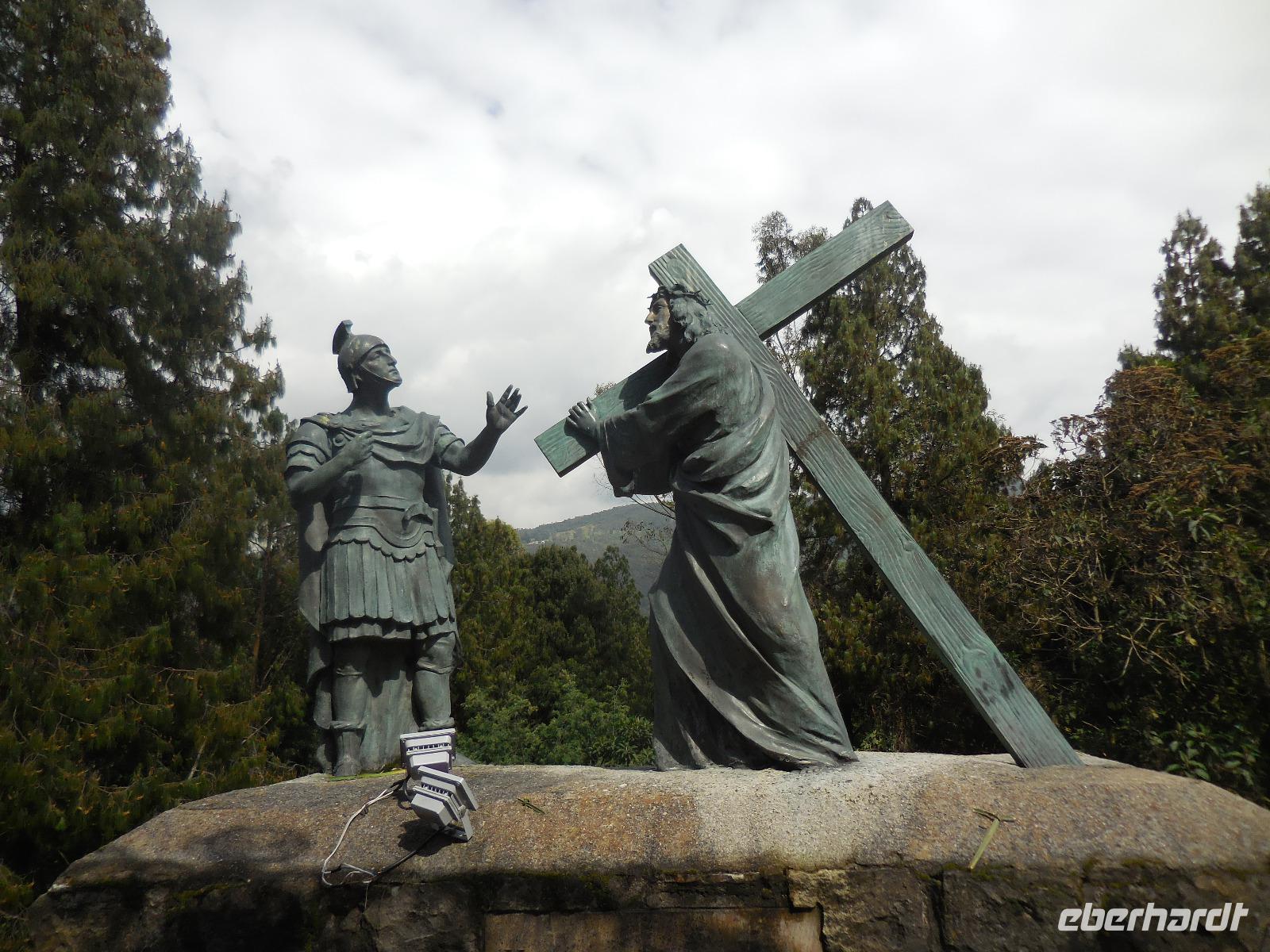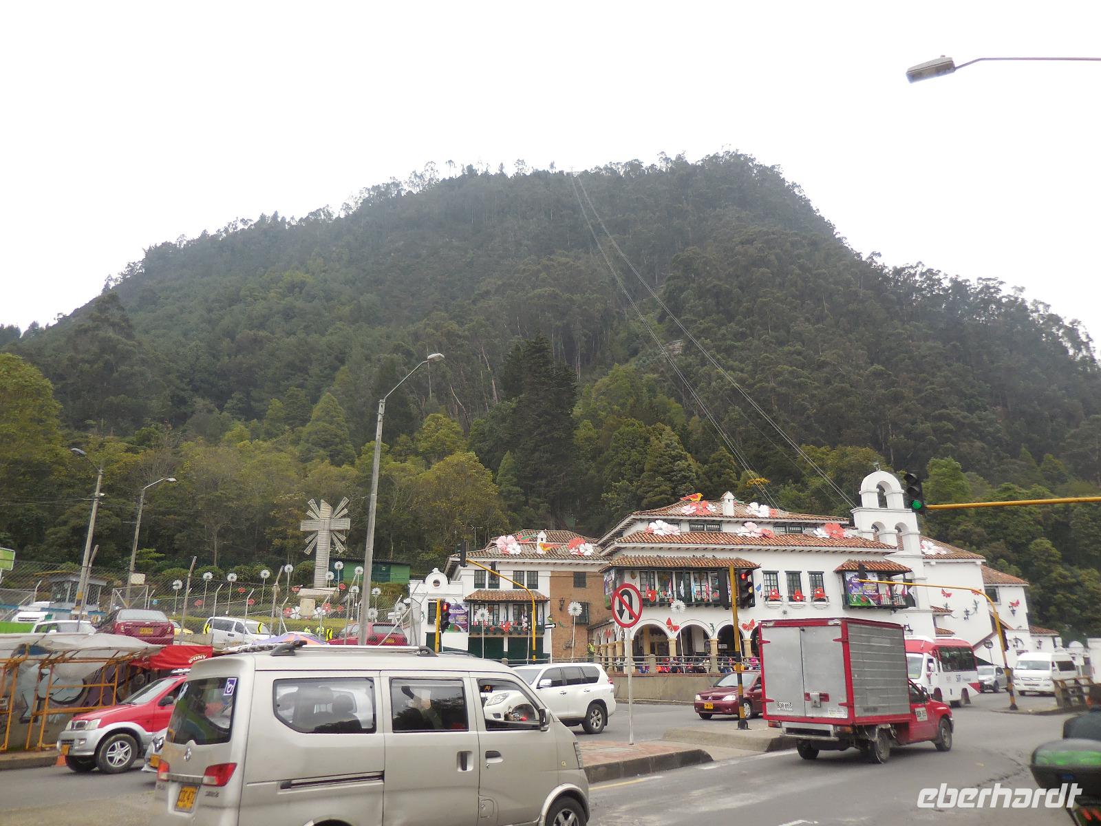 Mit Jenny fuhren wir etwa eine Stunde vom Flughafen bis Monserrate und stiegen hier in die Standseilbahn um, die uns hinauf auf den Hausberg brachte. Man sagt: nur wer auf diesem Berg war, hat Bogota auch gesehen. Das haben wir also geschafft!