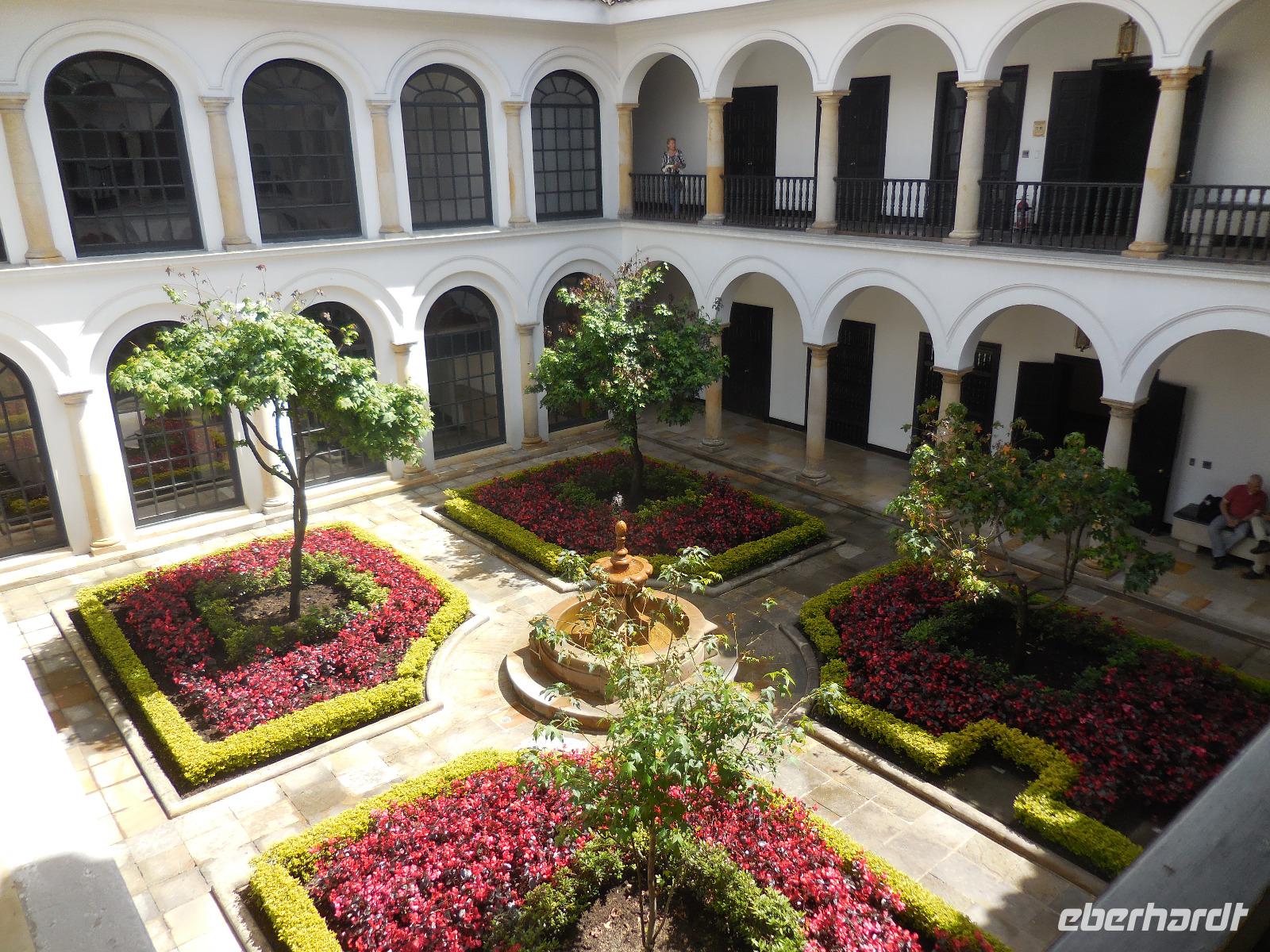 Oben angekommen wurde die Luft schon etwas dünner, aber allen ging es soweit gut und da das Wetter nicht zu warm und sonnig war, passte alles. Wir spazierten oben zur Kirche und an den ganzen Verkaufsständen vorbei. Einige probierten auch den Coca-Tee und aßen ein paar kleine Empanadas. Zwei Stunden später fuhren wir wieder hinab und erreichten am späten Nachmittag unsere Unterkunft Casa Deko in der Altstadt von Bogota. Wir ruhten uns ein wenig aus und Jenny holte uns 17:30 Uhr zur angekündigten Überraschung ab, auf die wir bis heute noch warten....