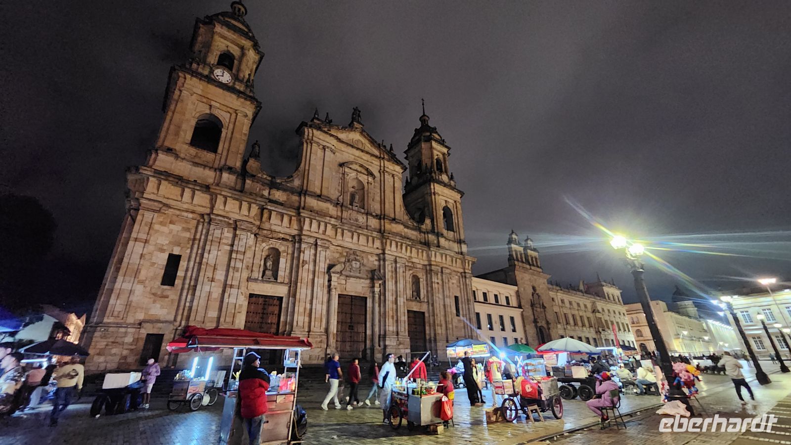 Wir finden ein kleines,gemütliches Restaurant, in dem wir zu Abend essen. Anschließend spazieren wir über die Plaza de Botero, machen ein Foto der beeindruckenden Kathedrale und setzen unseren Weg zurück zum Hotel fort. Die Straßen sind voller Musik, Straßenstände und gut gelaunter Menschen – ein erster, lebendiger Eindruck von Bogotá.