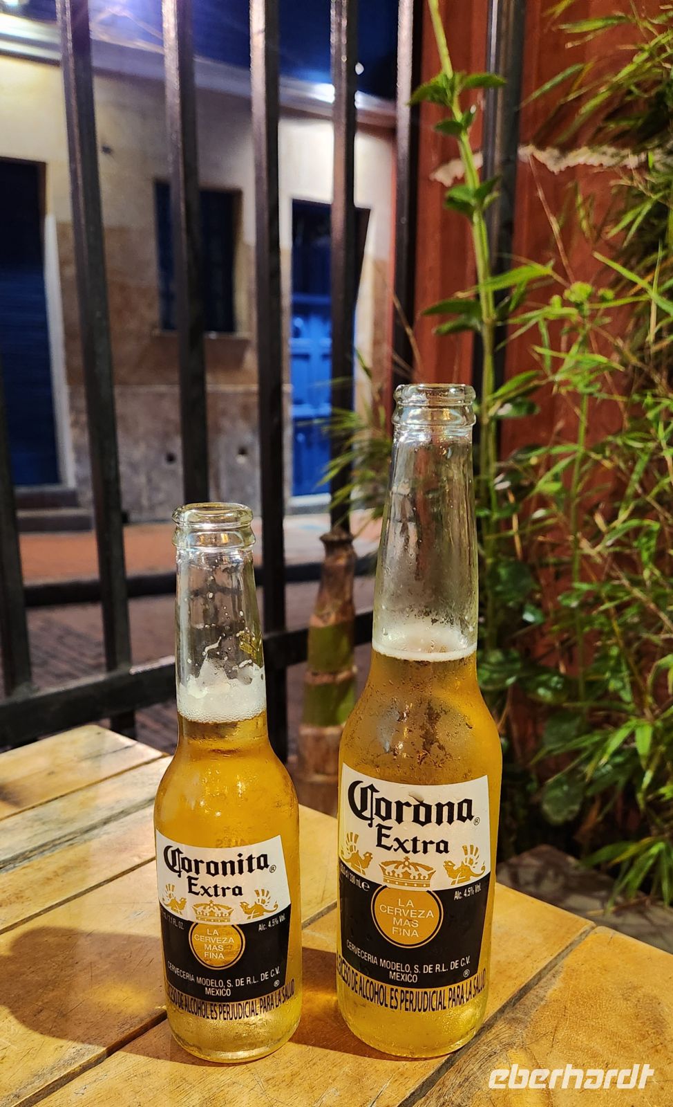 Kurz vor dem Hotel entdecken wir eine kleine Bar und beschließen, den Abend dort ausklingen zu lassen. Für allgemeine Heiterkeit sorgt der Kellner, der kurzerhand in einen nahegelegenen Supermarkt läuft, um unsere Getränke zu besorgen. Danach ist es für uns Zeit, schlafen zu gehen – der erste Tag in Kolumbien liegt hinter uns, und wir sind gespannt auf alles, was uns noch erwartet.
