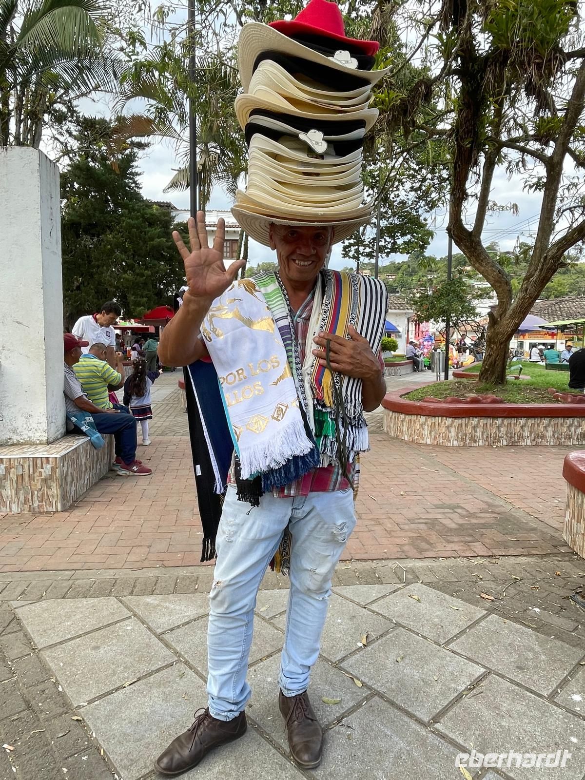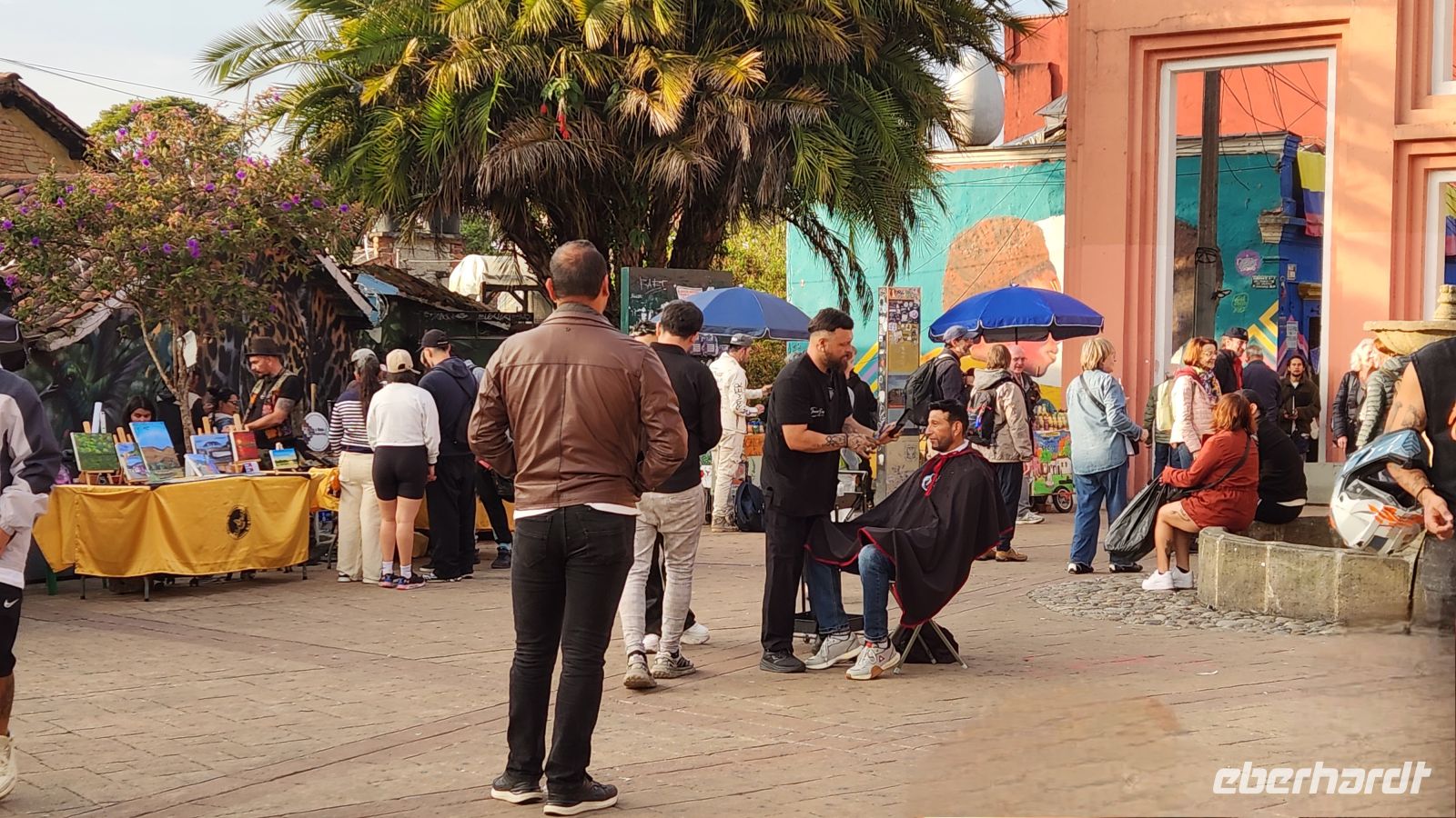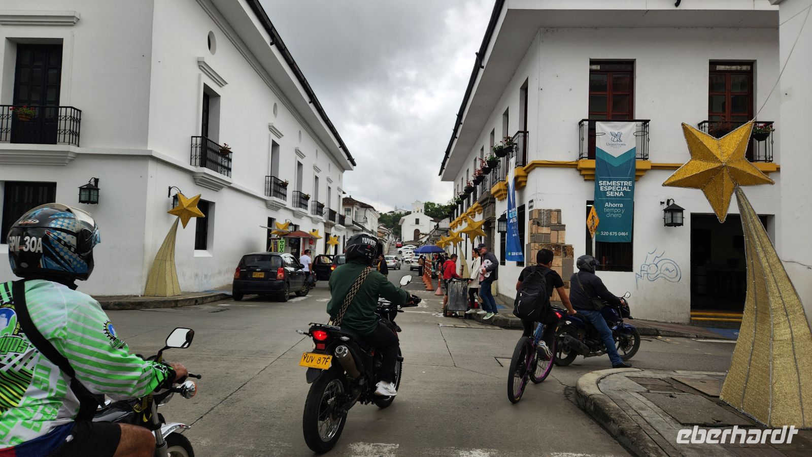 Zuerst setzen wir uns gemeinsam in ein sehr einfaches Lokal und beobachten von unserem Tisch aus lange das Treiben der Stadt: Mopeds, auf denen 3 Freunde oder ganze Familien sitzen, Kinder, ältere Herrschaften und auch ein Kolumbianer mit vielen Hüten auf dem Kopf und einem stolzen Lama an der Leine, laufen an unserem Cafe vorbei. Danach bummeln wir durch die kleinen Geschäfte, schauen uns Handwerkskunst und Souvenirs an und genießen einfach die entspannte Atmosphäre.