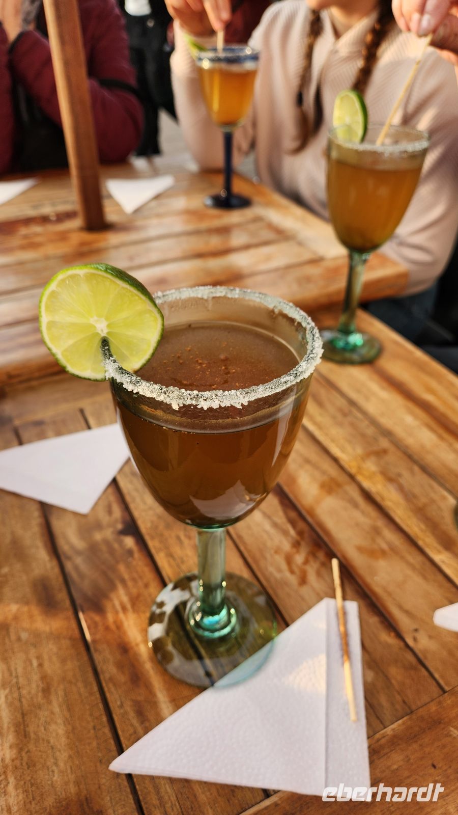 Am Abend treffen wir uns wieder zum gemeinsamen Essen. Wir spazieren gemütlich durch den Ort zum „Camino Real Parrilla Bar“, einem rustikal eingerichteten Restaurant mit schweren Holzmöbeln, Pflanzen und einer Atmosphäre, die fast ein wenig an einen Dschungel erinnert.