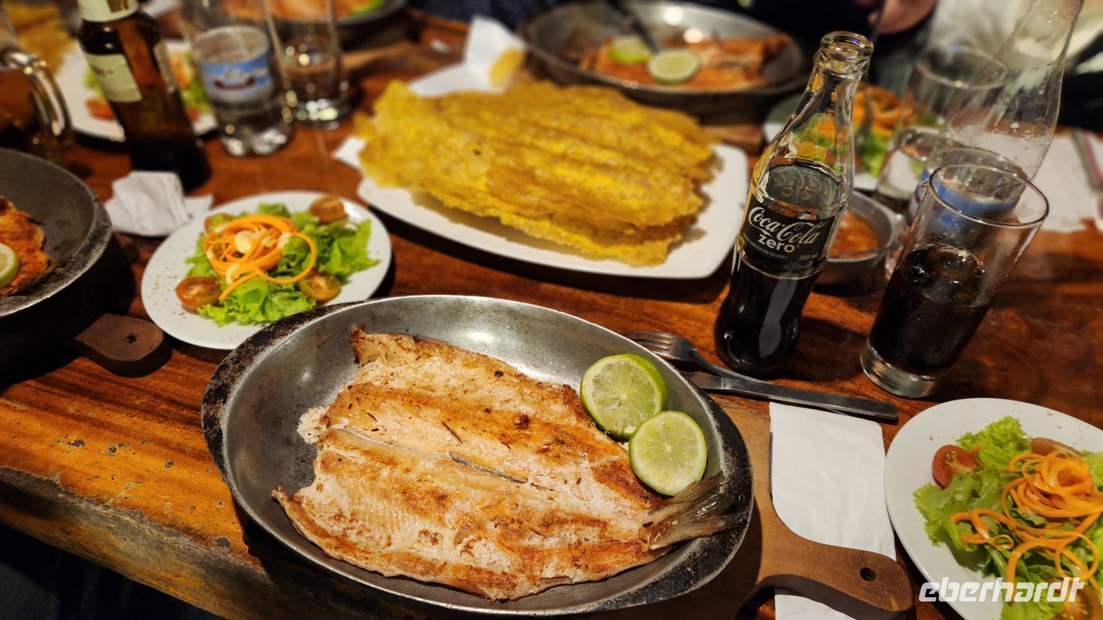 Am Abend treffen wir uns zum Essen und fahren mit Taxis in das Ausgehviertel La Provenza, ein belebtes, trendiges Quartier mit Bars und Restaurants. Wir finden schnell das passende Lokal: Es ist laut, lebendig und gleichzeitig ausgesprochen gemütlich. Wir bestellen Lachs mit Salat oder Quesadillas, stoßen an und genießen die warme, entspannte Stimmung.