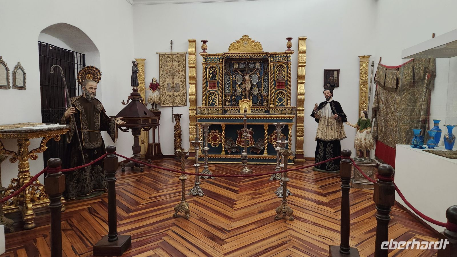 Wir besuchen das Museo Arquidiocesano de Arte Religioso, das eine wertvolle Sammlung kolonialer religiöser Kunst beherbergt – Gemälde, Skulpturen, Gold- und Silberarbeiten, die aus Kirchen der gesamten Region stammen. Das Museum vermittelt einen intensiven Eindruck davon, wie tief der Glaube hier verwurzelt ist.