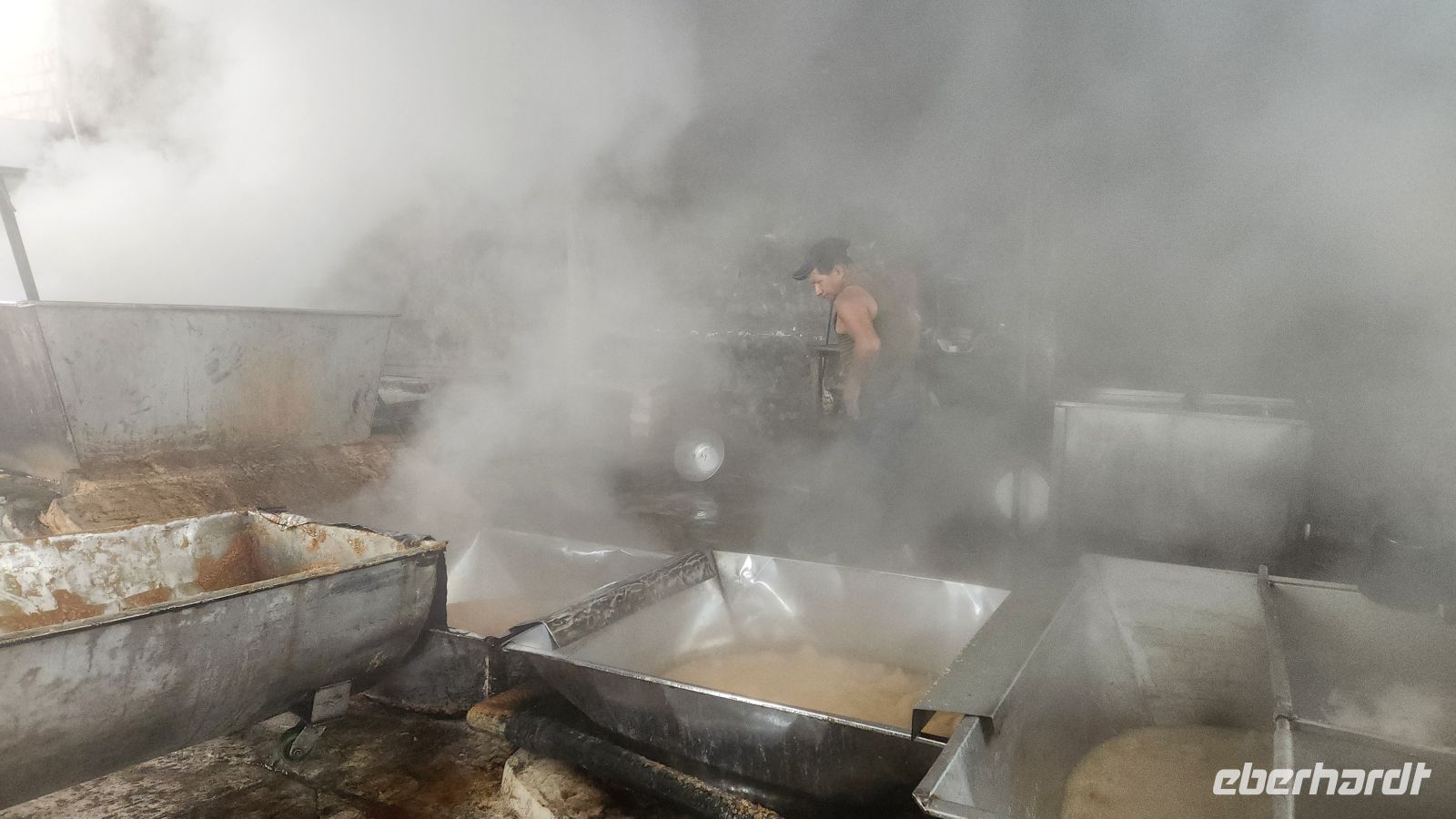 Unterwegs halten wir an einer kleinen Zuckerrohrfabrik. Unter einfachsten und körperlich sehr anstrengenden Bedingungen wird hier das Zuckerrohr verarbeitet. Die Hitze, die schweren Maschinen und die Handarbeit beeindrucken uns – und gleichzeitig lächeln uns die Arbeiter freundlich zu. Aus Lautsprechern ertönt laute lateinamerikanische Musik, die über das gesamte Gelände hallt und eine fast fröhliche Stimmung schafft, die für uns ungewohnt, aber sehr typisch für diese Region ist.