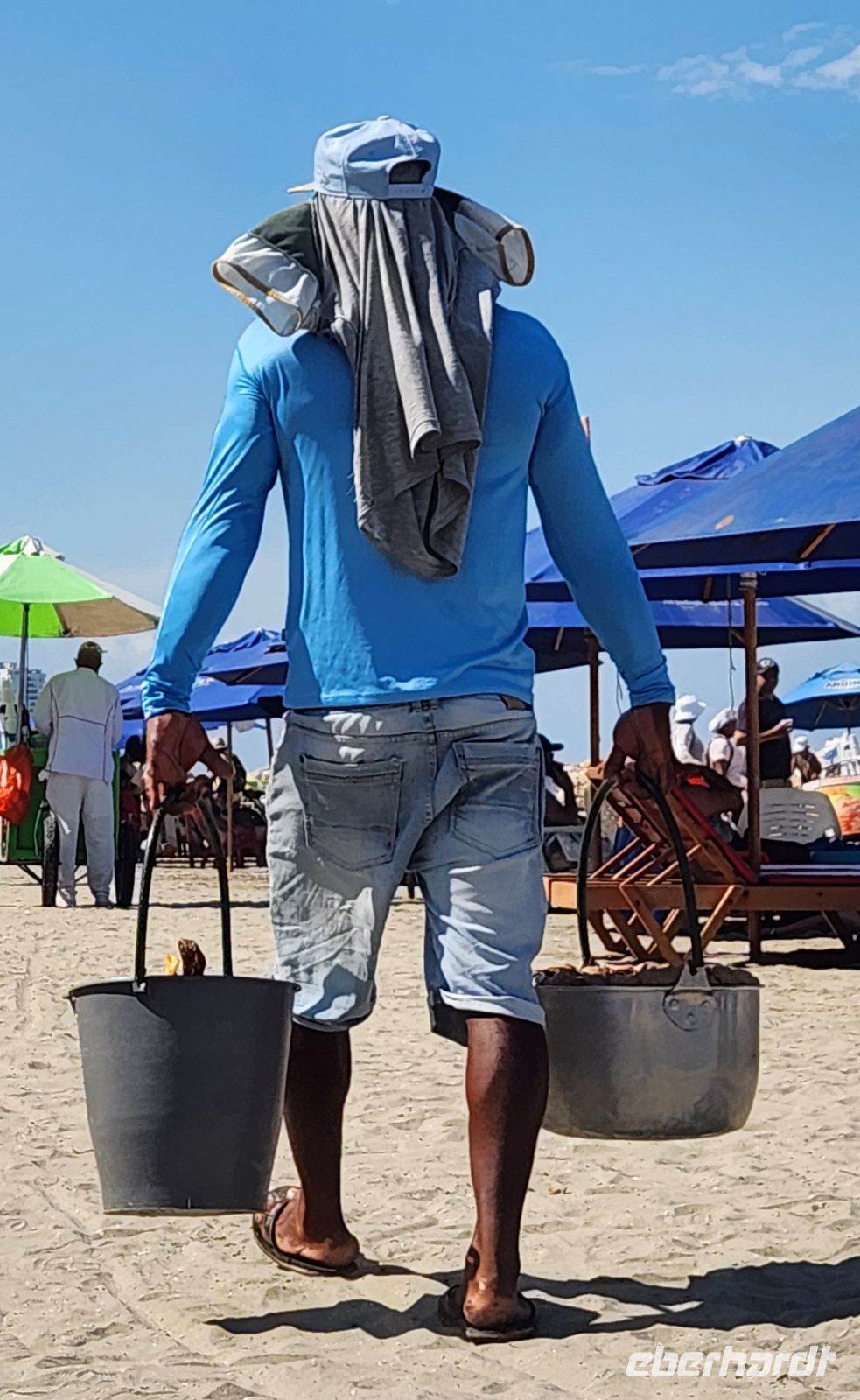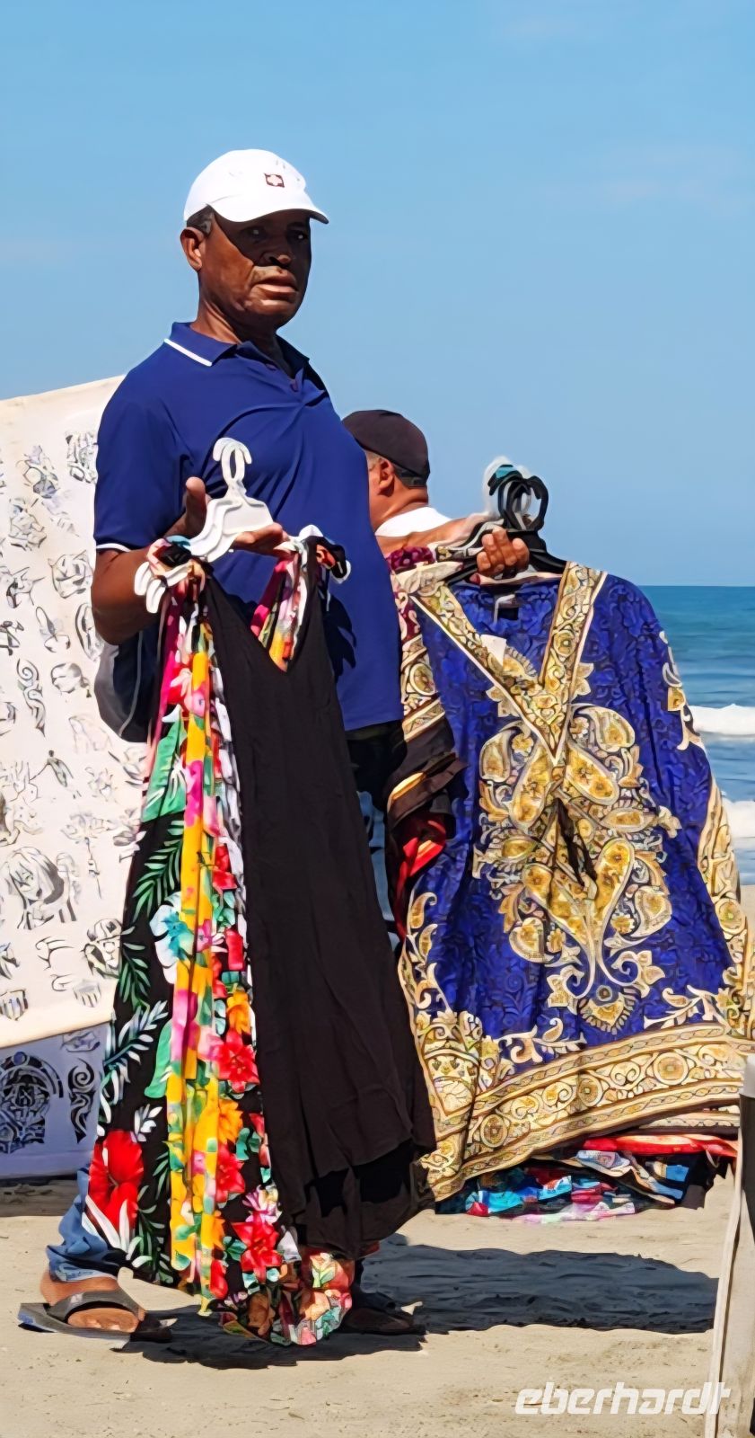Besonders viel Spaß haben wir beim Beobachten der wirklich sehr vielen Strandverkäufer. Es gibt einfach alles: Kleidung, Schmuck, Eis, Getränke, Buddelzeug, aufblasbare Schwimmhilfen, Sonnenbrillen, frisch zubereitetes Mittagessen, Massagen werdem angeboten, Selbstgebackenes und jede Menge Snacks. Vor uns läuft es ab wie ein lustiger Film – ein ständiges Kommen und Gehen. Aber alle sind sehr liebenswerte und fröhliche Menschen, man kann ihnen einfach nicht böse sein.