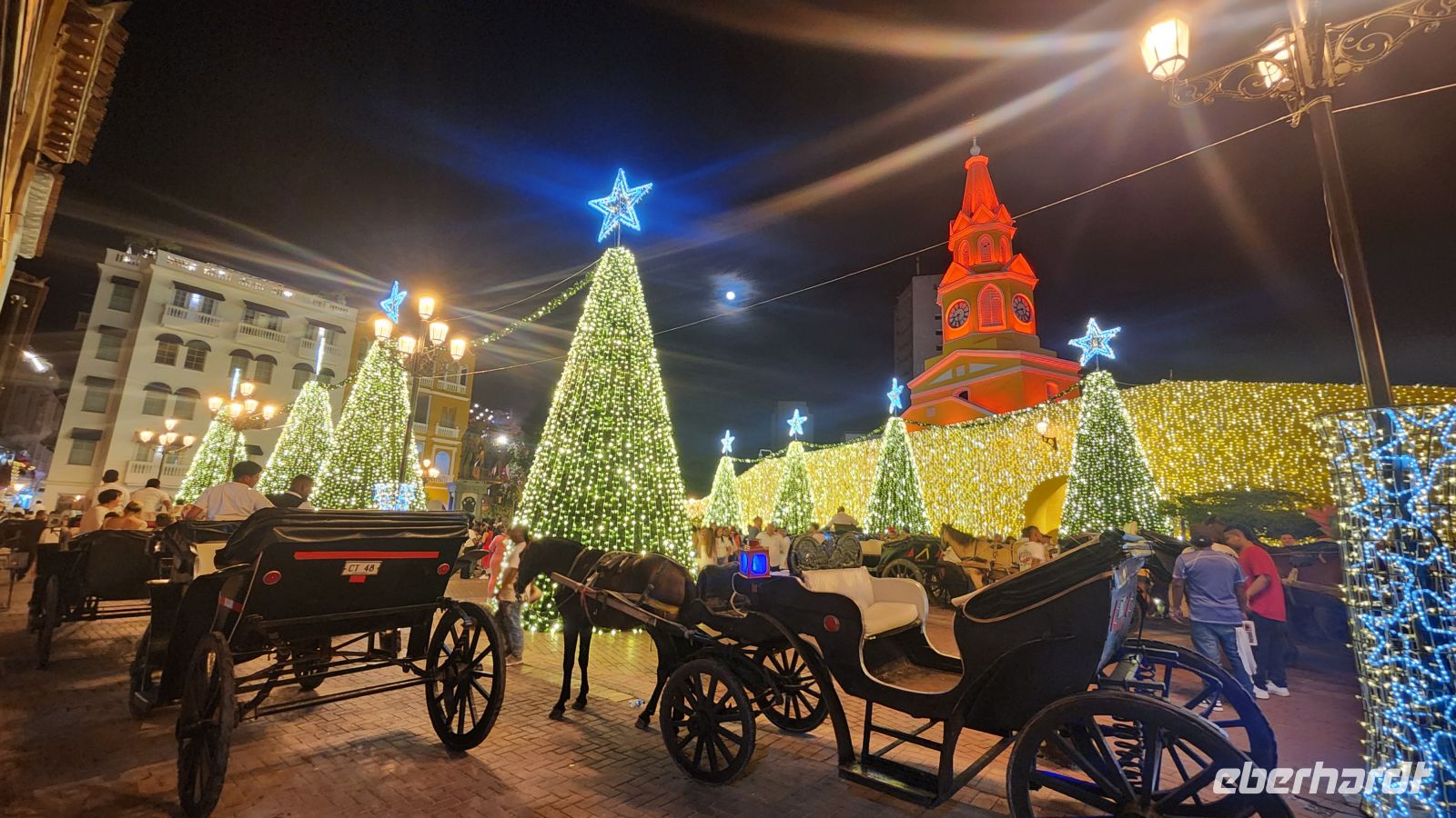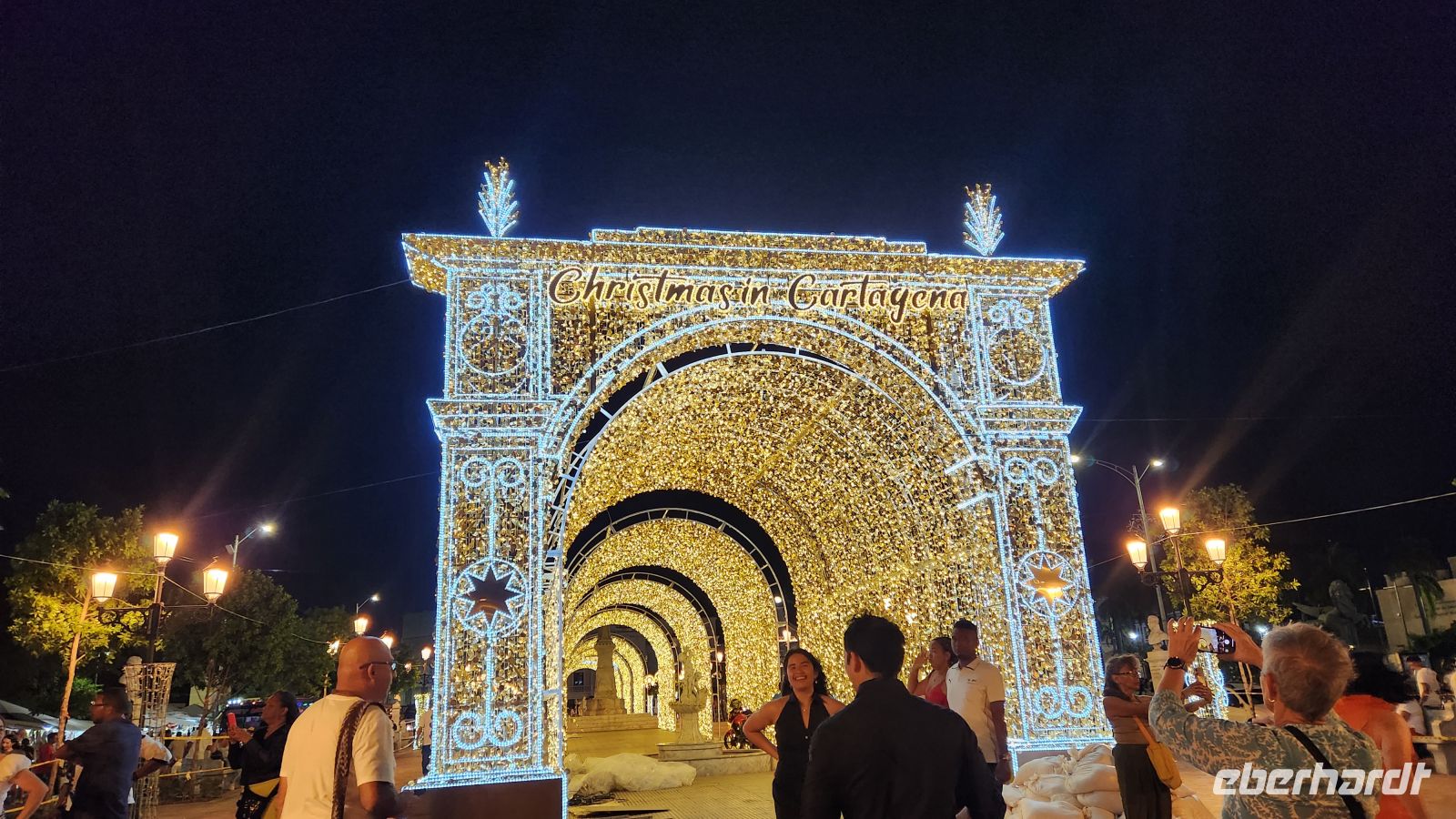 Am Abend treffen wir uns noch einmal zum gemeinsamen Abendessen und zu einem Spaziergang durch die Altstadt. Heute wurde die gesamte Weihnachtsbeleuchtung in der Stadt eingeschaltet. Tausende Menschen sind unterwegs, alle fröhlich und festlich gestimmt. Viele sind ganz in Weiß gekleidet - typisch für Cartagena zu besonderen Anlässen – oder haben Weihnachtsmützen und bunte Weihnachtsshirts an. Die Gassen leuchten, Musik klingt aus jeder Ecke und die Stimmung ist ausgelassen und fröhlich!