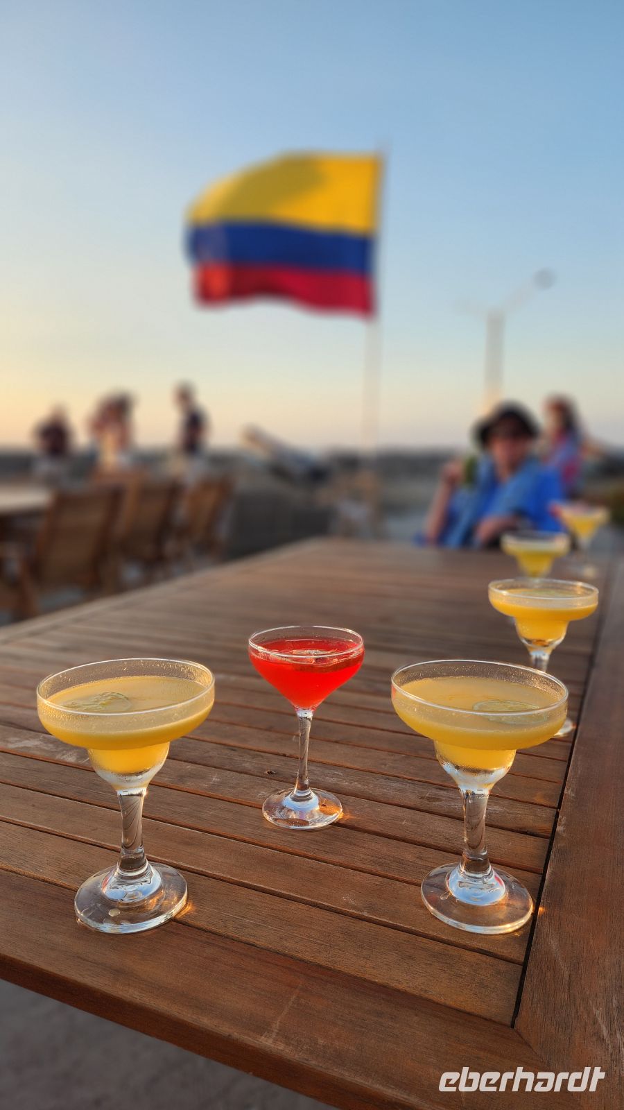 Um den Tag perfekt abzurunden, gehen wir anschließend noch in eine Bar auf einer Dachterrasse im hippen Ausgehviertel Getsemaní. Mit Blick über die Dächer, warmem Wind und lateinamerikanischen Rhythmen lassen wir den Abend ausklingen. Ein wunderschöner erster Tag in Cartagena.
