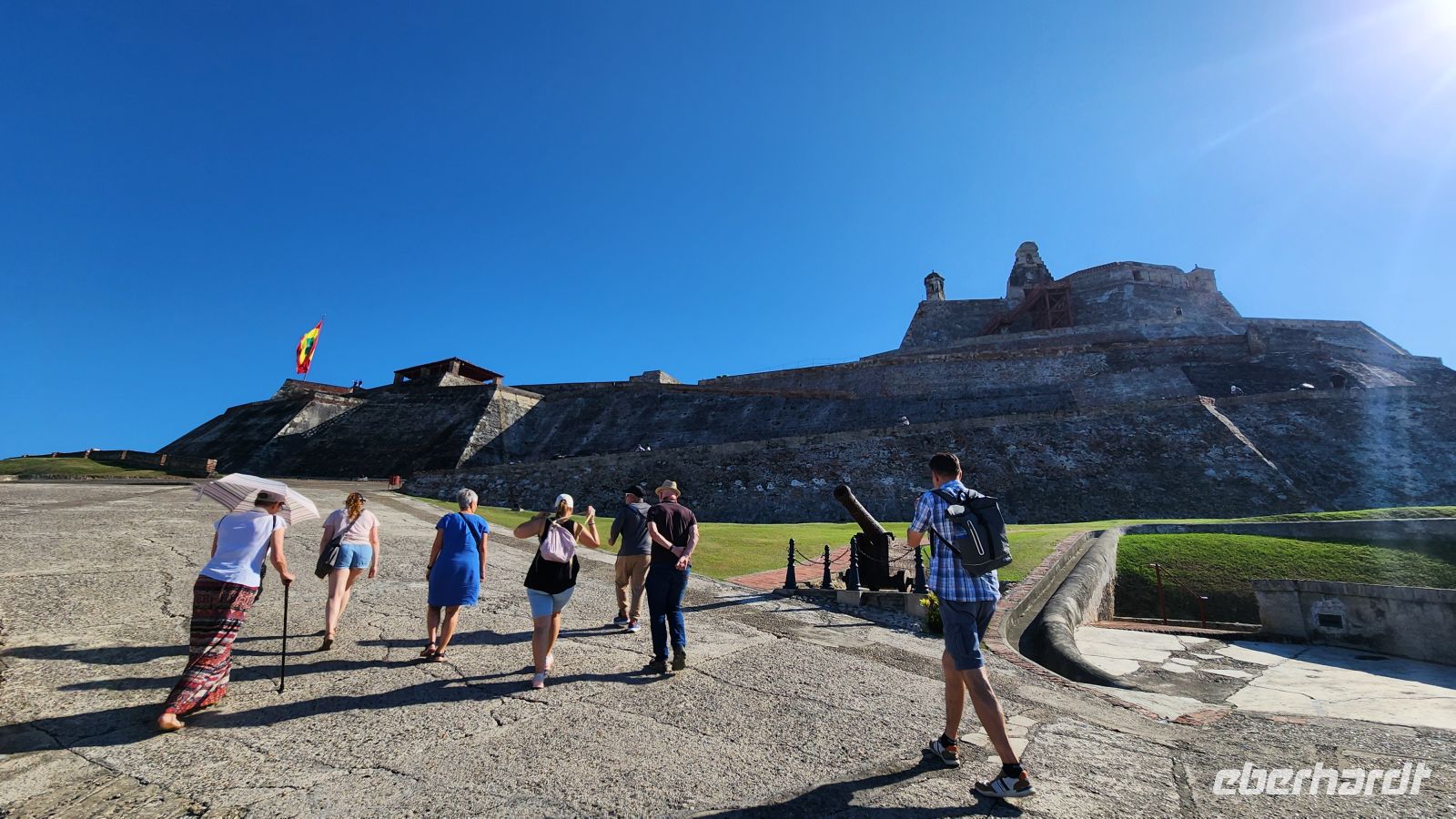 Zuerst besichtigen wir die Festung San Felipe de Barajas, die größte koloniale Festung Südamerikas. Sie wurde auf einem Hügel erbaut und sollte die Stadt vor Piraten und Angriffen schützen. Besonders beeindruckend sind die Tunnel, Gänge und das labyrinthartige System im Inneren – man kann sich gut vorstellen, wie Soldaten sich hier früher bewegten.
