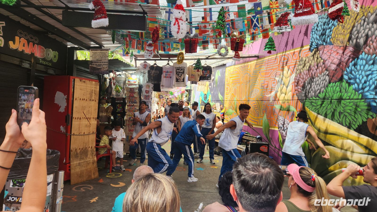 Es dauert nicht lange, bis die Musik uns mitreißt. Merengue, Cumbia und Salsa erfüllen den Platz, und natürlich versuchen wir uns ebenfalls im Merengue. Wir lachen viel, drehen uns im Takt und genießen diesen Moment sehr.