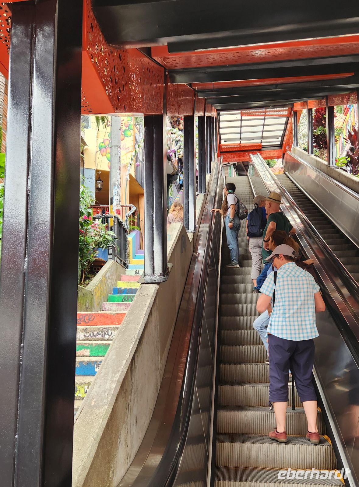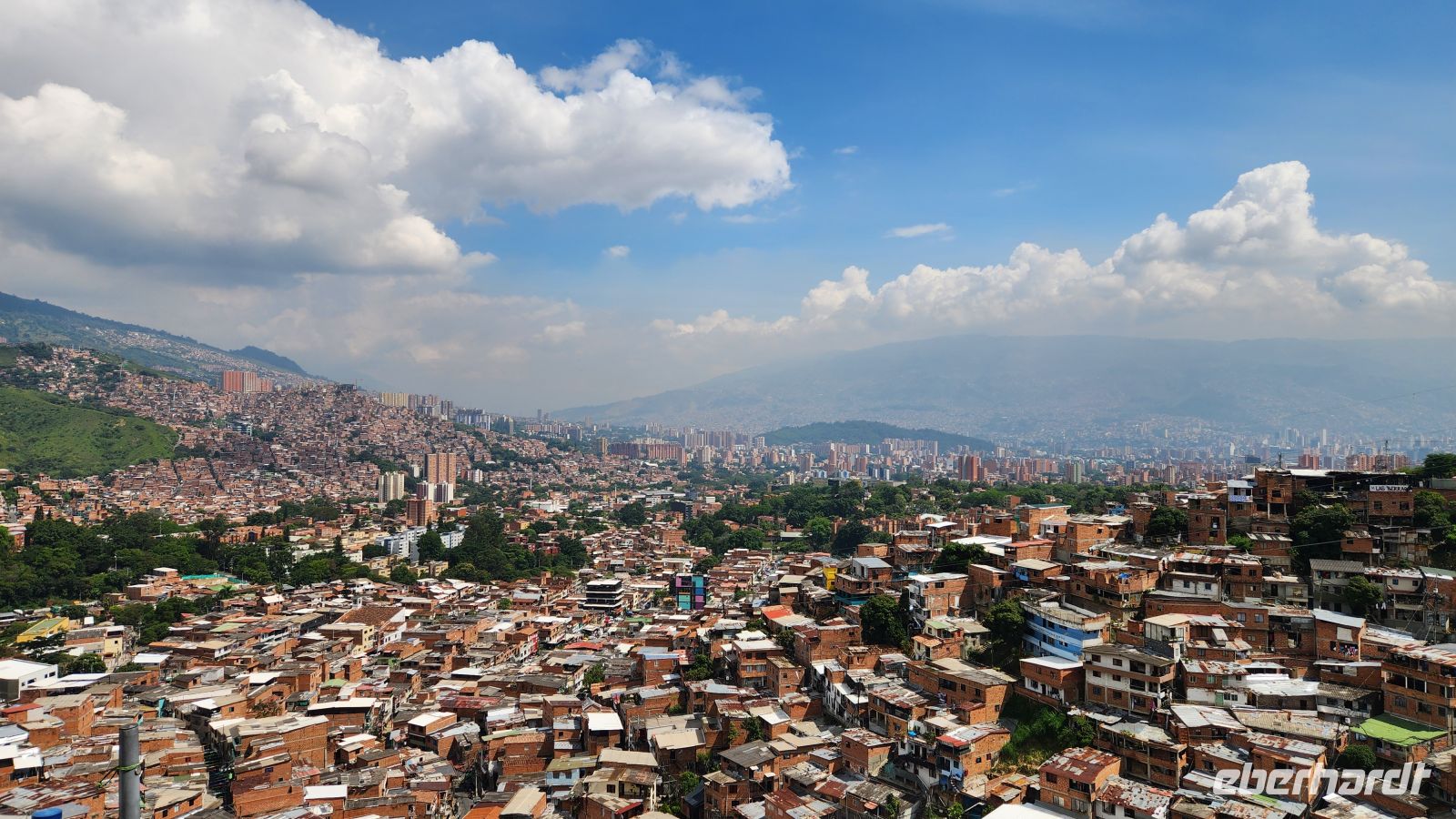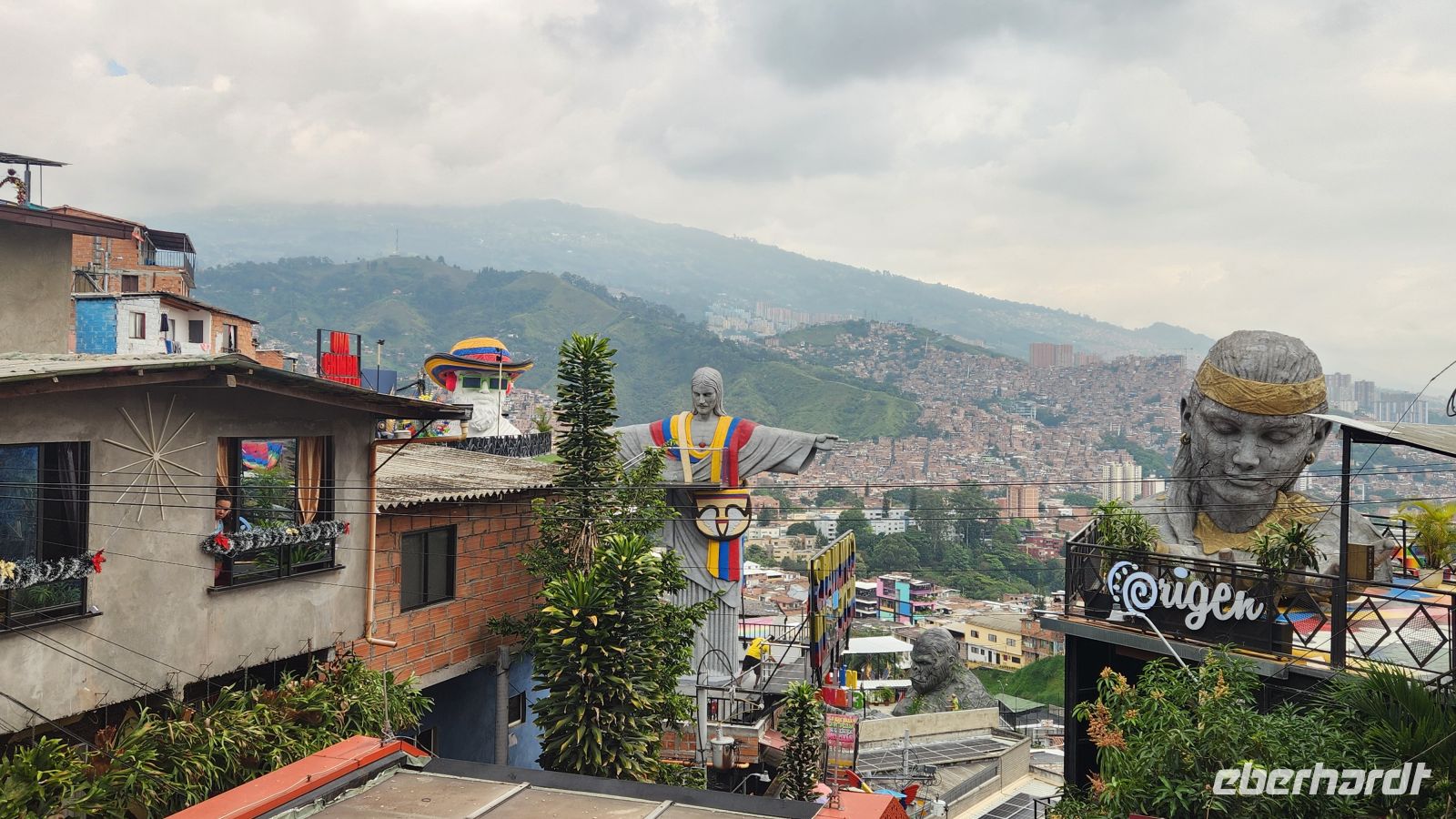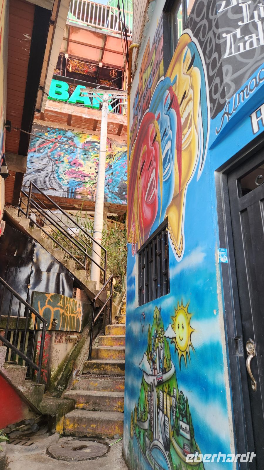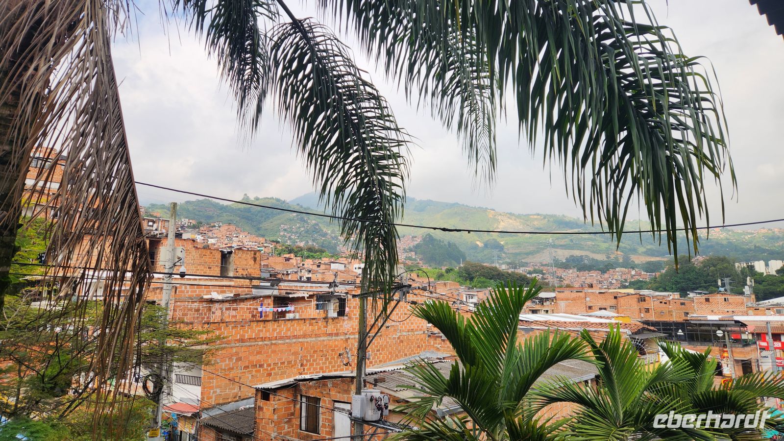 Am Vormittag besuchen wir La Comuna 13, ein Viertel, das früher zu den gefährlichsten Orten Medellíns gehörte. In den 80er- und 90er-Jahren kontrollierten hier Guerilla-Gruppen, Paramilitärs und das Medellín-Kartell große Teile des Alltags. Gewalt, Drogenhandel und ständige Auseinandersetzungen prägten das Leben der Bewohner.