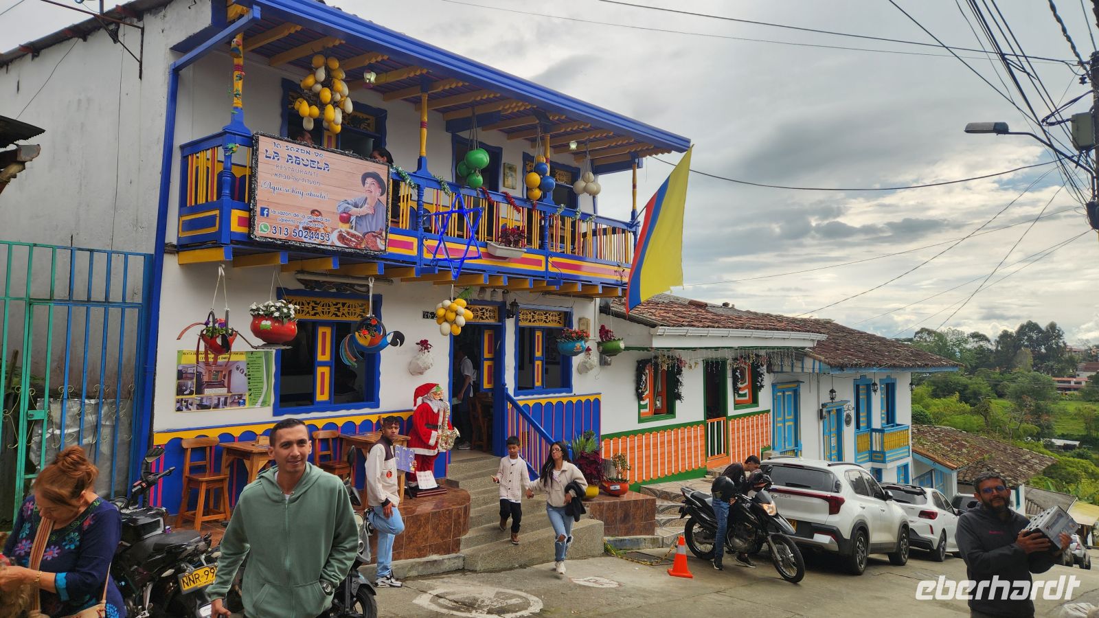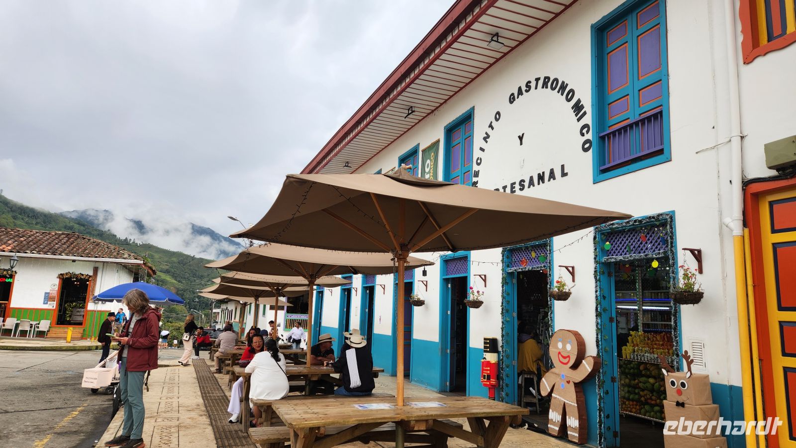 Doch zuvor legen wir noch einen Zwischenstopp in Salento ein, spazieren über den Plaza Bolívar und besuchen ein hübsches Café. Dort gönnen wir uns Kaffee und Kuchen – passend zum 1. Advent, der heute ist.