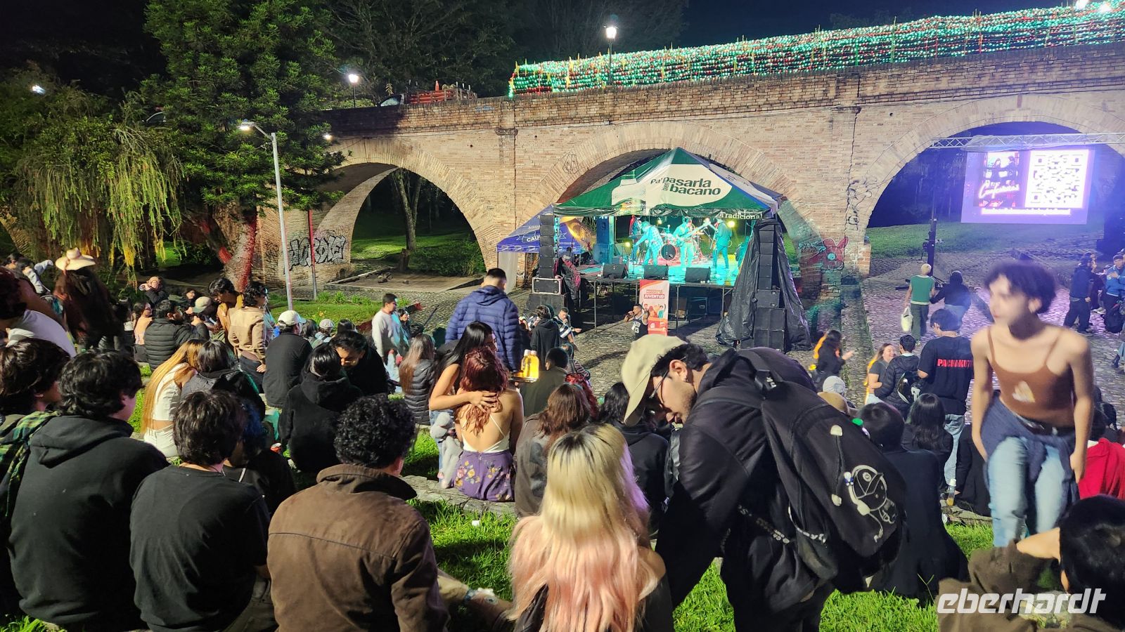 Anschließend folgen wir der Menge weiter und gelangen zu einem Jugend-Festival, das als Open-Air-Veranstaltung stattfindet. Verschiedene Bands spielen, junge Menschen feiern, Musik erfüllt die Nacht. Wir setzen uns eine Weile dazu, genießen die lebendige Stimmung und lassen diesen besonderen Tag entspannt ausklingen.