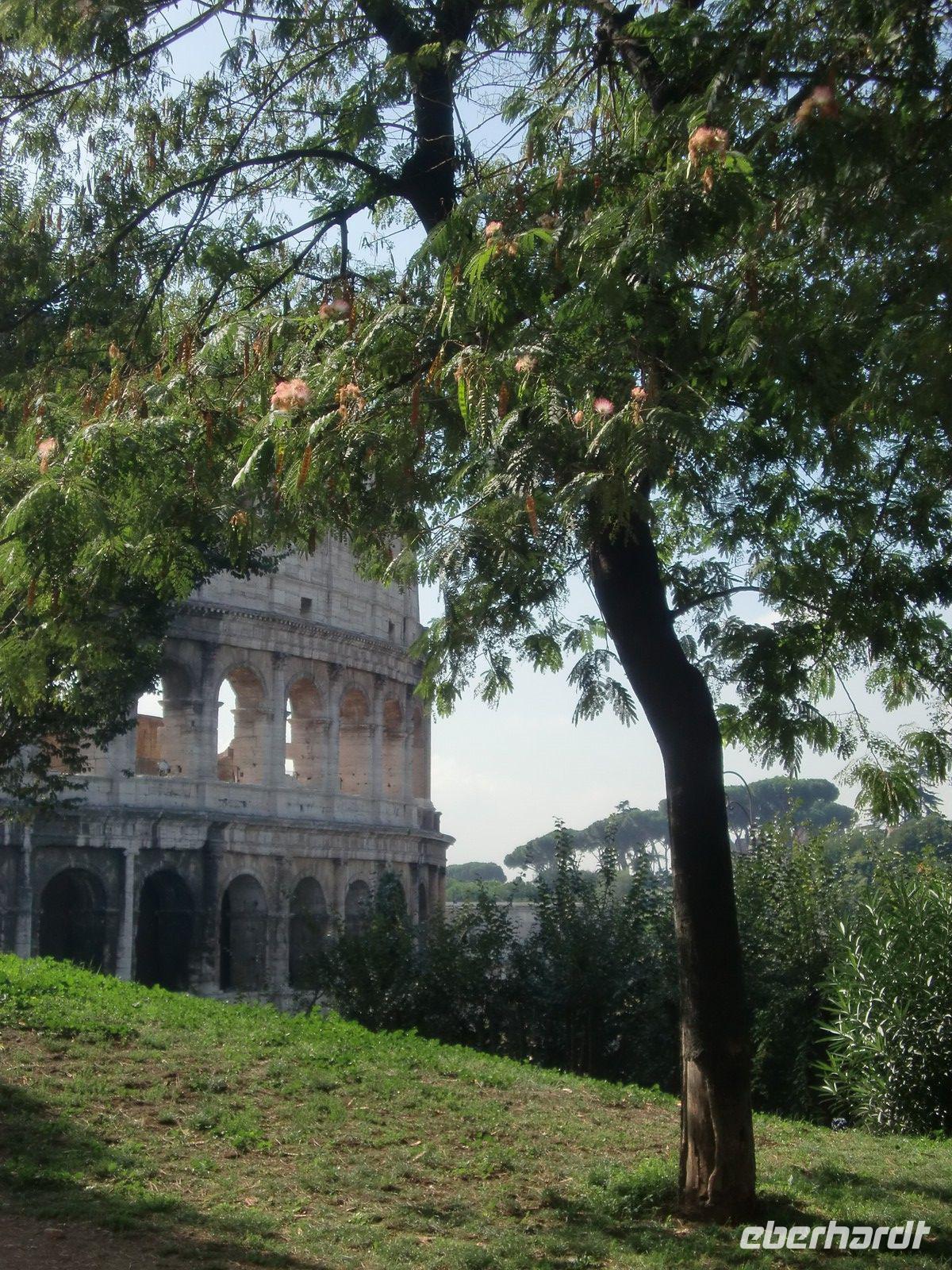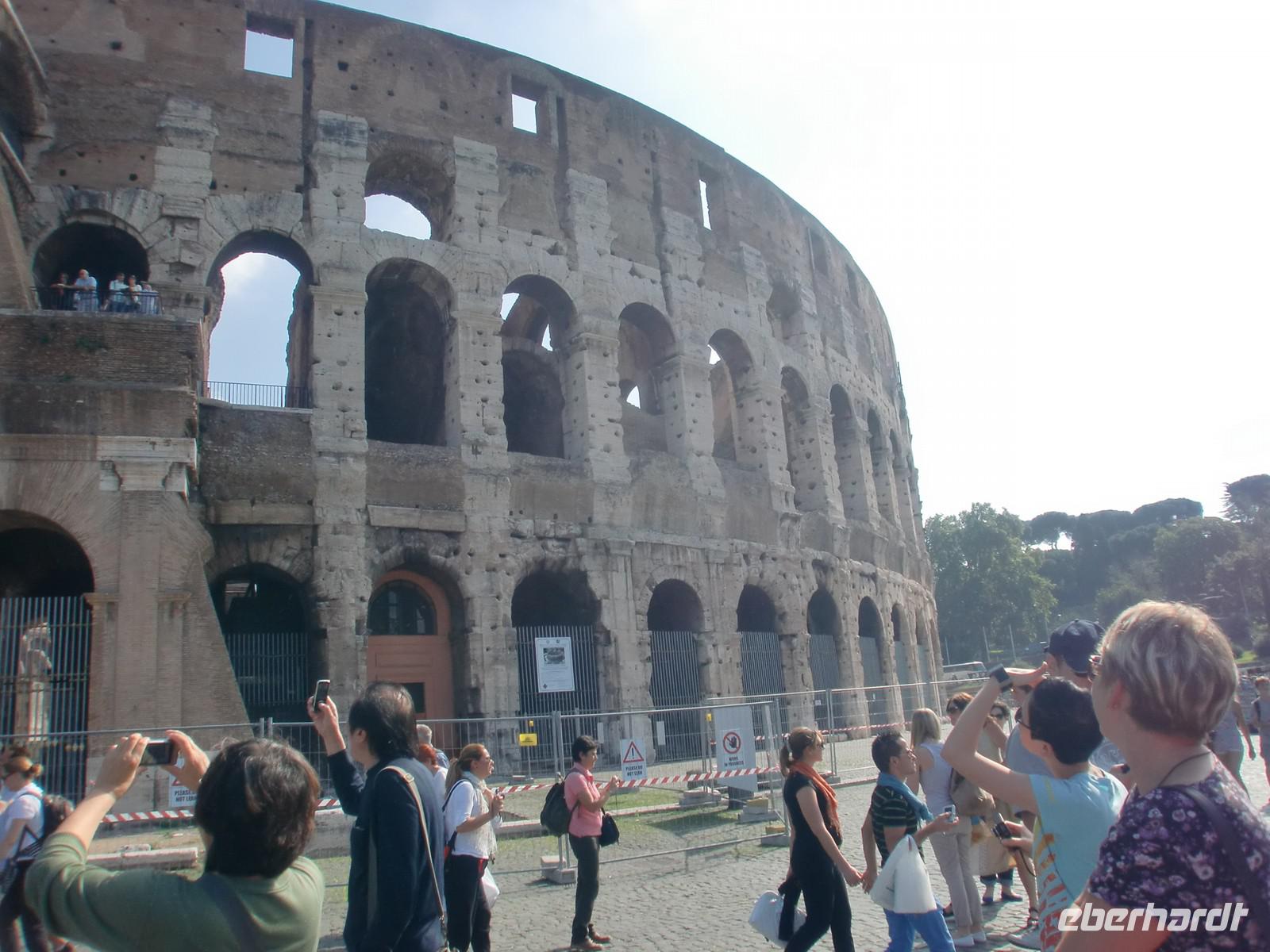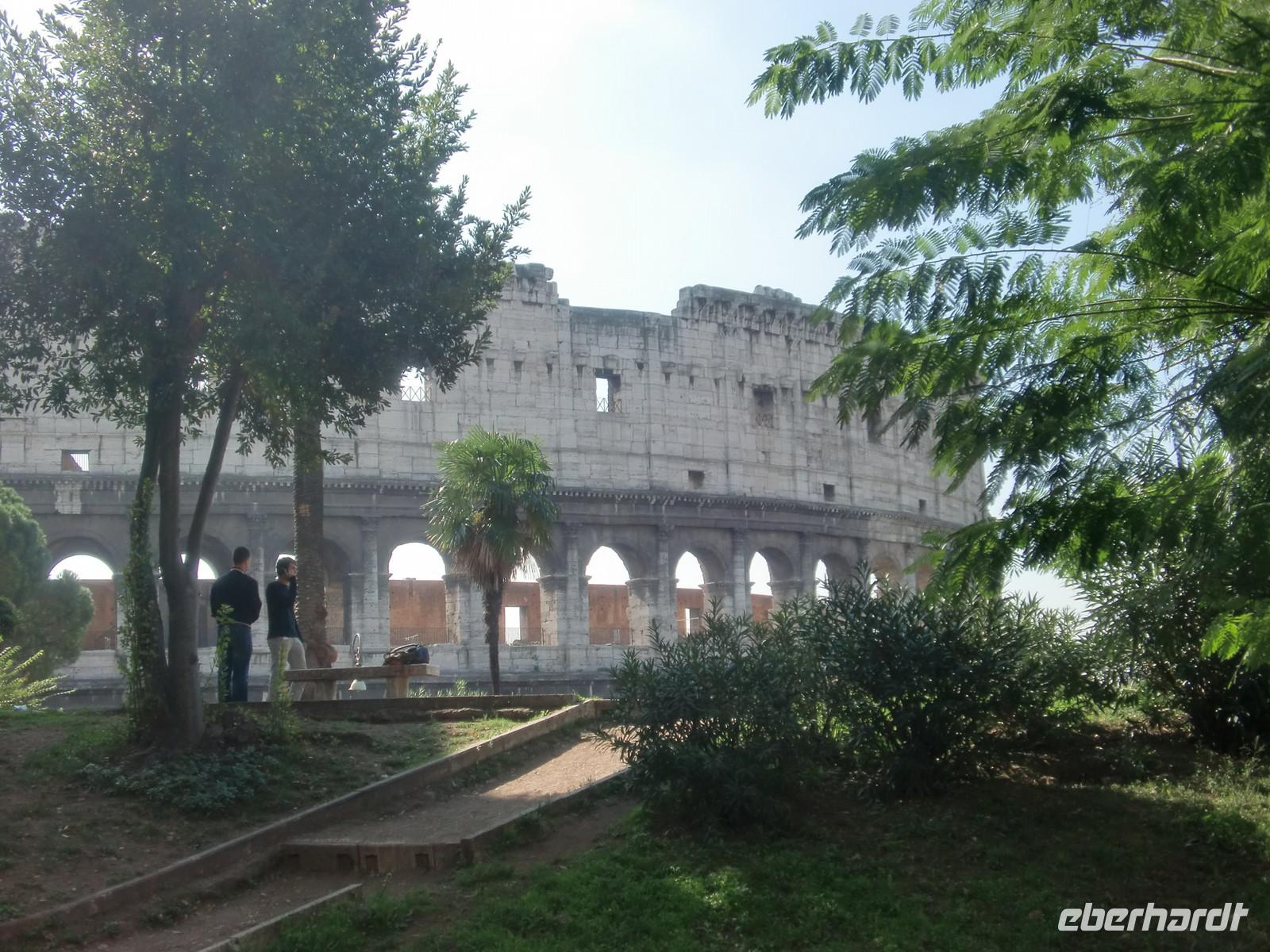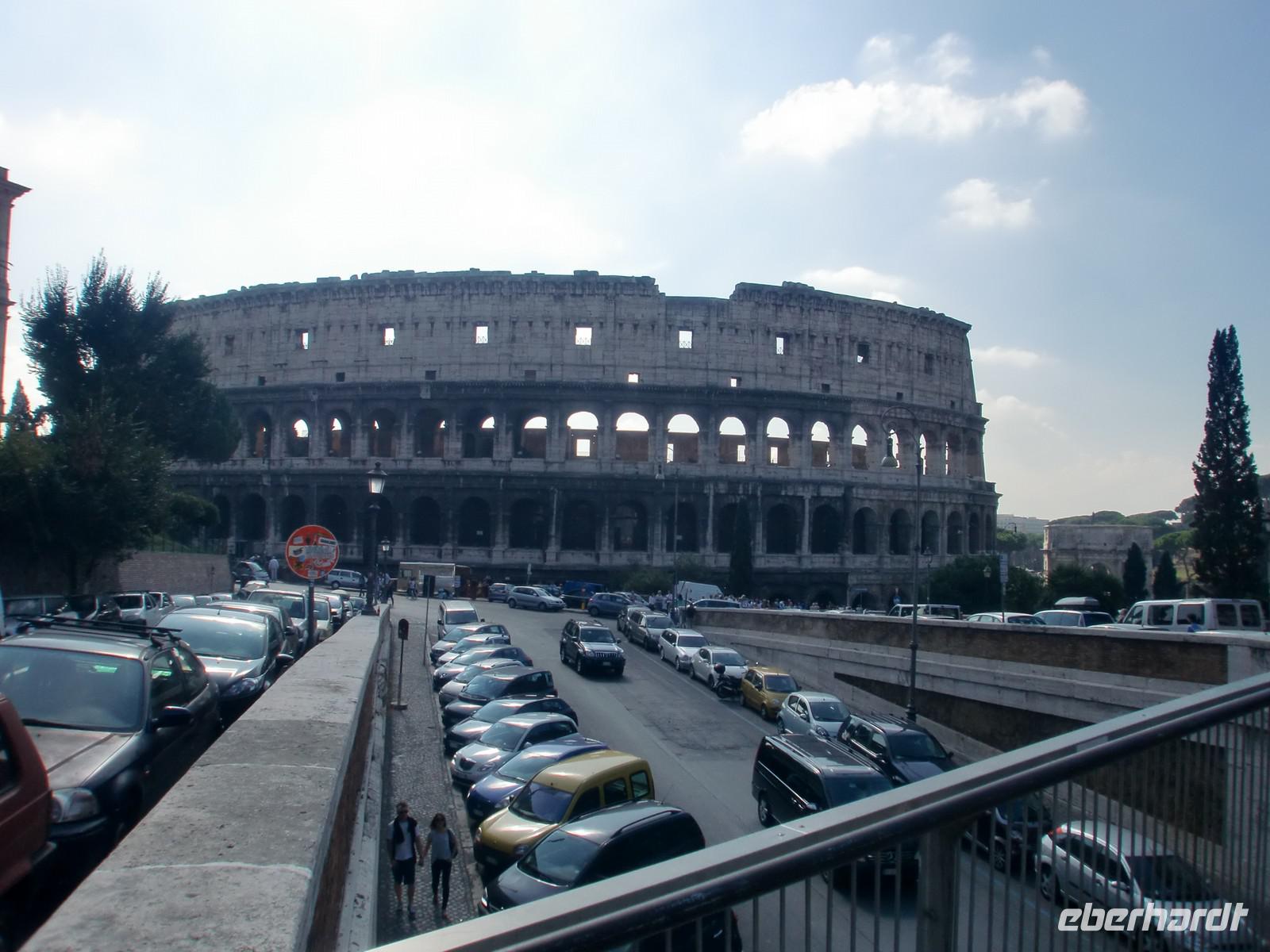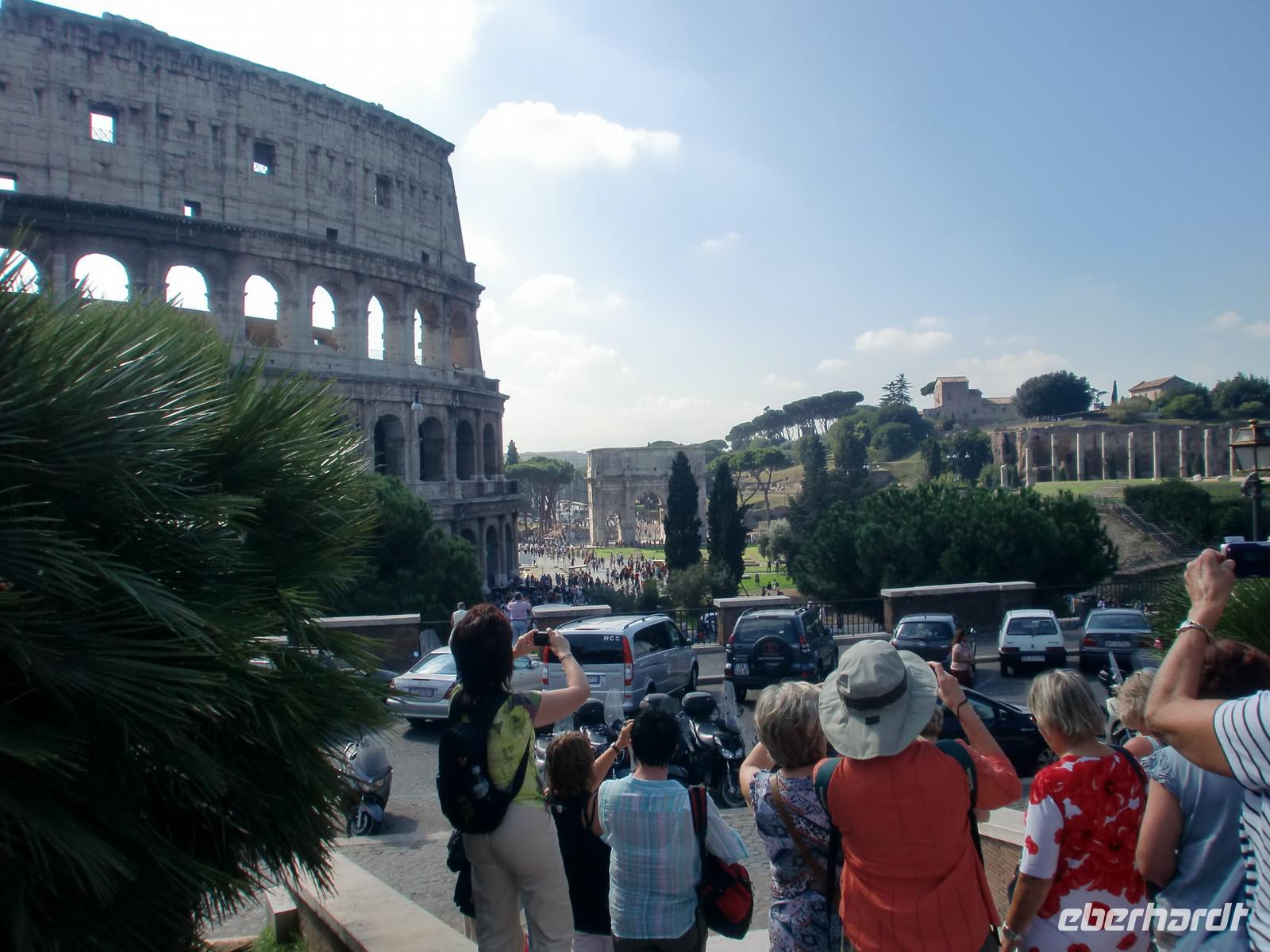 Vorbei an der Pyramide zum Kolosseum startet unsere Entdeckunsgtour und überrascht alle die, die noch nie im Rom waren. Alles liegt nah beieinander: alt neben neu, römisch neben modern. Unerbitterlich steht das Kolosseum seit 80 n. Chr. als das Wahrzeichens Rom. Heute wird das Kolosseum übrigens als Mahnmal gegen die Todesstrafe genutzt - und immer 48 Stunden lang angestrahlt, wenn ein Staat die Todesstrafe abschafft. Leider passiert das selten.