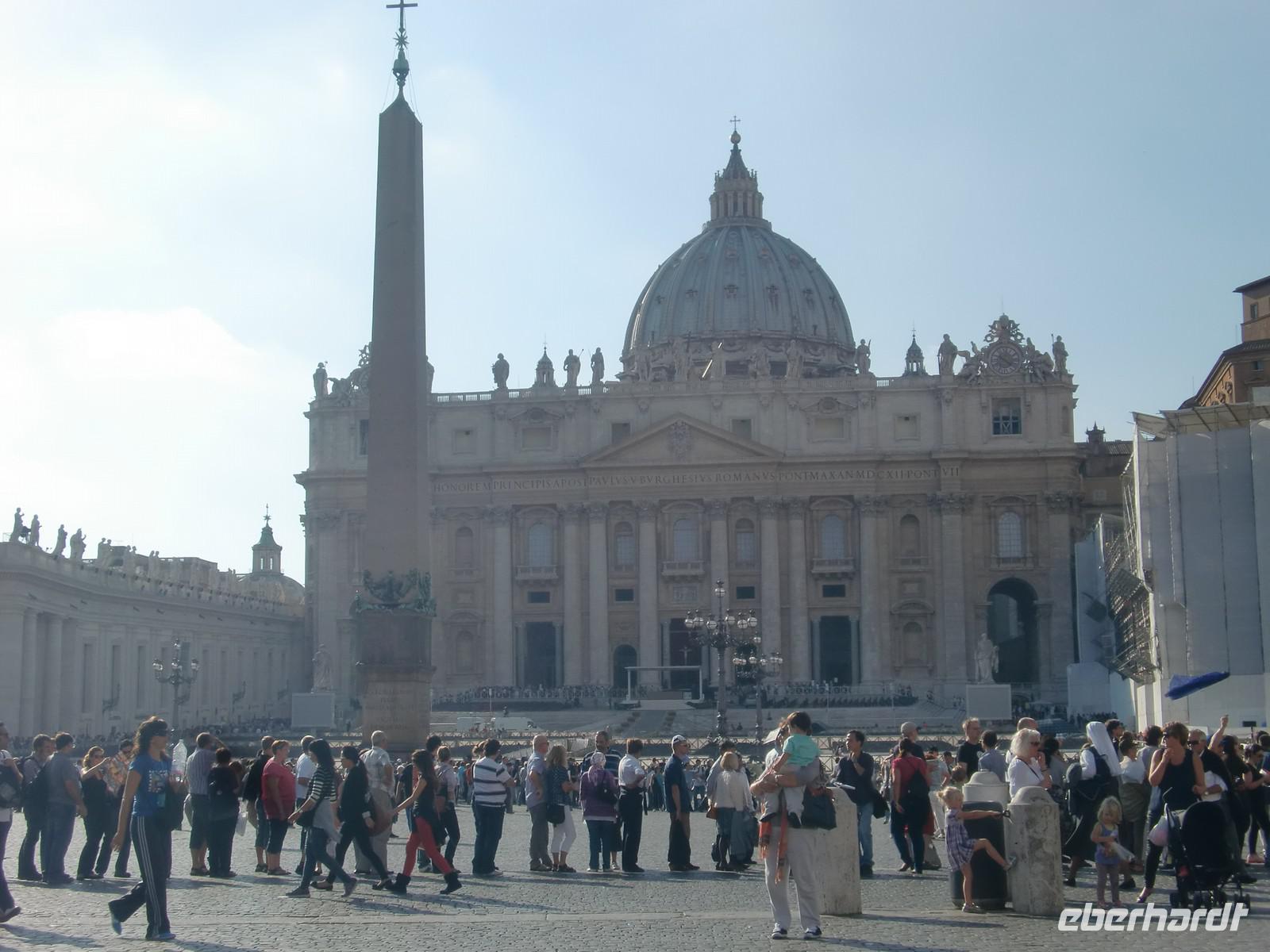 Mit unserem Bus machen wir dann noch einen "Abstecher" zum Vatikan - Menschenmassen und Busse in zwei Reihen erwarten uns. Dieser Zwergenstaat mit 0,44 Quadratkiometer Fläche und ca. 990 Einwohnern ist der kleinste Staat der Welt. Leider ist weder Zeit noch Platz, den Petersdom oder die Vatikanischen Gärten zu besuchen. Das ist ein Nachteil bei einer Kreuzfahrt - man kann überall nur schnuppern!