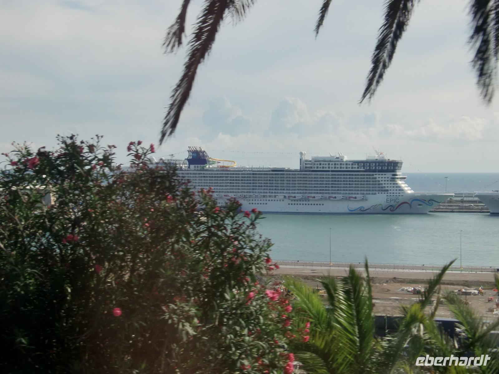 In Barcelona angekommen erwartet uns schon unser Fahrer, der uns zum Schiff bringt. Mit einer kostenloses Stadtrundfahrt hatte allerdings keiner gerechnet, denn Barcelona war aufgrund eines Radrennens zu großen Teilen gesperrt und so dauerte der Transfer zum Hafen länger als gedacht.