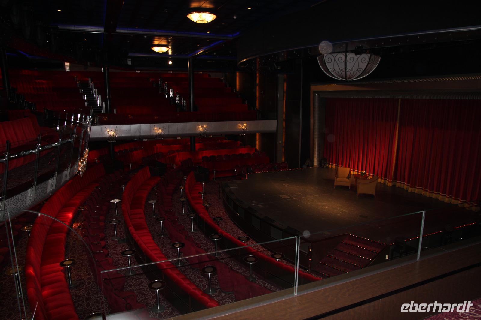 Unser Abendessen nehmen wir gut gekleidet im Restaurant Britannia ein. Wir werden gut bedient von flinken Kellnern und genießen auch noch ein Gläschen Prosecco auf Kosten der Reederei, die uns am Vormittag mit falschen Papieren zur Ausschiffung verwirrte. Am Abend blieb dann noch Zeit für die Teilnahme an der musikalischen Show im Royal Theater.