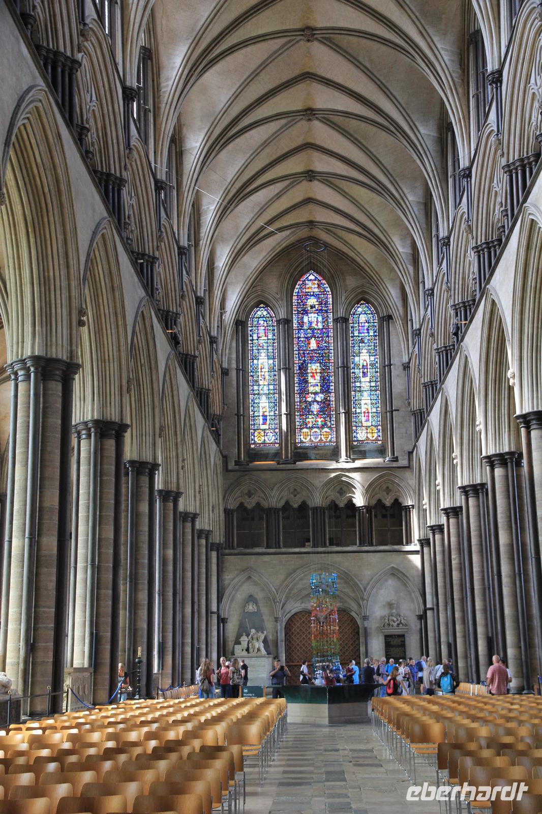 Die Ausschiffung im Hafen Southampton ist eine Massenbewegung, um die man sich nicht drücken kann, wenn man wieder festen Boden unter den Füßen haben möchte. Im Hafen finden wir unseren Bus, der uns dann ins malerische Städtchen Salisbury bringt. Wir werden von unserer Stadtführerin Sarah erklärend und orientierend durch die schon von den Römern gegründete Stadt geführt, bevor wir uns der architektonisch und historisch bedeutsamen Kathedrale zuwenden. Die 1258 geweihte Kirche gilt als Vorbild und Idealtyp frühgotischen englischen Kirchenbaus und beeindruckt mit dem höchsten Kirchturm (123 Meter) Englands. Im Inneren der Kirche haben wir Gelegenheit zur Besichtigung eines der vier noch erhaltenen Originale der Magna Carta Libertatum, des Gesellschaftsvertrages zwischen König Johann Ohneland und dem englischen Adel aus dem Jahr 1215, der heute als Geburtsurkunde der westlichen Demokratie und des Parlamentarismus betrachtet wird. Die Mittagspause genießen wir bei Sonnenschein - mit einem Bummel durch die Geschäfte Salisburys oder in einem Straßenrestaurant.