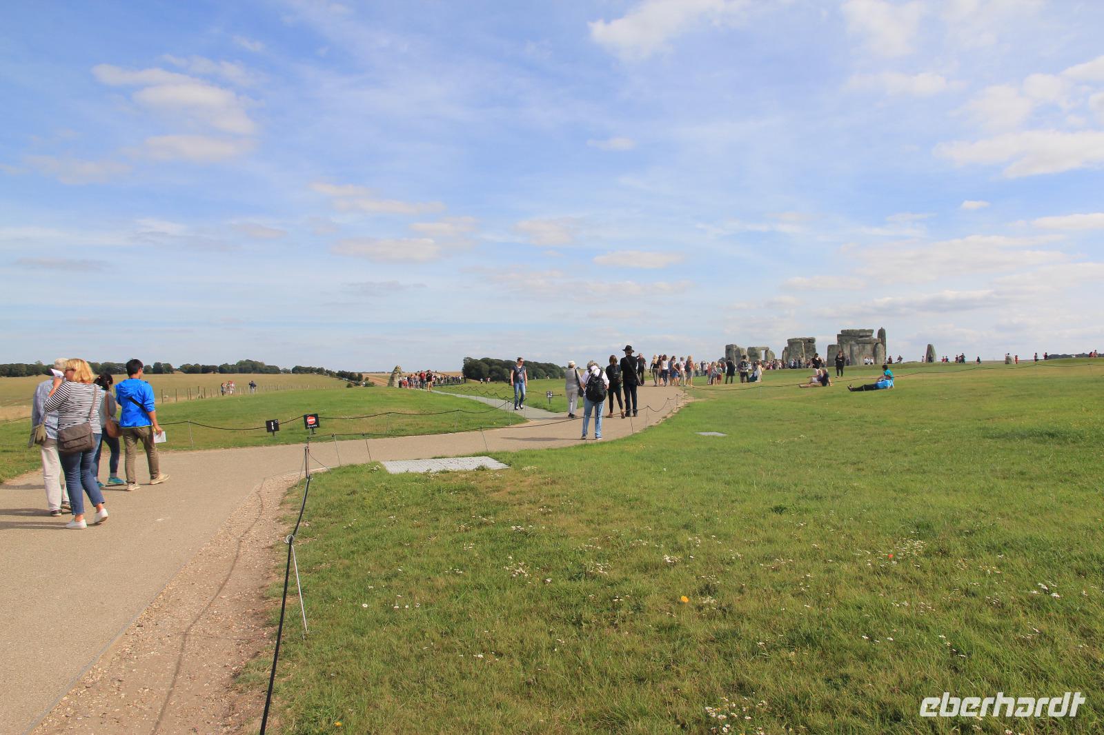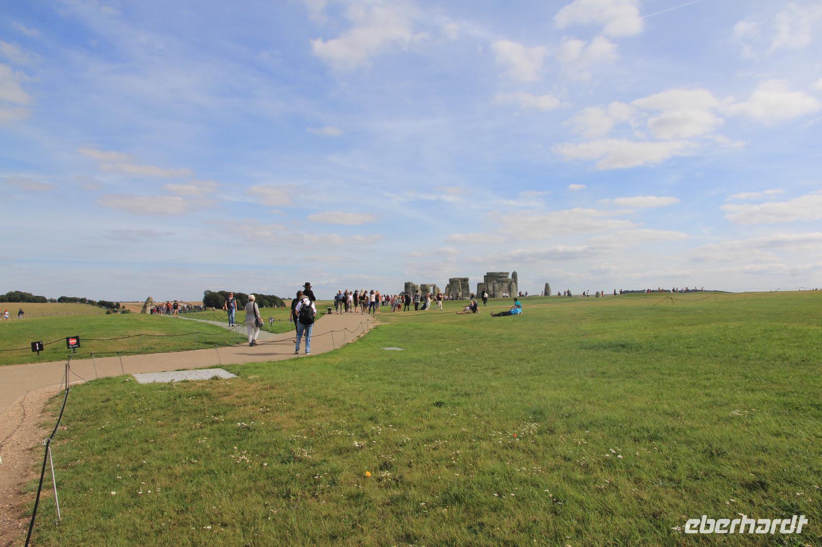 Mit dem Bus geht es dann einige Kilometer weiter nach Stonehenge, der in der Jungssteinzeit (Neolithikum) entstandenen Kultstätte, die heute noch so viele Fragen aufwirft. War es nun eine religiöse Stätte, eine astronomischen Beobachtungsstätte, ein Versammlungsplatz oder alles zusammen? Unser Audiogerät gibt uns zumindest Hinweise zu den möglichen Funktionen der Anlage, ihrer Anordnung und Bauweise. Wir genießen dabei mindestens einen sonnigen und entspannten Spaziergang mit hunderten anderen Touristen aus aller Welt.