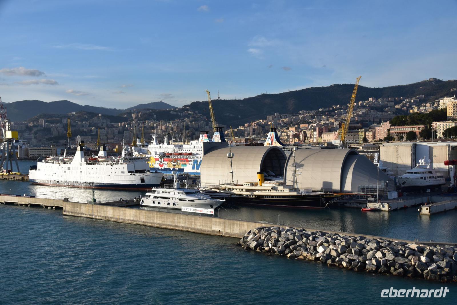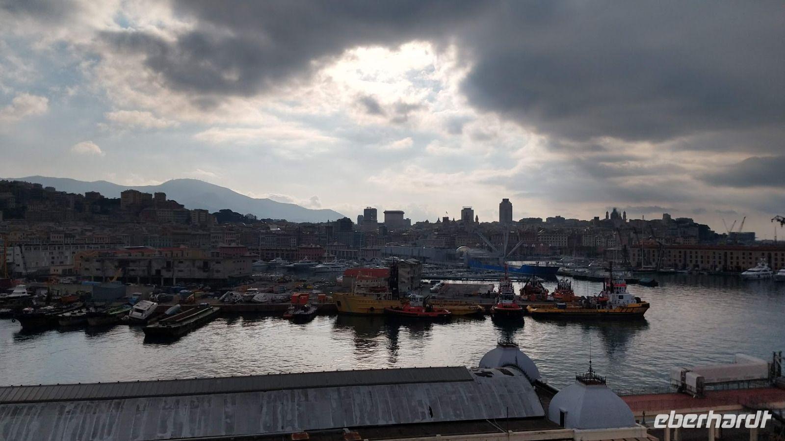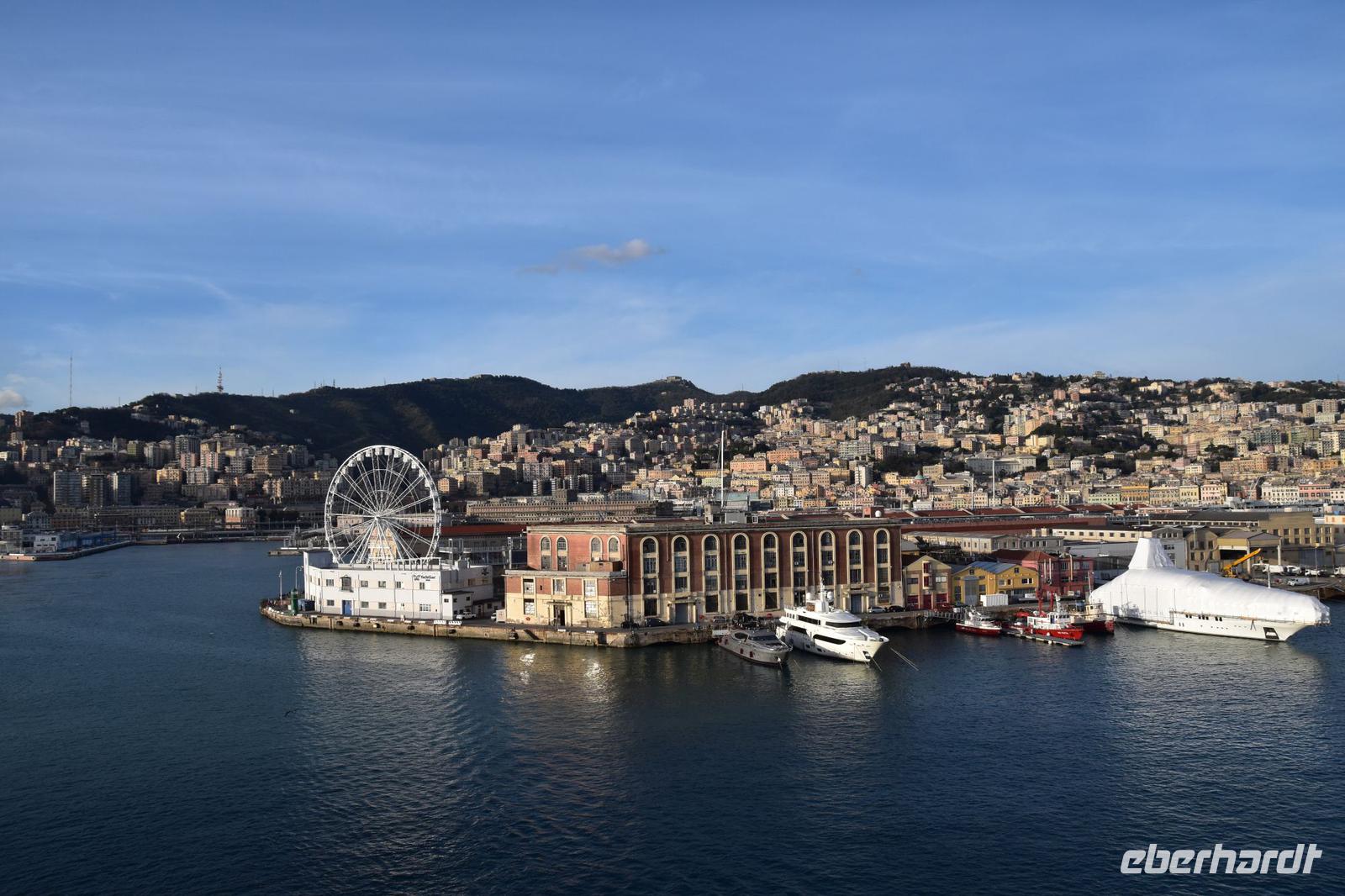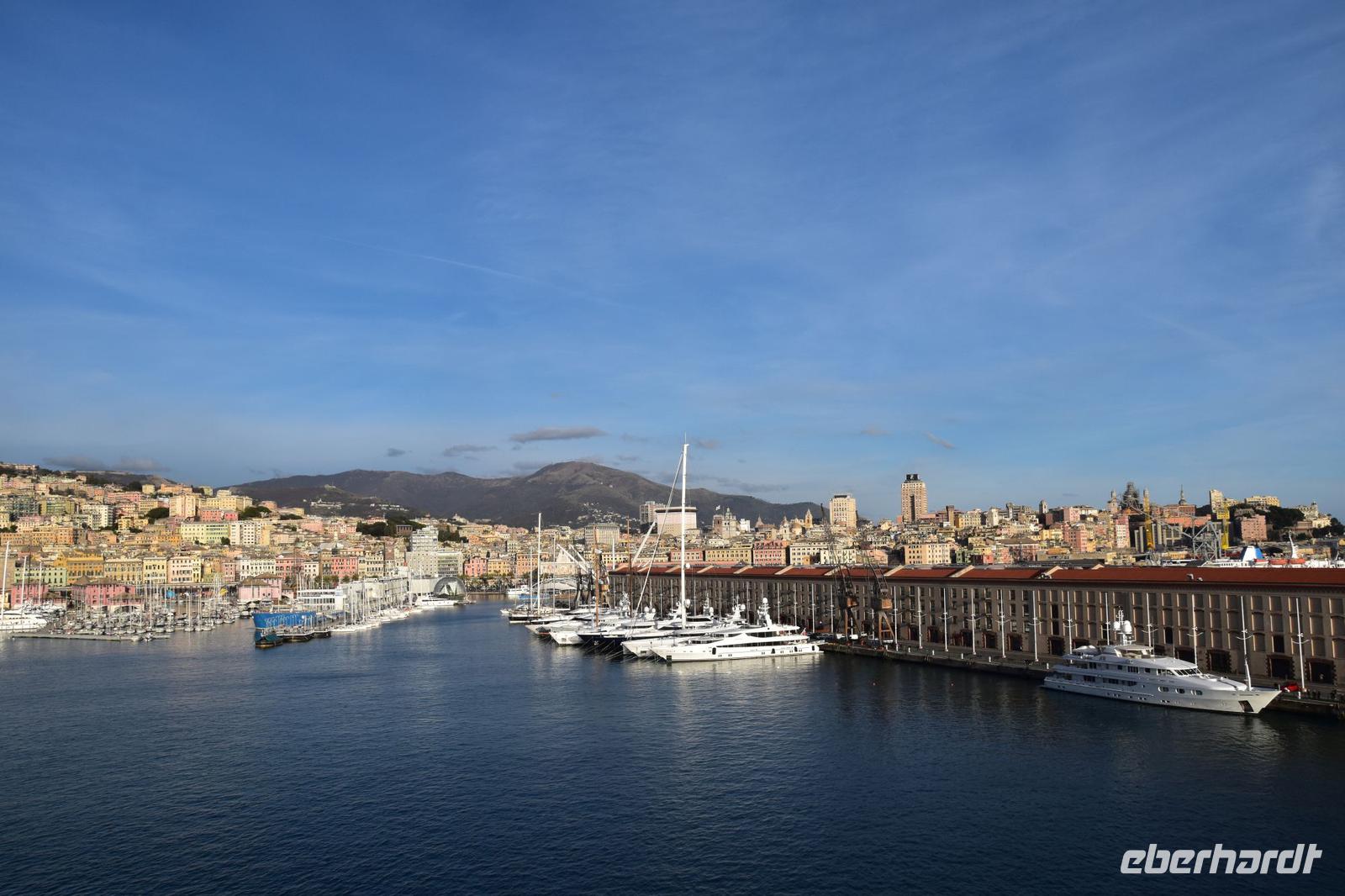 Über Nacht sind wir vom Tyrrhenisches Meer wieder in das Ligurische Meer gelangt und haben Genua erreicht.