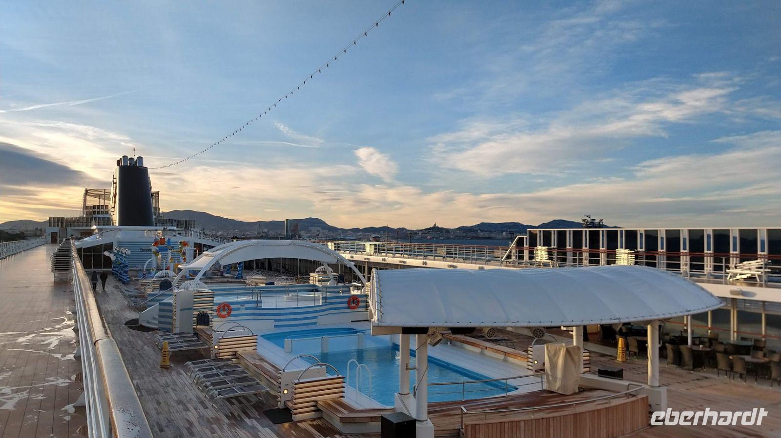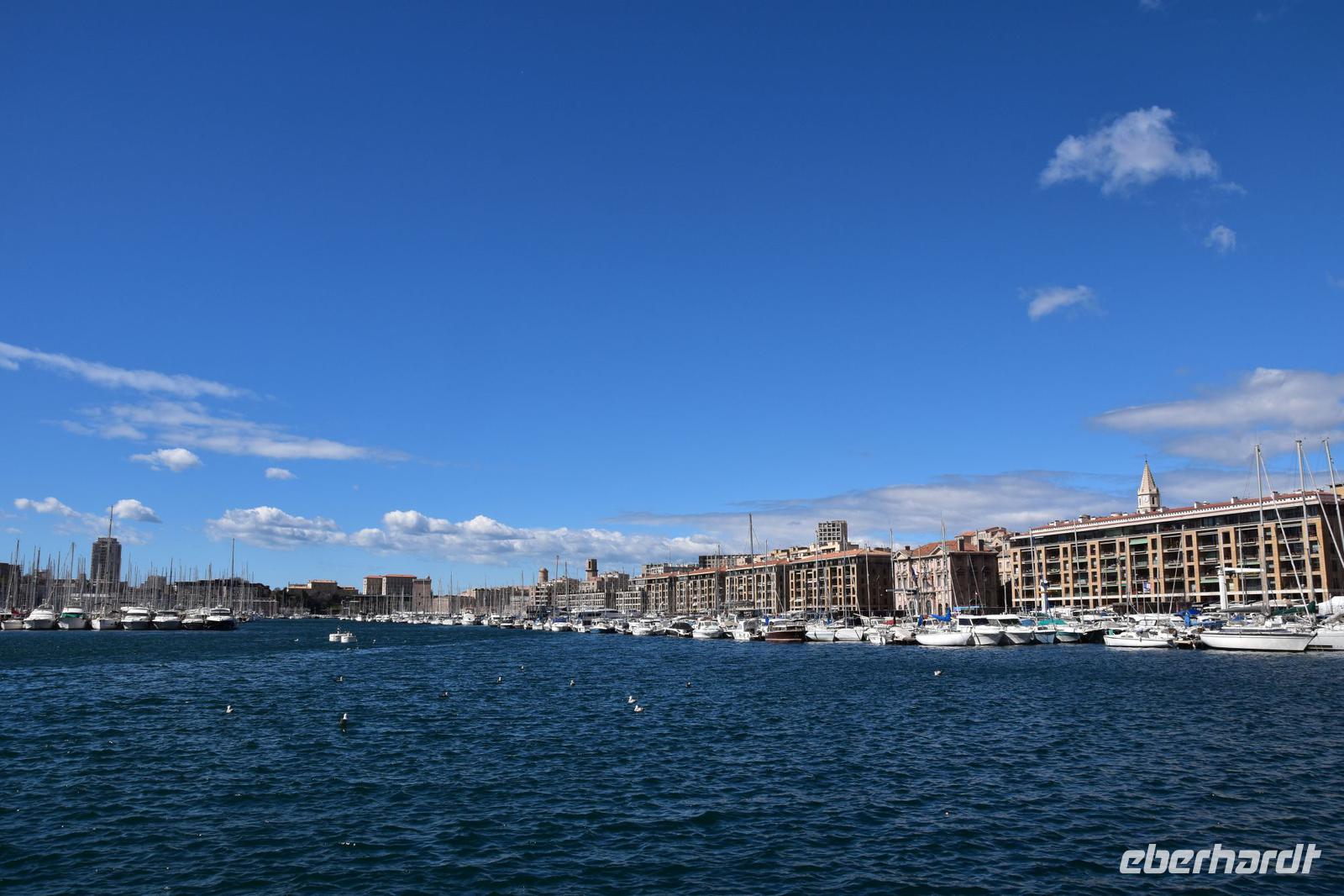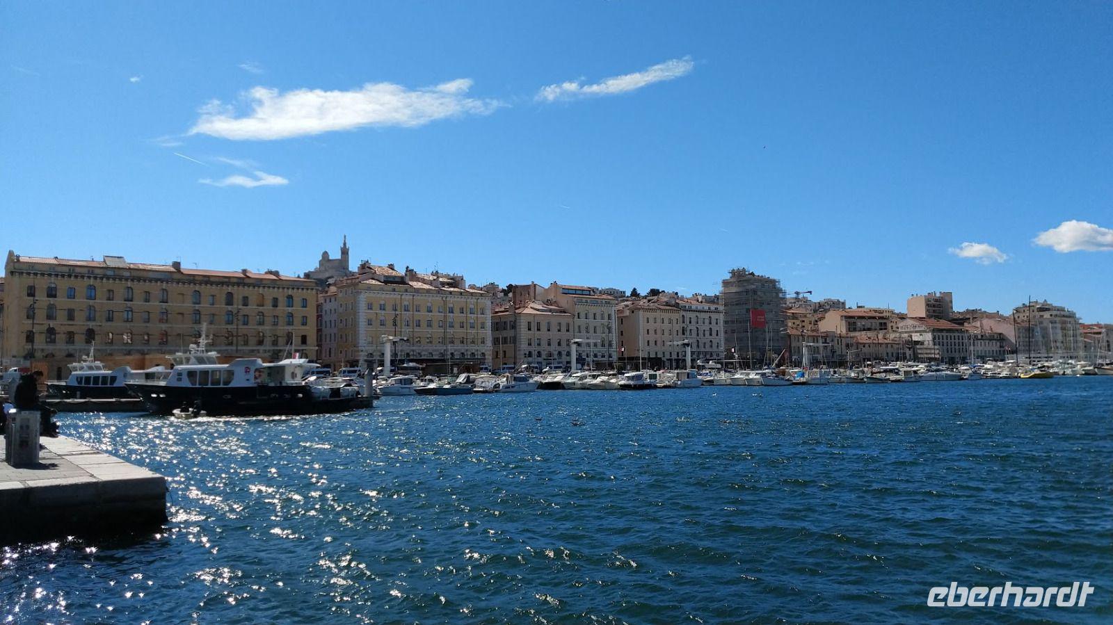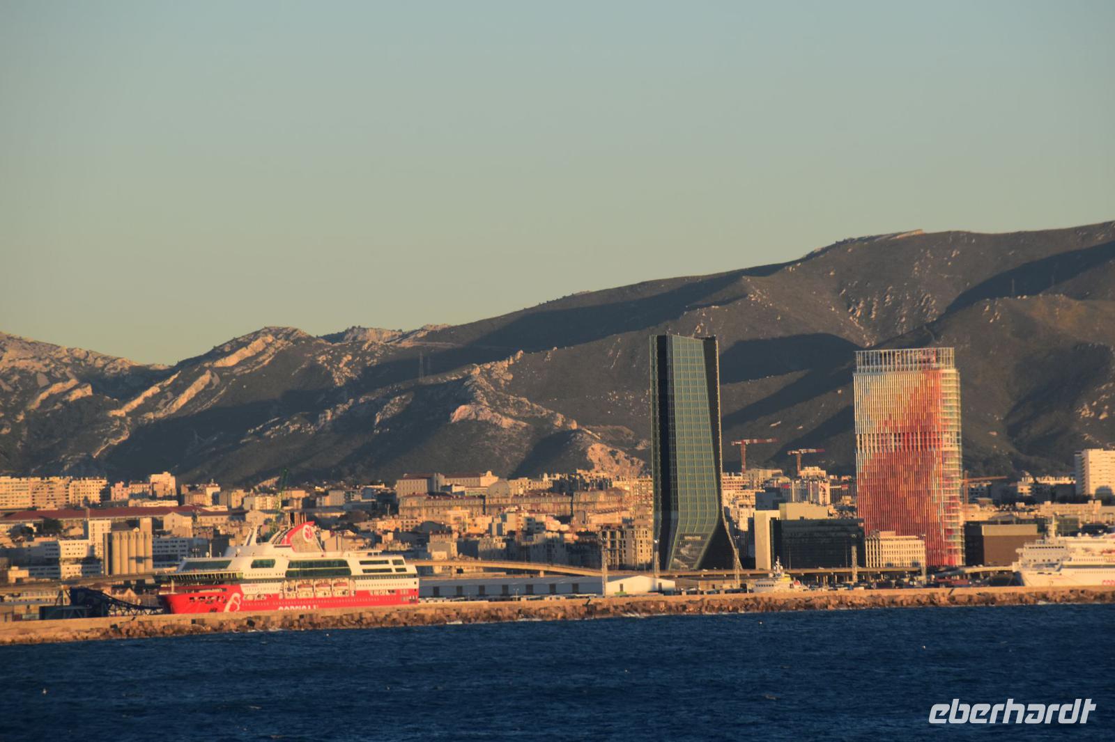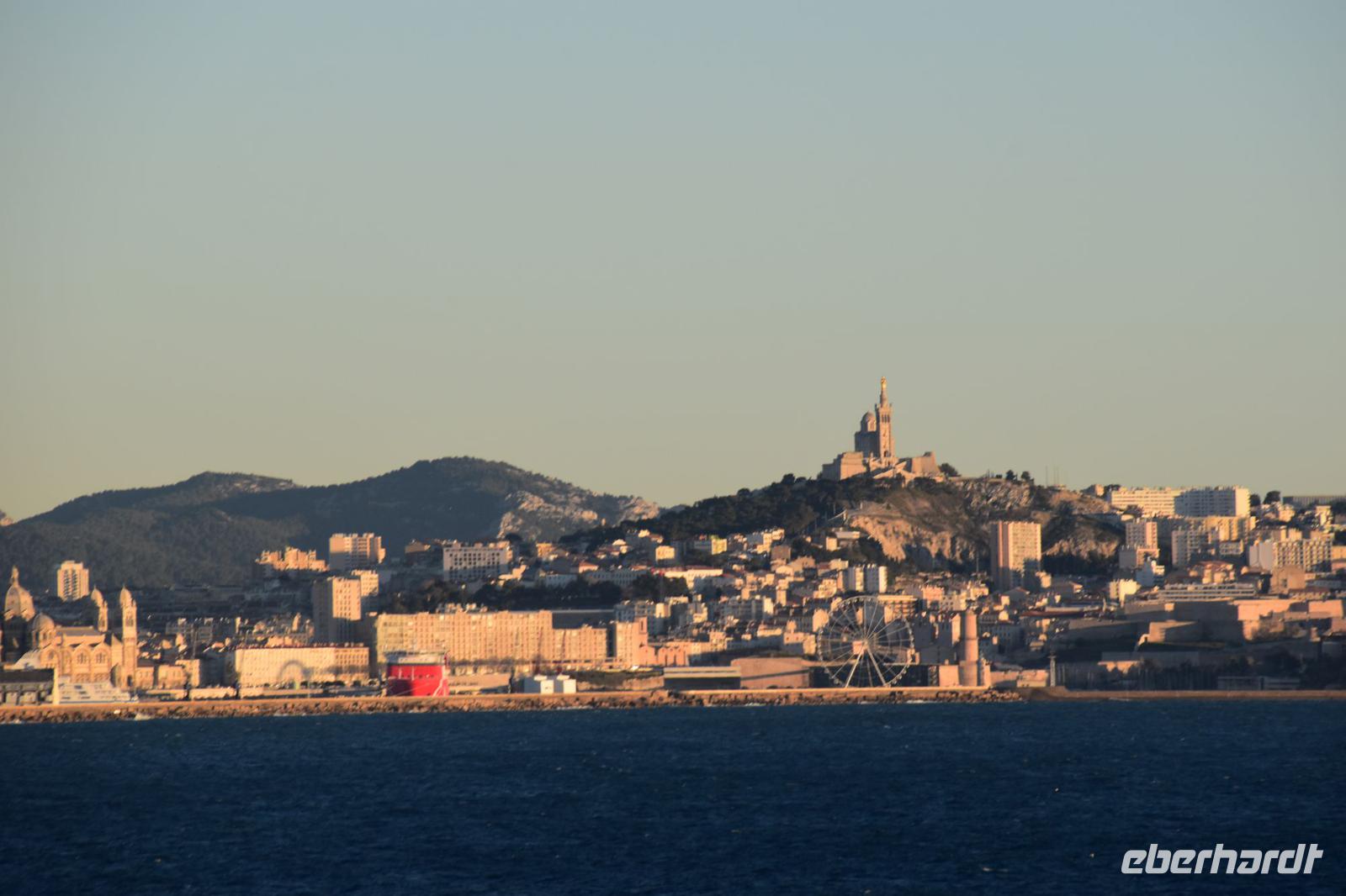 Bei ruhigem Wetter und Sonnenschein fahren wir in die weite Bucht von Marseilles ein und machen im neuen Kreuzfahrthafen fest.
