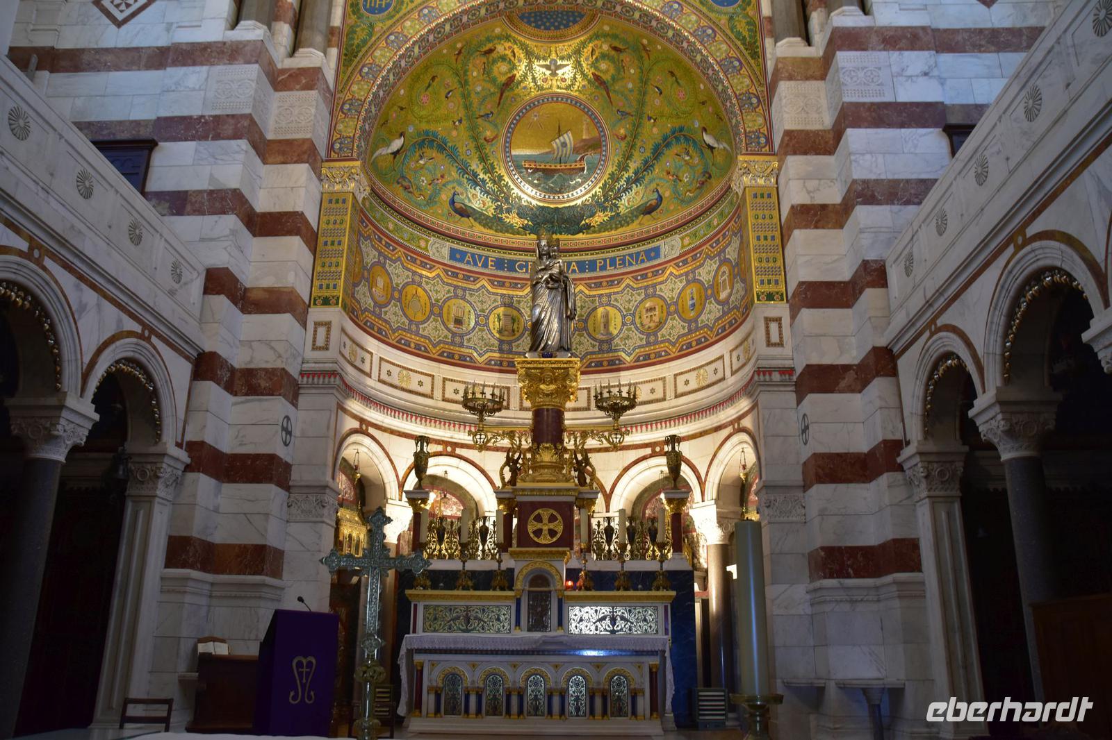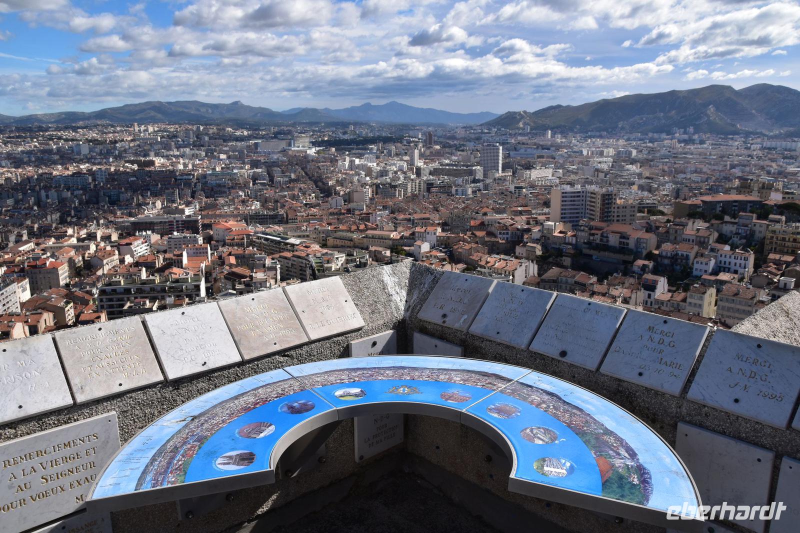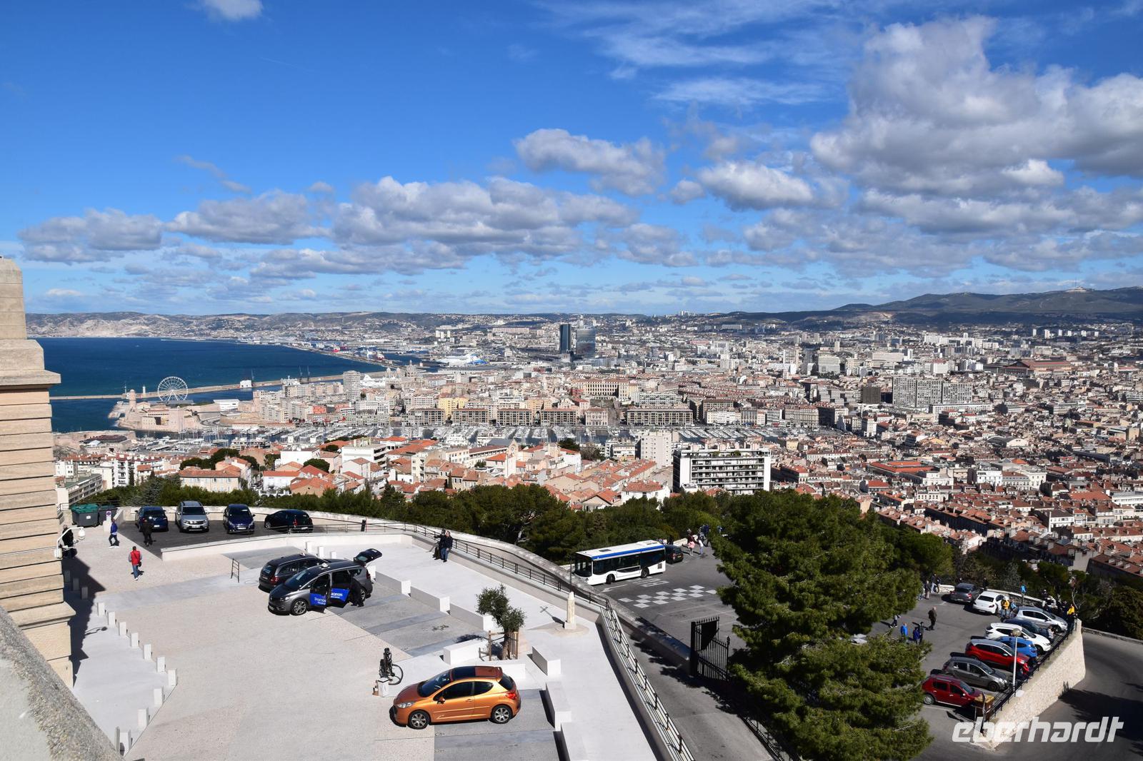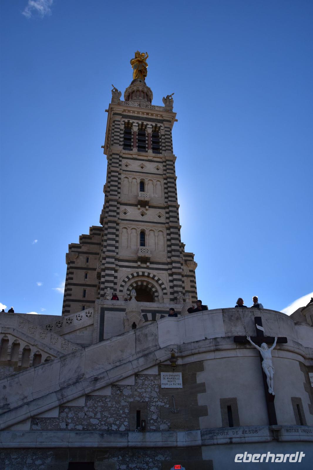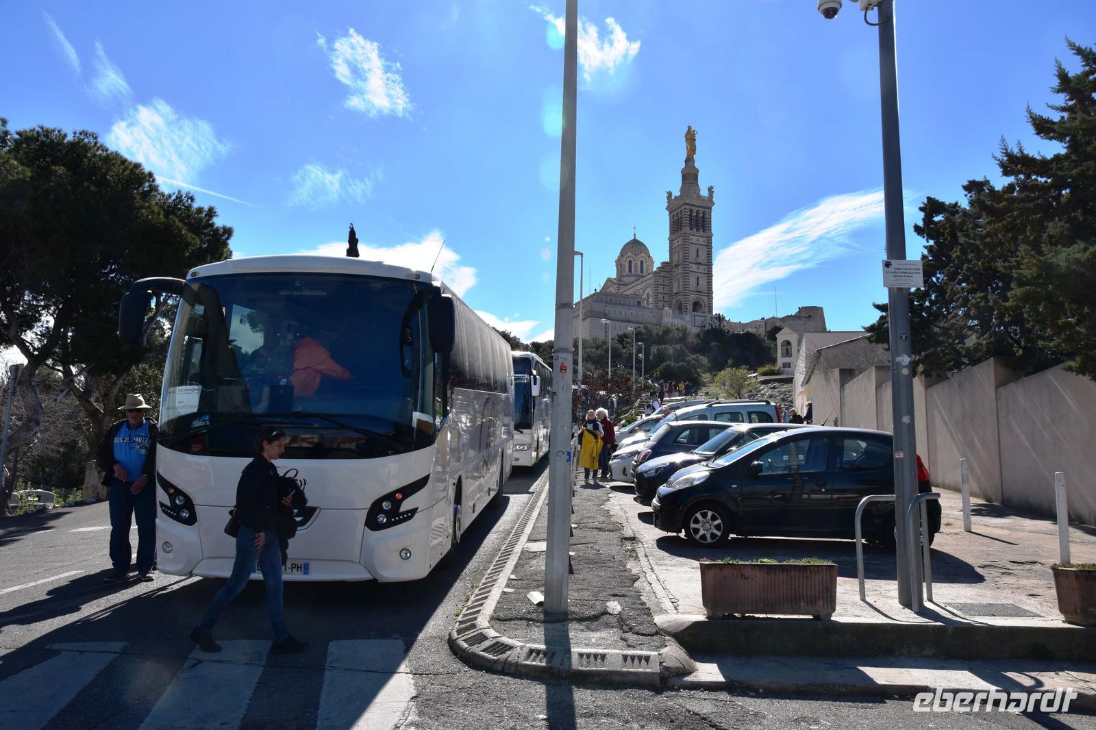 Attraktion des Trips ist aber der Besuch des Wahrzeichens von Marseille , der Kirche Notre-Dame-de-la-Garde und die Aussicht von dem Hügel, von dem aus dieses Bauwerk aus alles überragt.