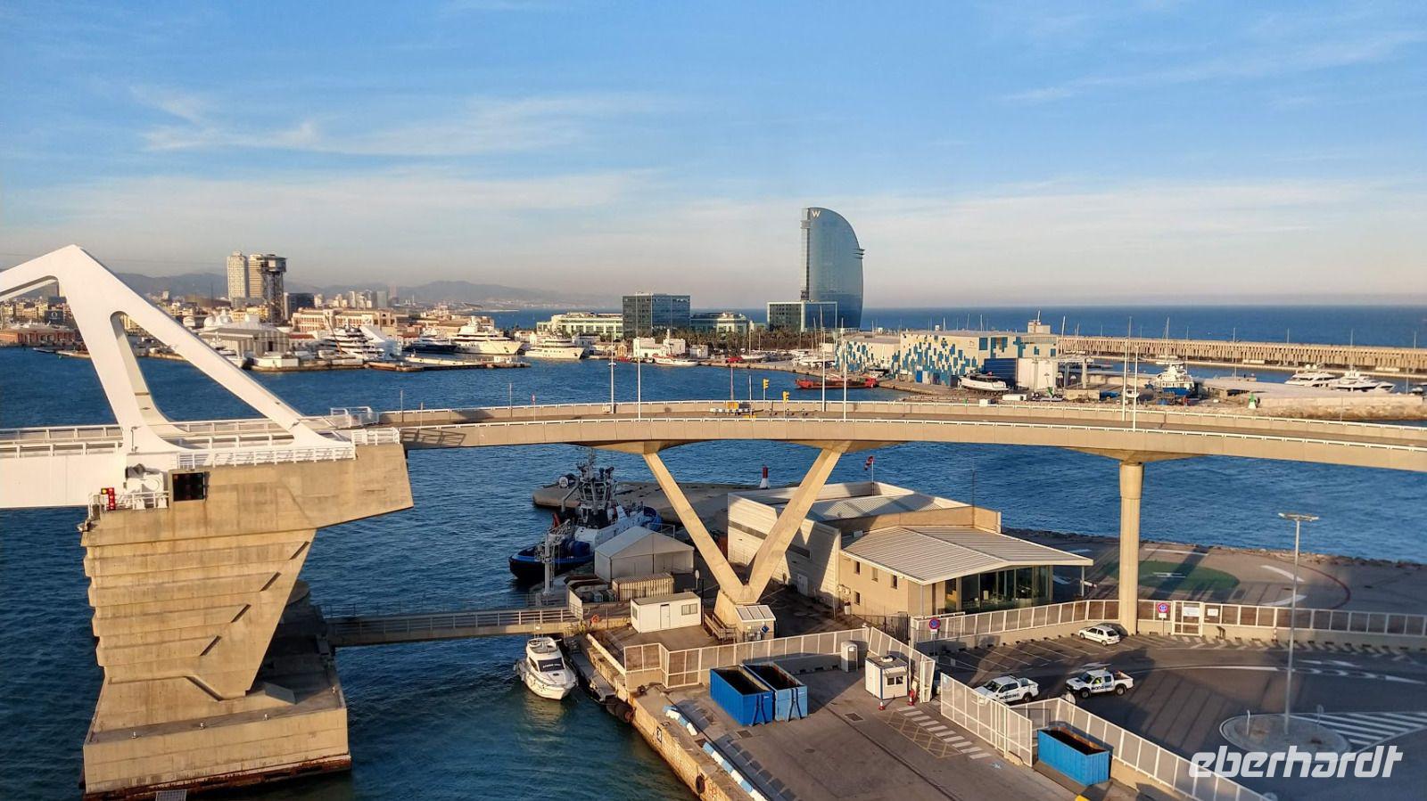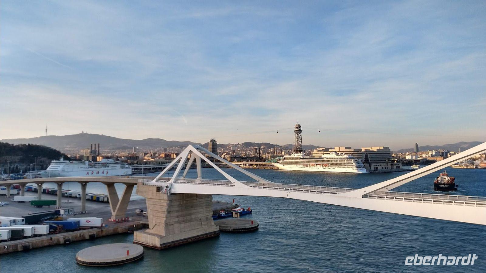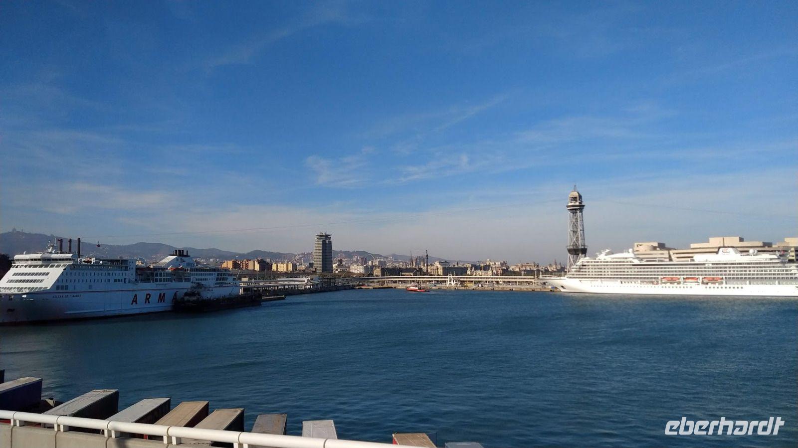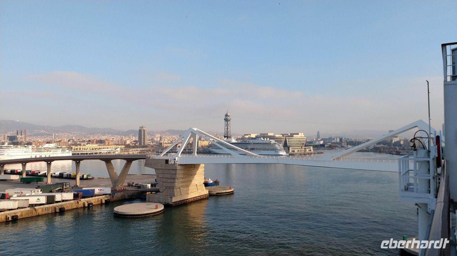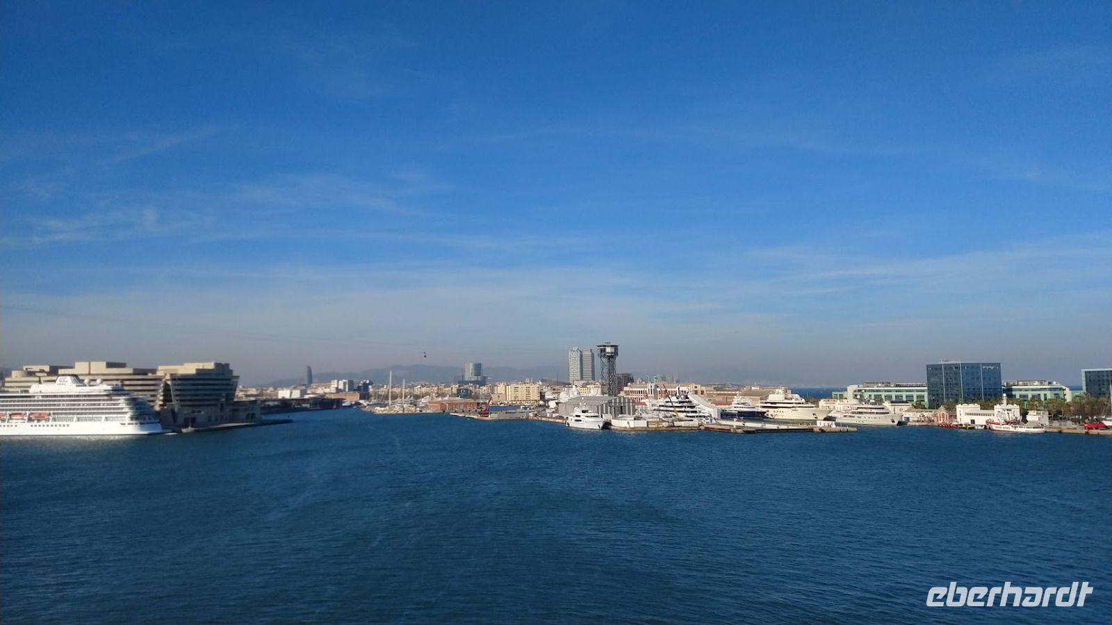 Die Sonnen scheint, es ist angenehm warm und der in leichtem Dunst sichtbare Küstenstreifen kommt immer näher. Schon zeichnen sich die Umrisse der Hochhäuser um den Hafen von Barcelona deutlich ab.