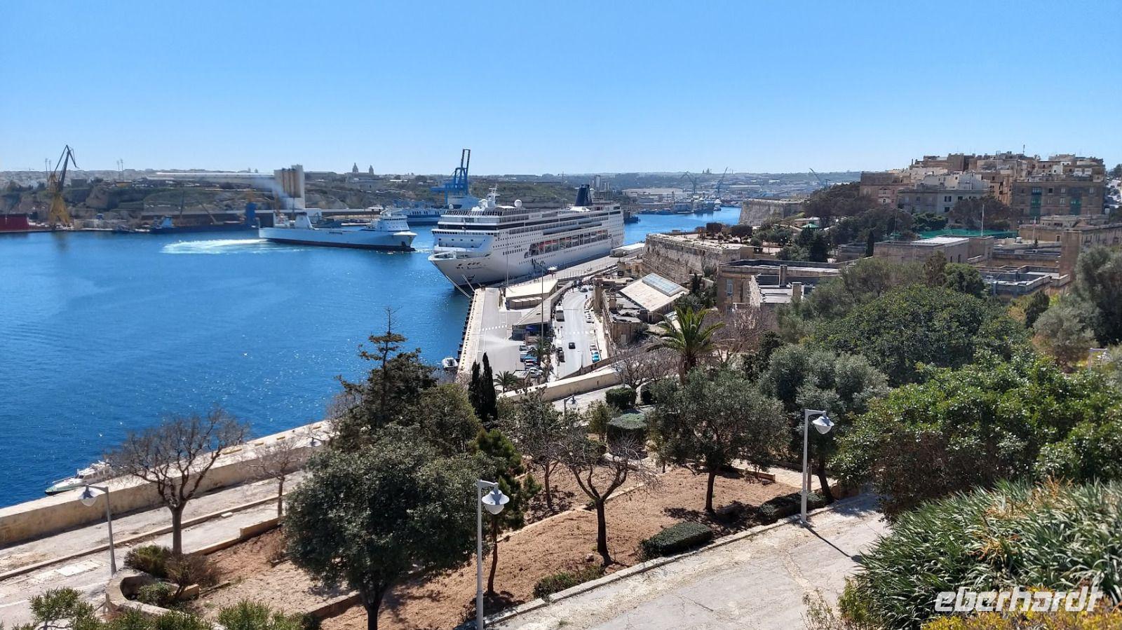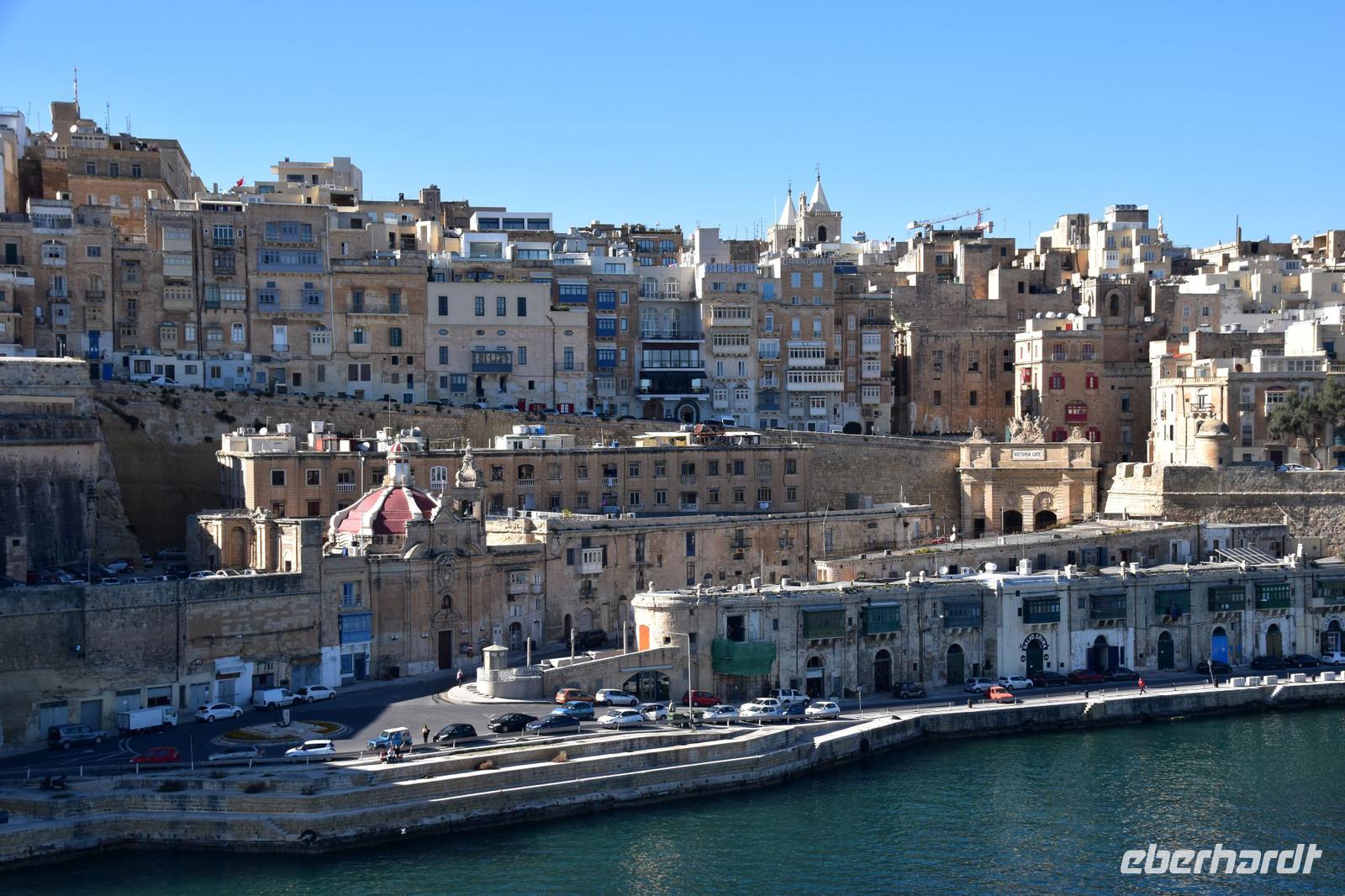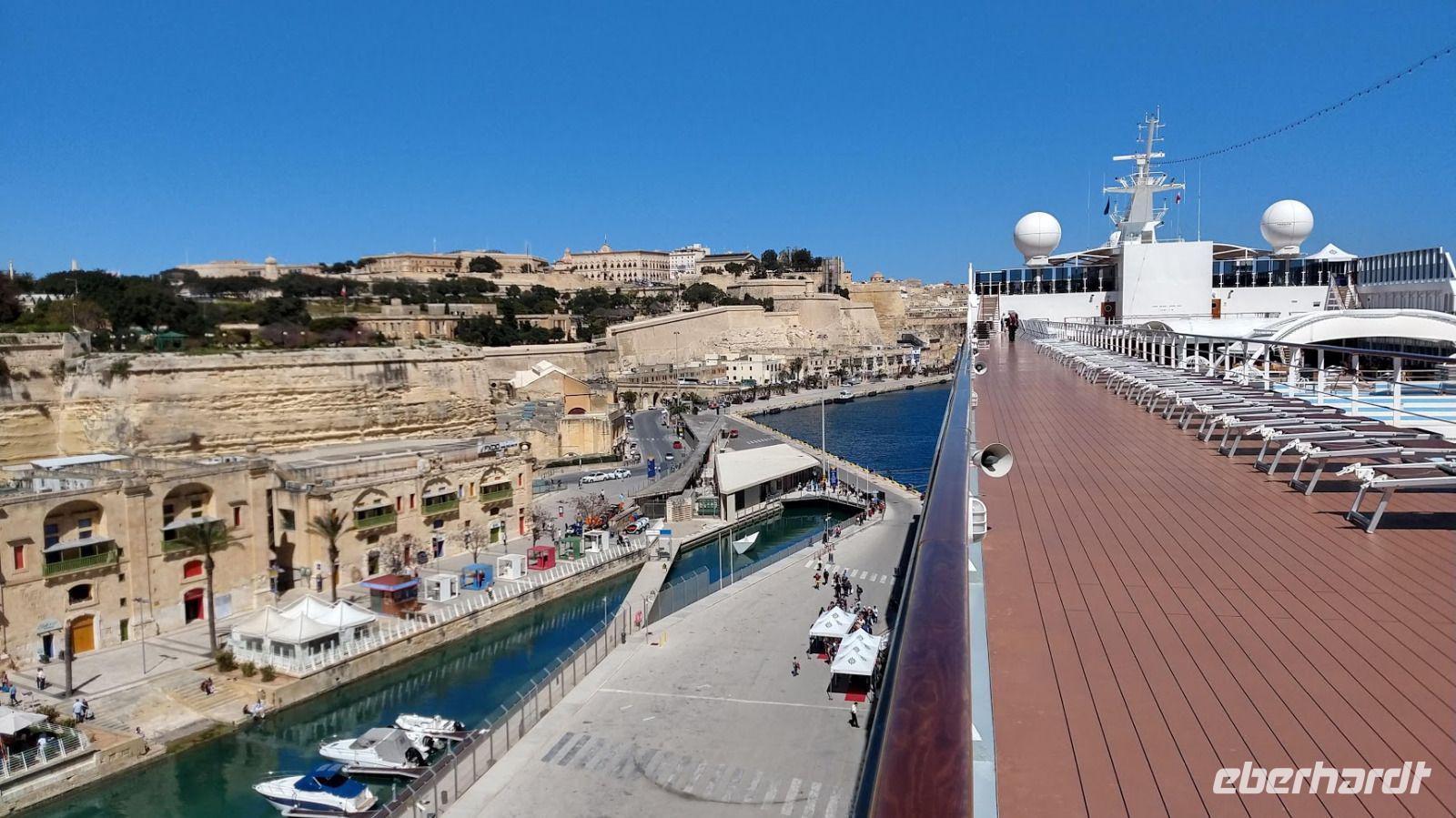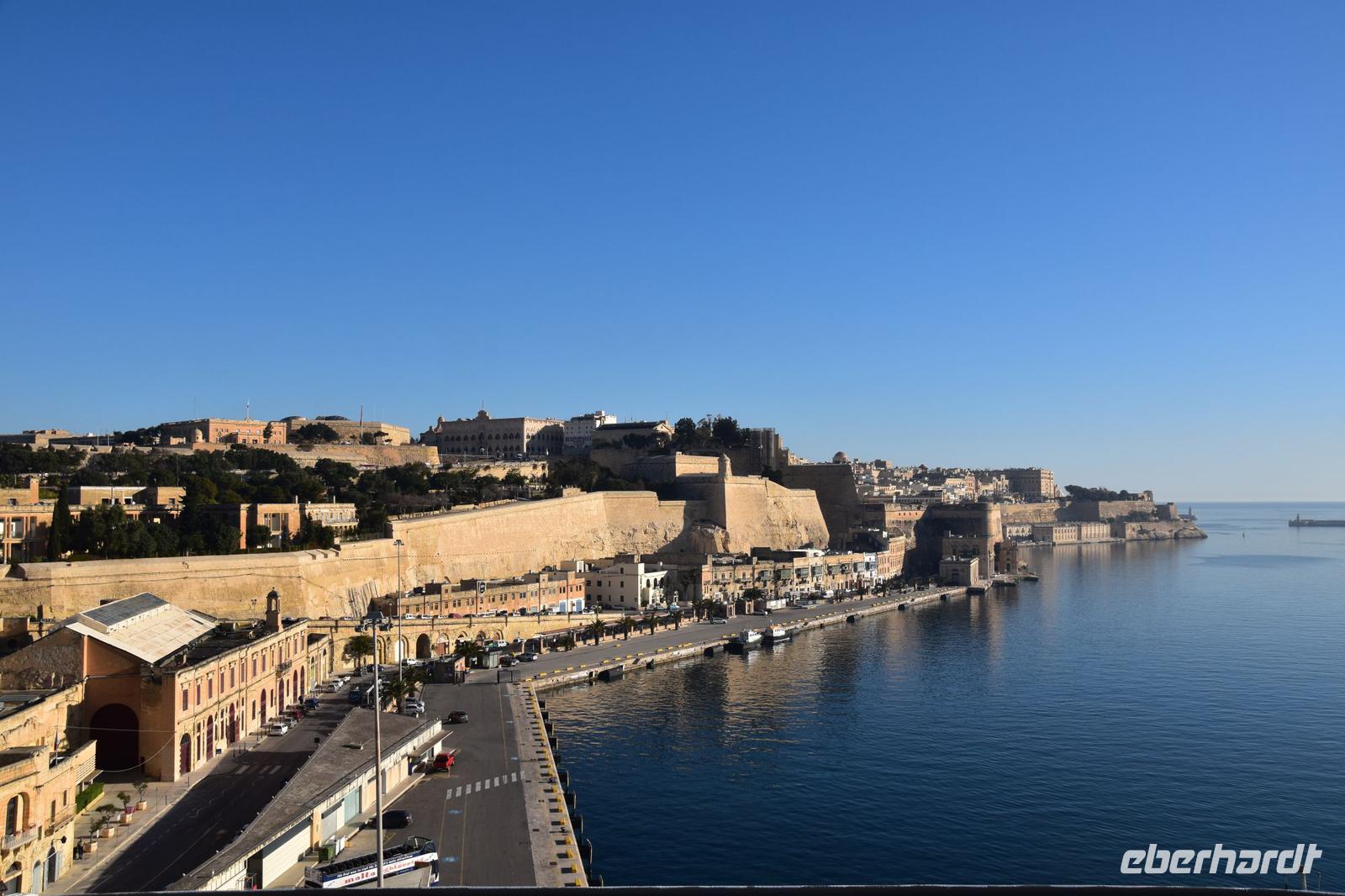 Um 08:00 Uhr machen wir unter den Befestigungsmauern von La Valletta, der Hauptstadt von Malta fest. Die gesamte Stadt ist UNESCO-Weltkulturerbe.