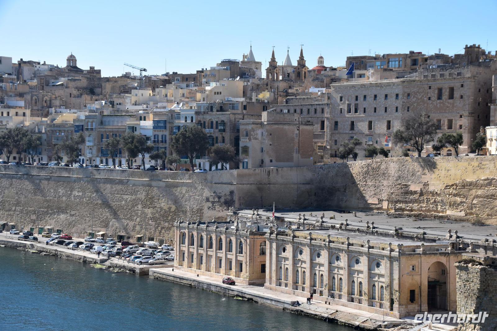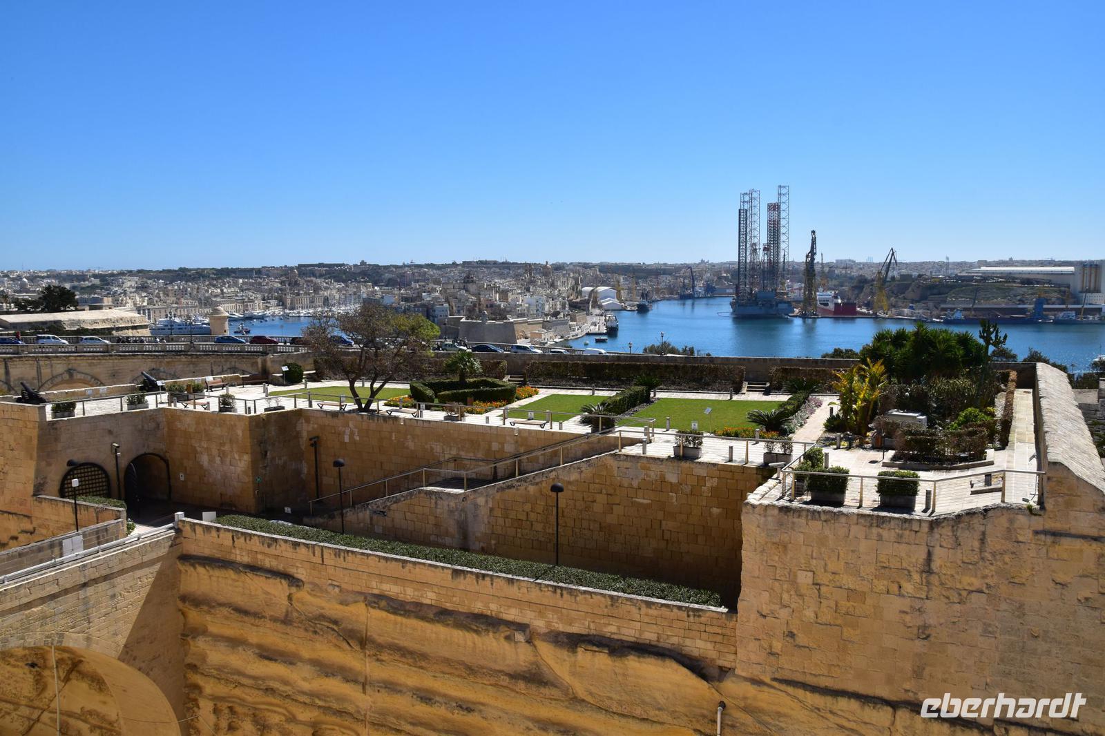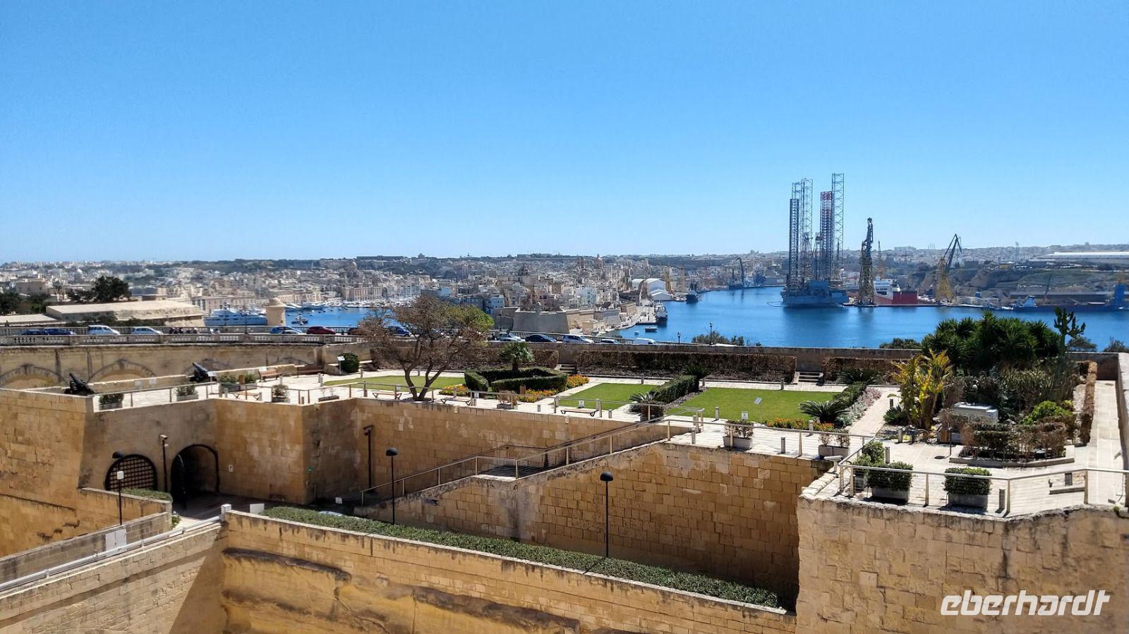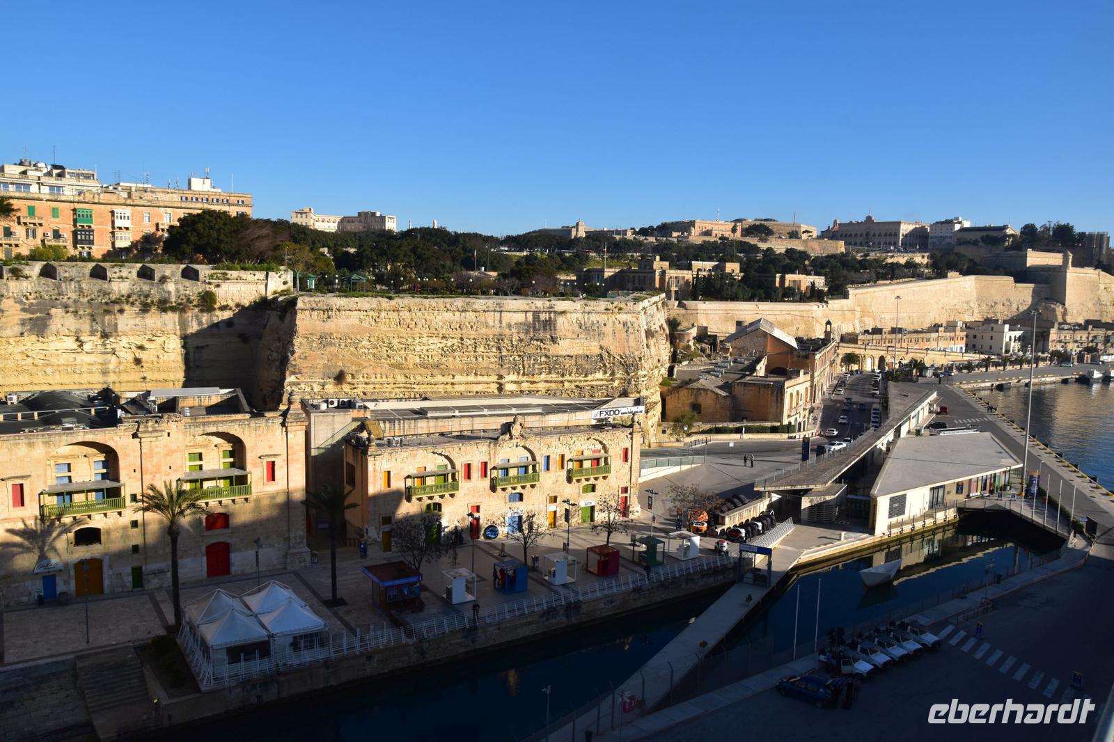 Um 08:00 Uhr machen wir unter den Befestigungsmauern von La Valletta, der Hauptstadt von Malta fest. Die gesamte Stadt ist UNESCO-Weltkulturerbe.