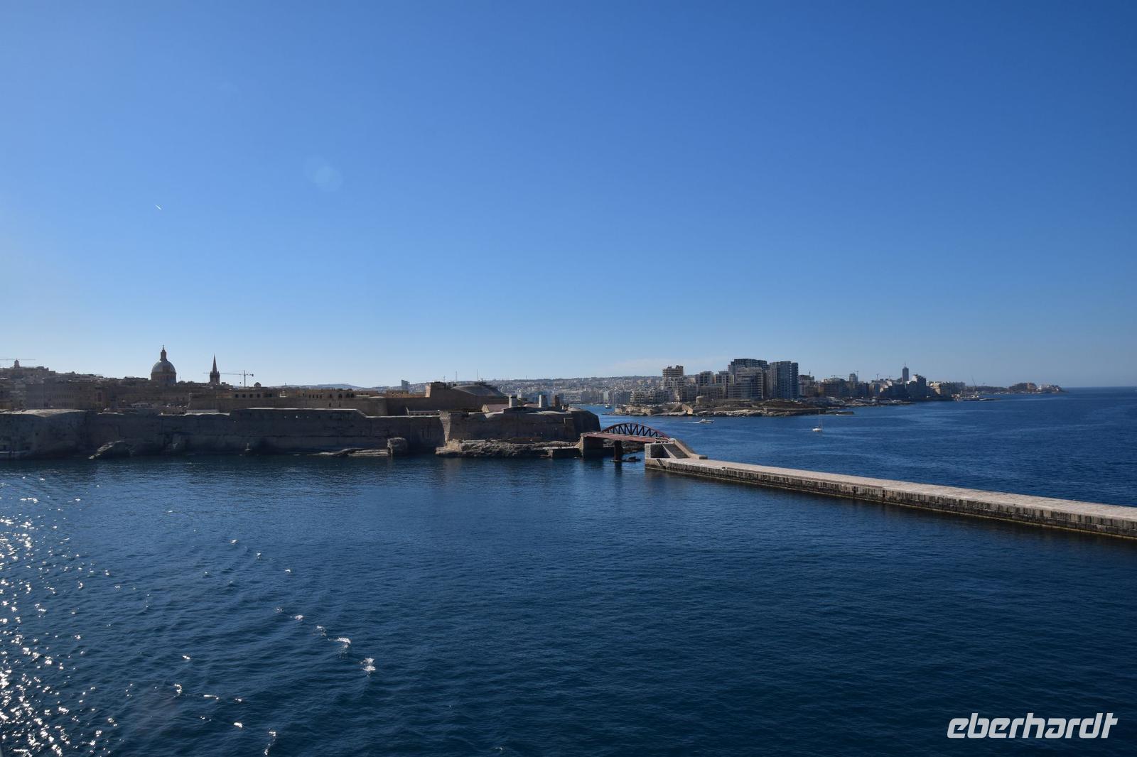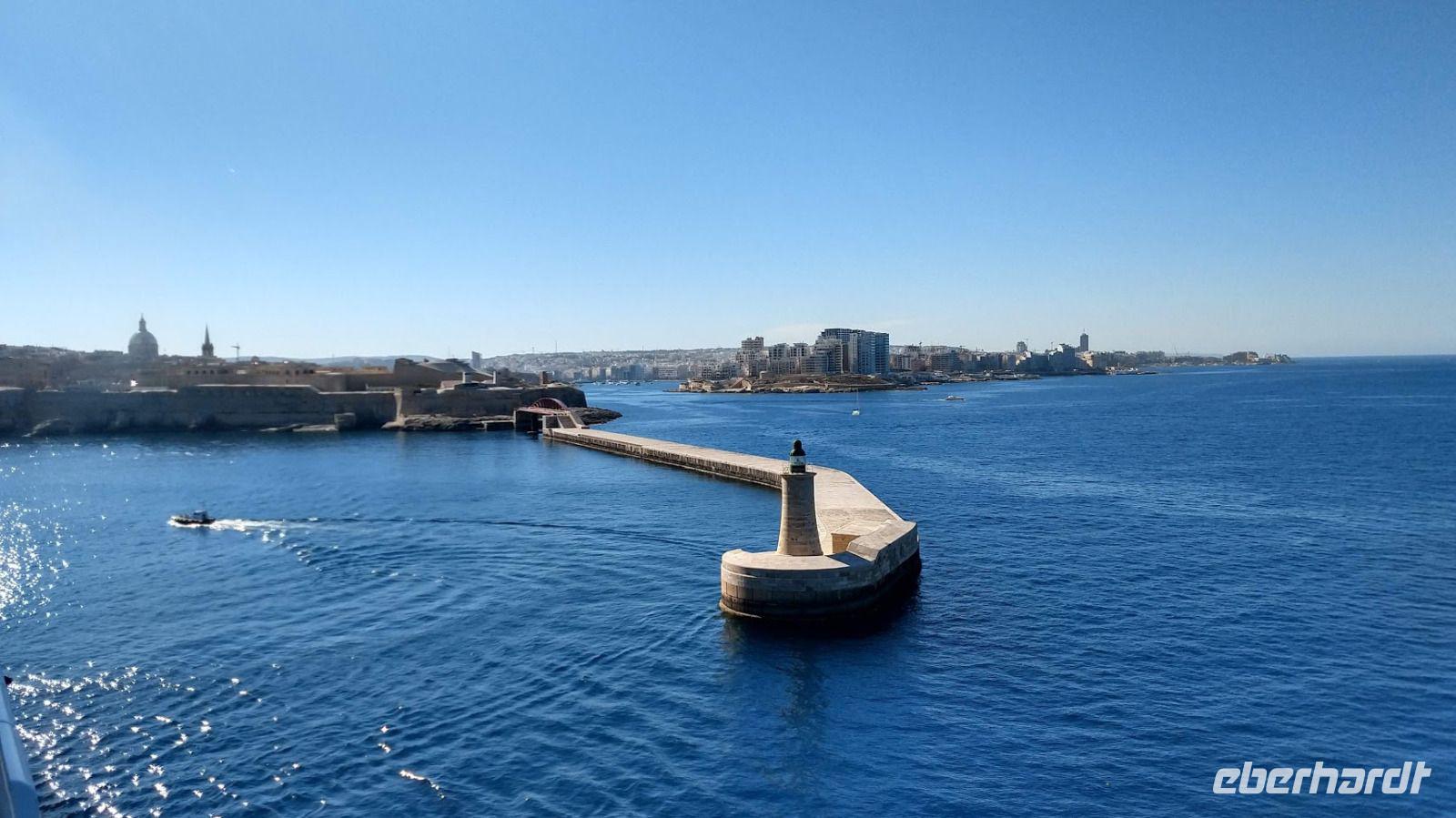 Die Ausfahrt im Sonnenschein, bei der man nochmals die ganze Altstadt an sich vorüberziehen sieht, ist ein abschließend tolles Erlebnis des Besuchs von Malta.