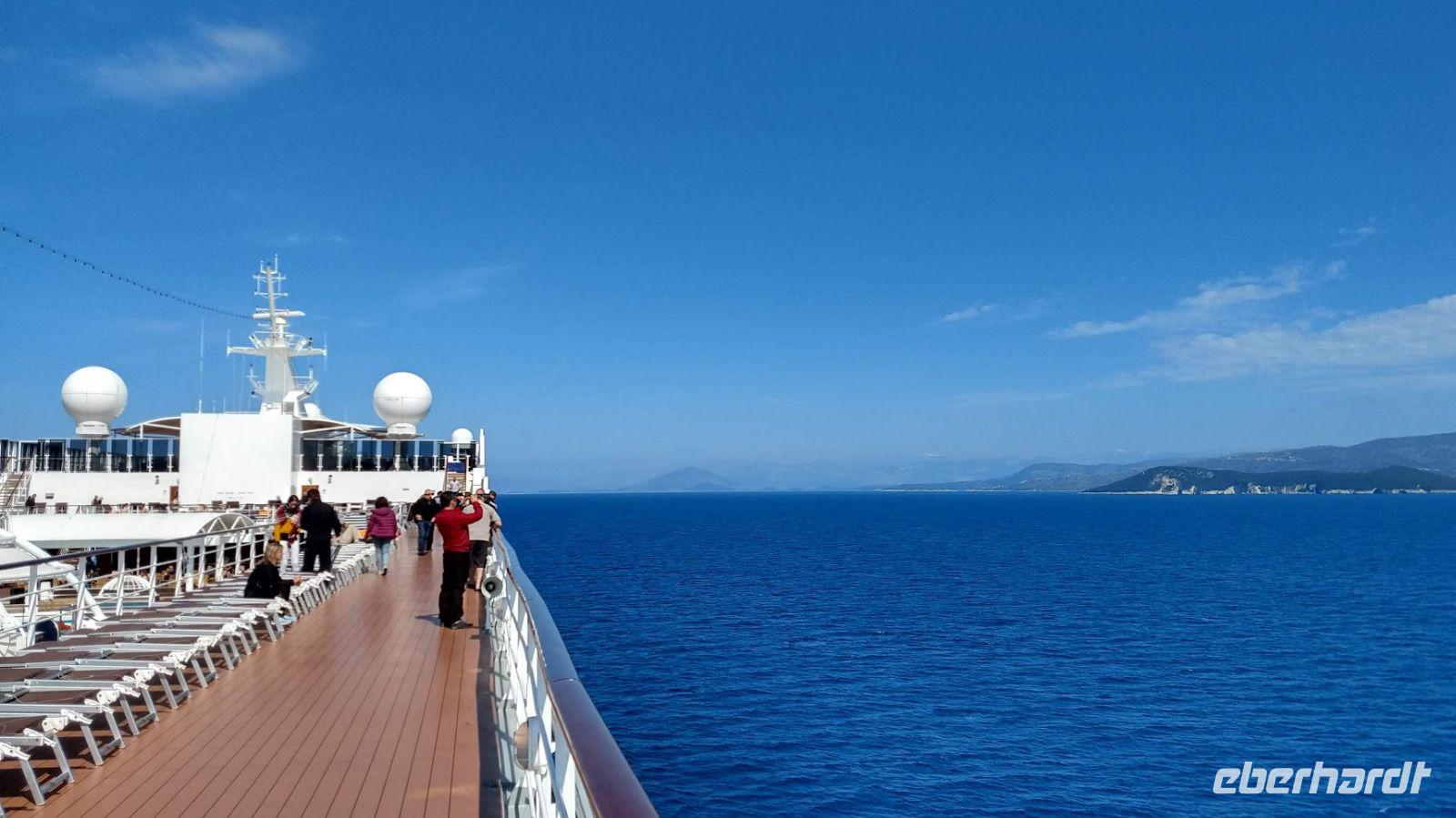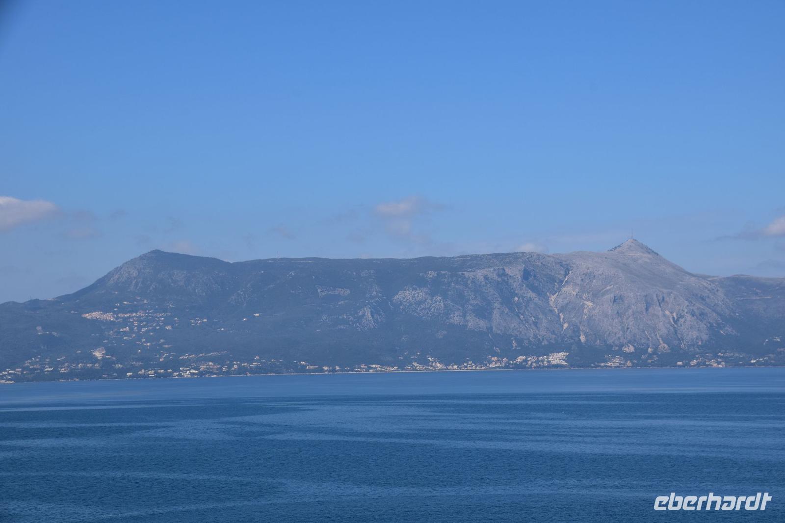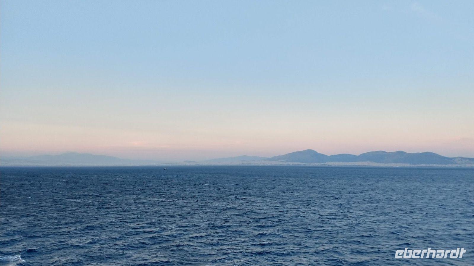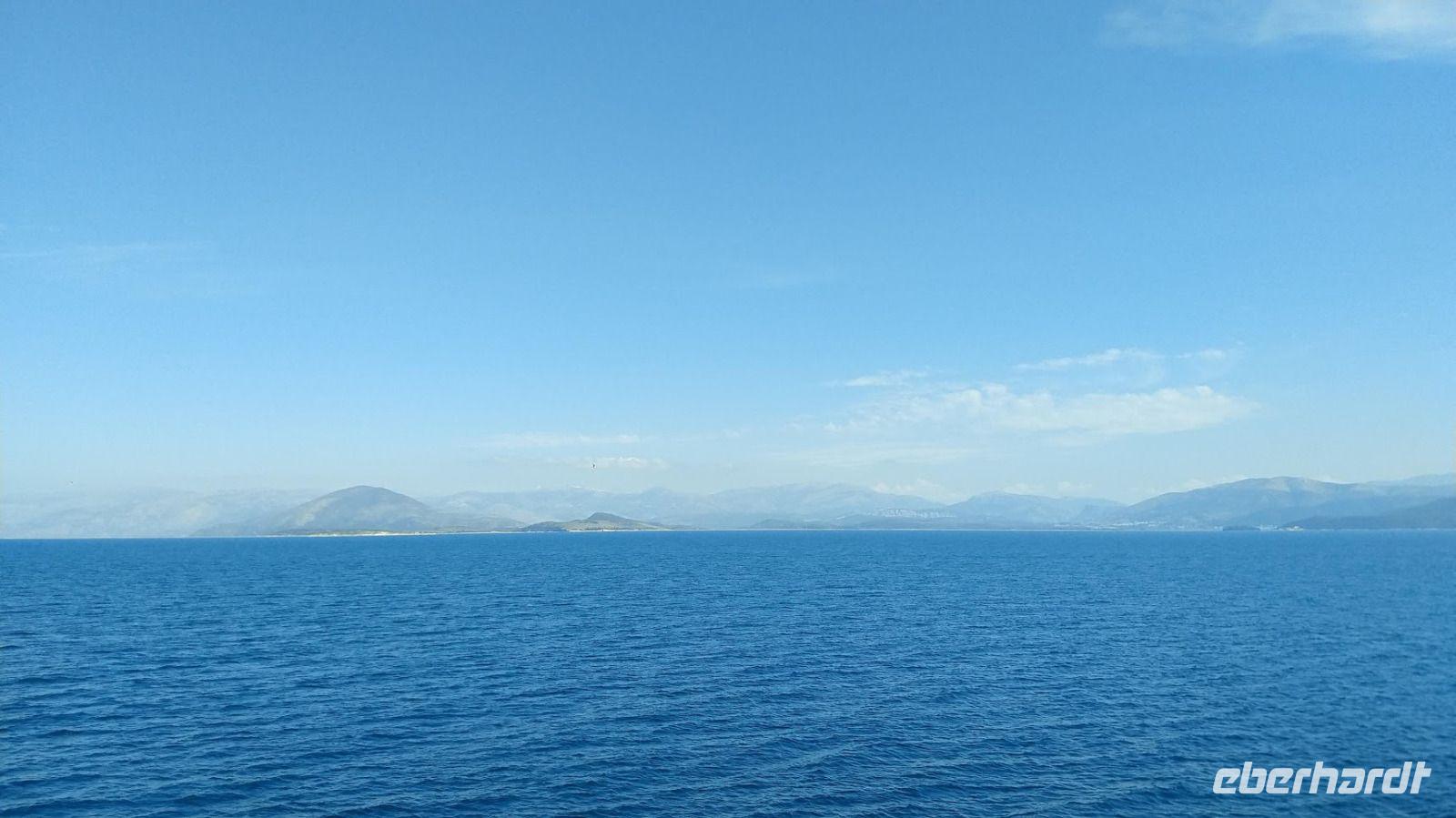 Im Laufe des Vormittages erreichen wir die Ionischen Inseln und somit den Nordwesten Griechenlands. Die 2000er der griechischen und albanischen Gebirge leuchten mit ihren Schneekappen am Horizont.