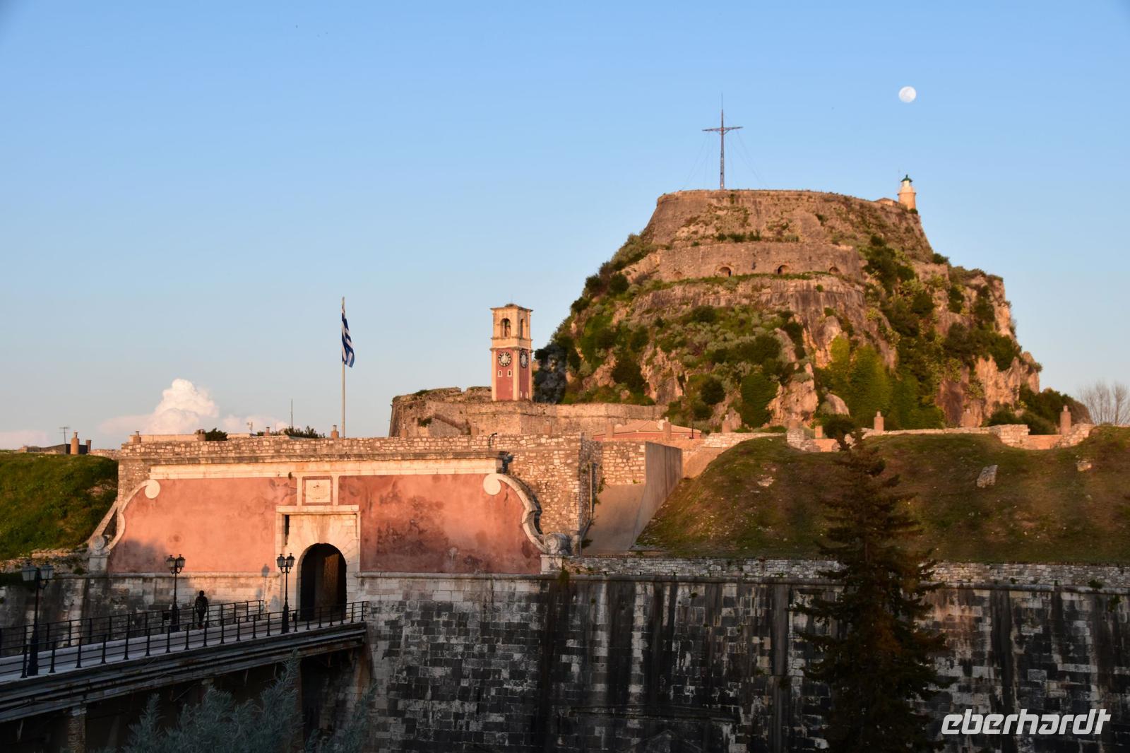 Vom Höhenrücken des 911 m hohen Pantokrator können wir über die gesamte Insel schauen. An der kleinen Hauptstadt Korfu ist vor allem die alte Venezianische Festung und auch die venezianisch geprägte Altstadt sehenswert.