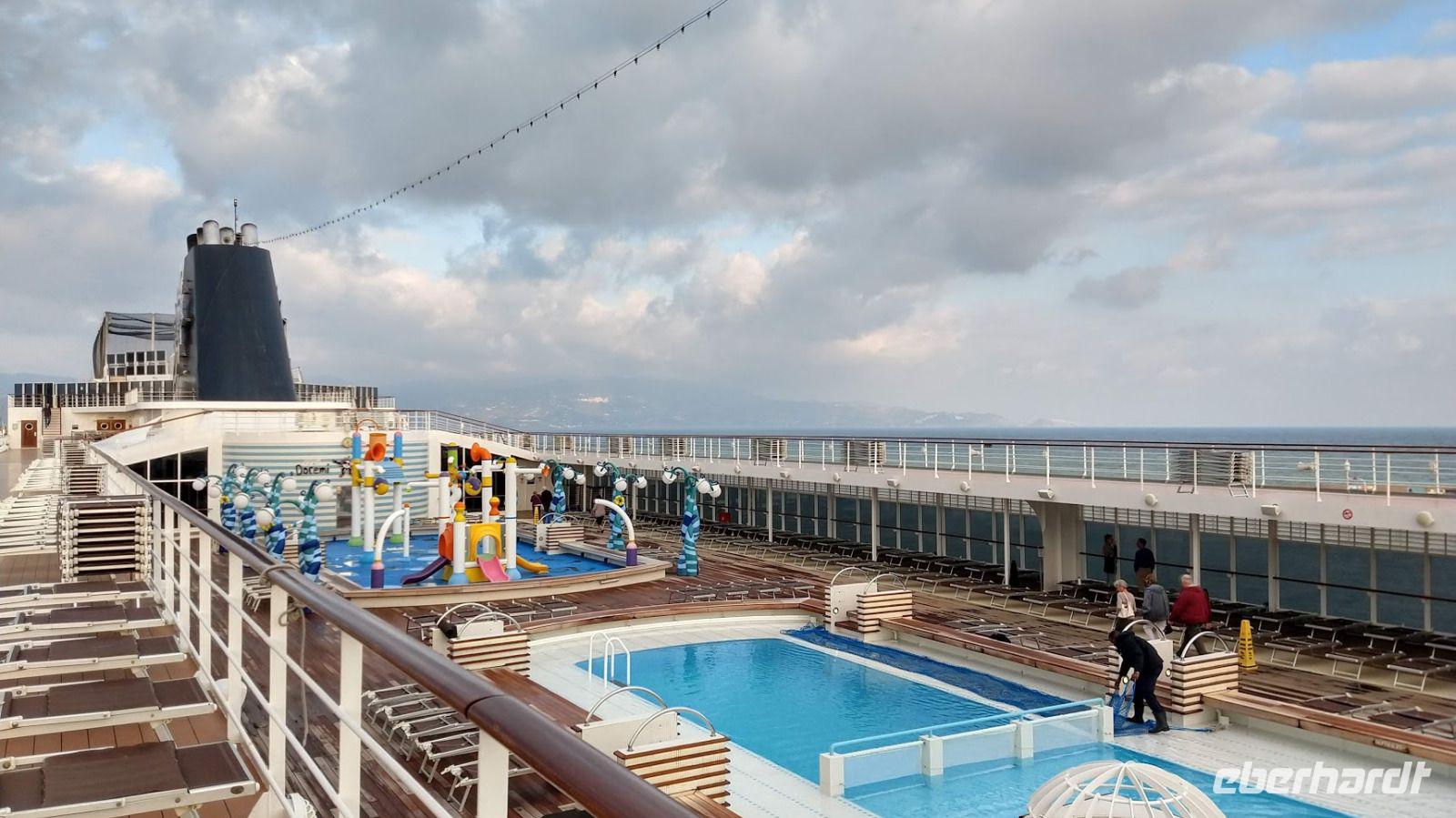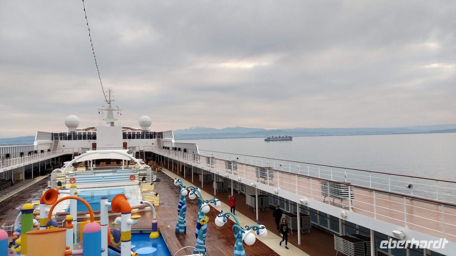 Heute können wir aber die Seele baumeln lassen, einmal ausschlafen und die Annehmlichkeiten des Kreuzfahrtschiffes genießen.