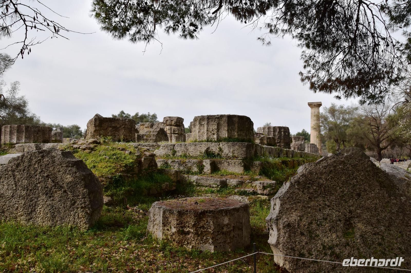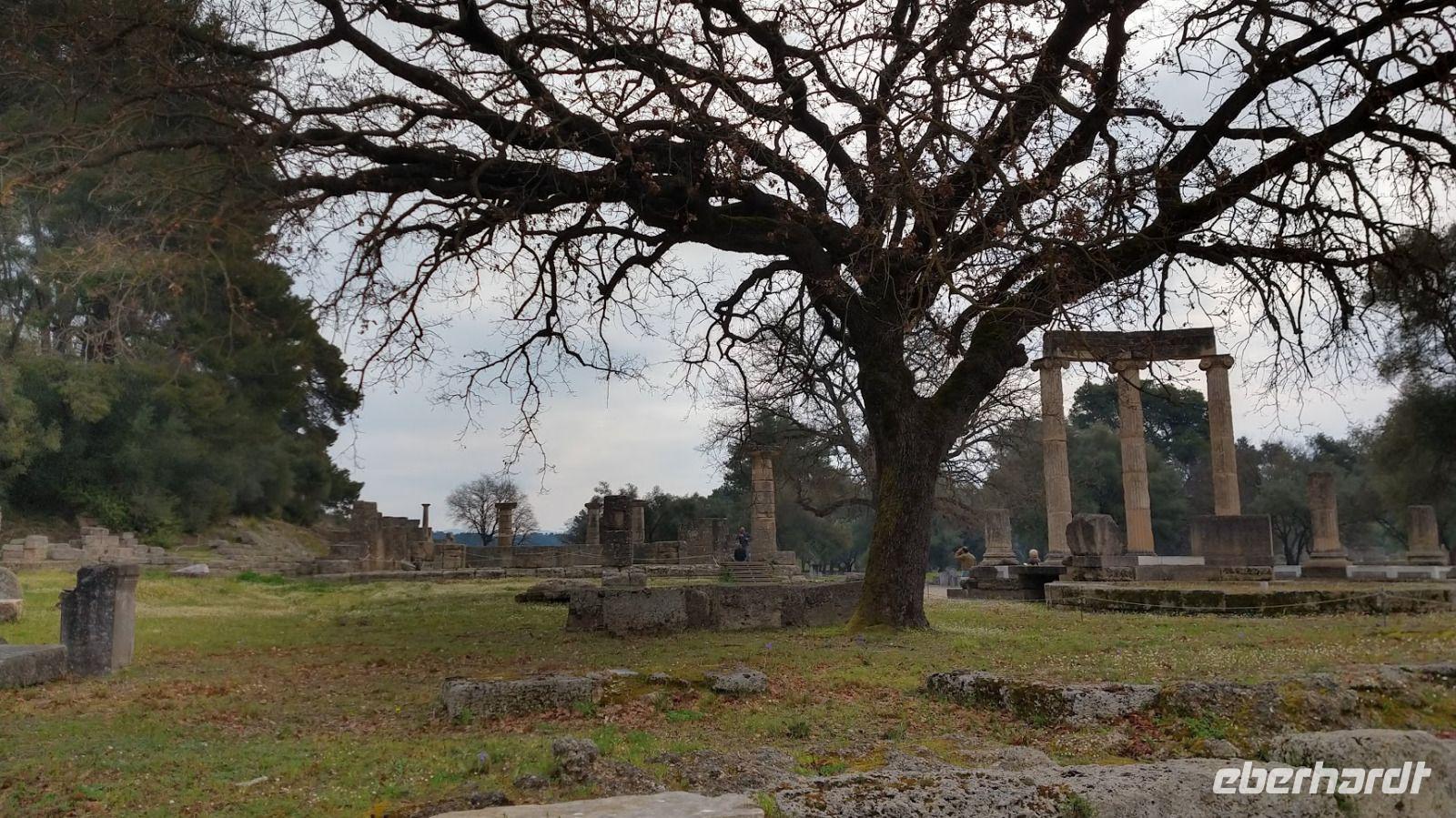 Andächtig betreten wir die Altis, den heiligen Hain von Olympia mit den zahlreichen Tempelruinen und den ehemaligen Wettkampfstätten, wie dem Stadion. Am Heratempel wird die Olympische Flamme der Spiele der Neuzeit entfacht, aber auch die Fundamente und Säulenreste des Tempels des Zeus sind beeindruckend.