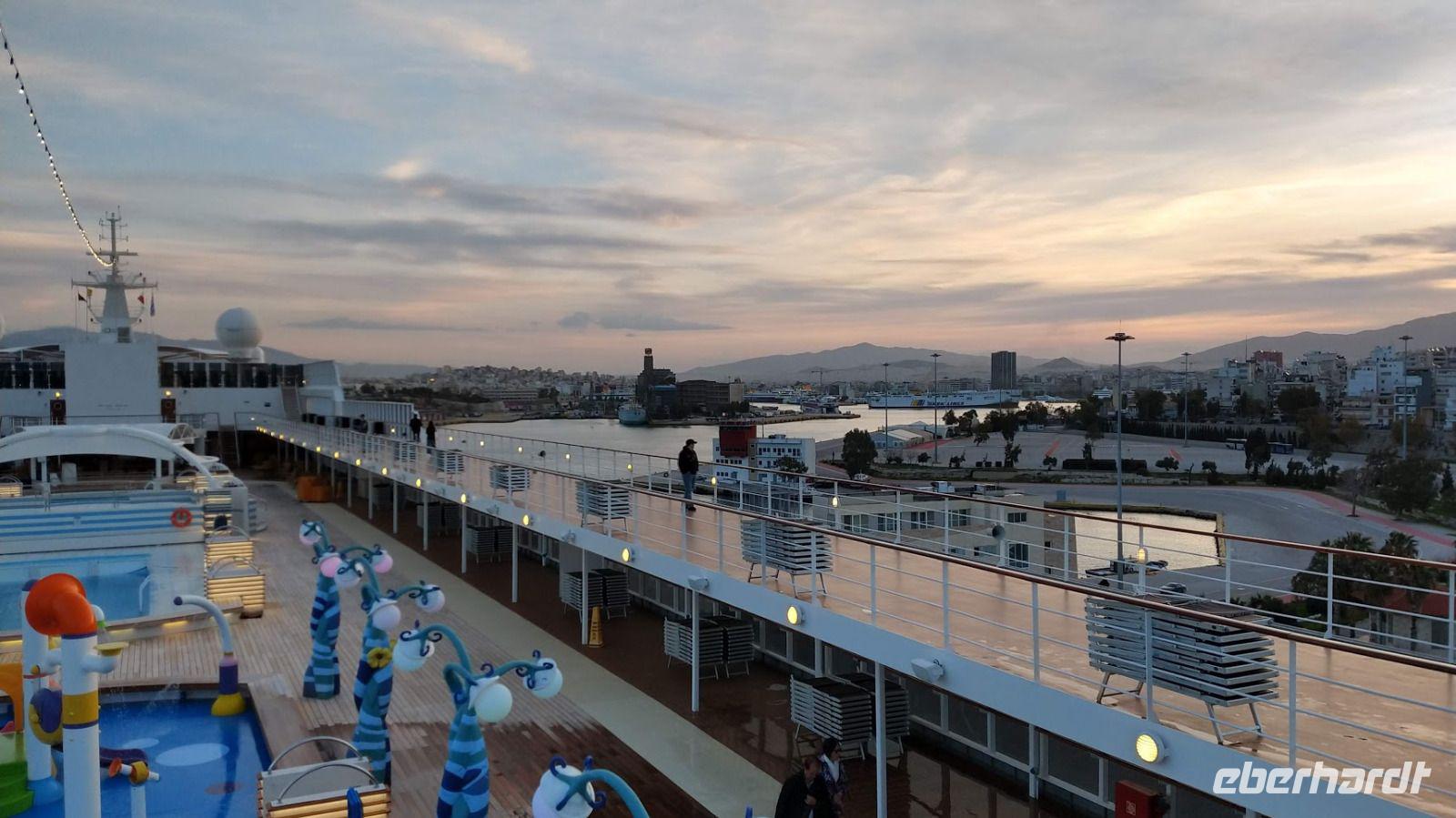 MSC hat wetterbedingt das Programm der nächsten zwei Tage getauscht und so landen wir am Morgen zuerst in Piräus, der Hafenstadt, die heute mit Griechenlands Hauptstadt Athen zusammen ein Häusermeer bildet.