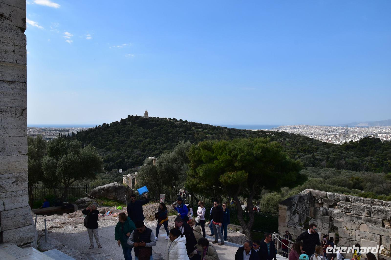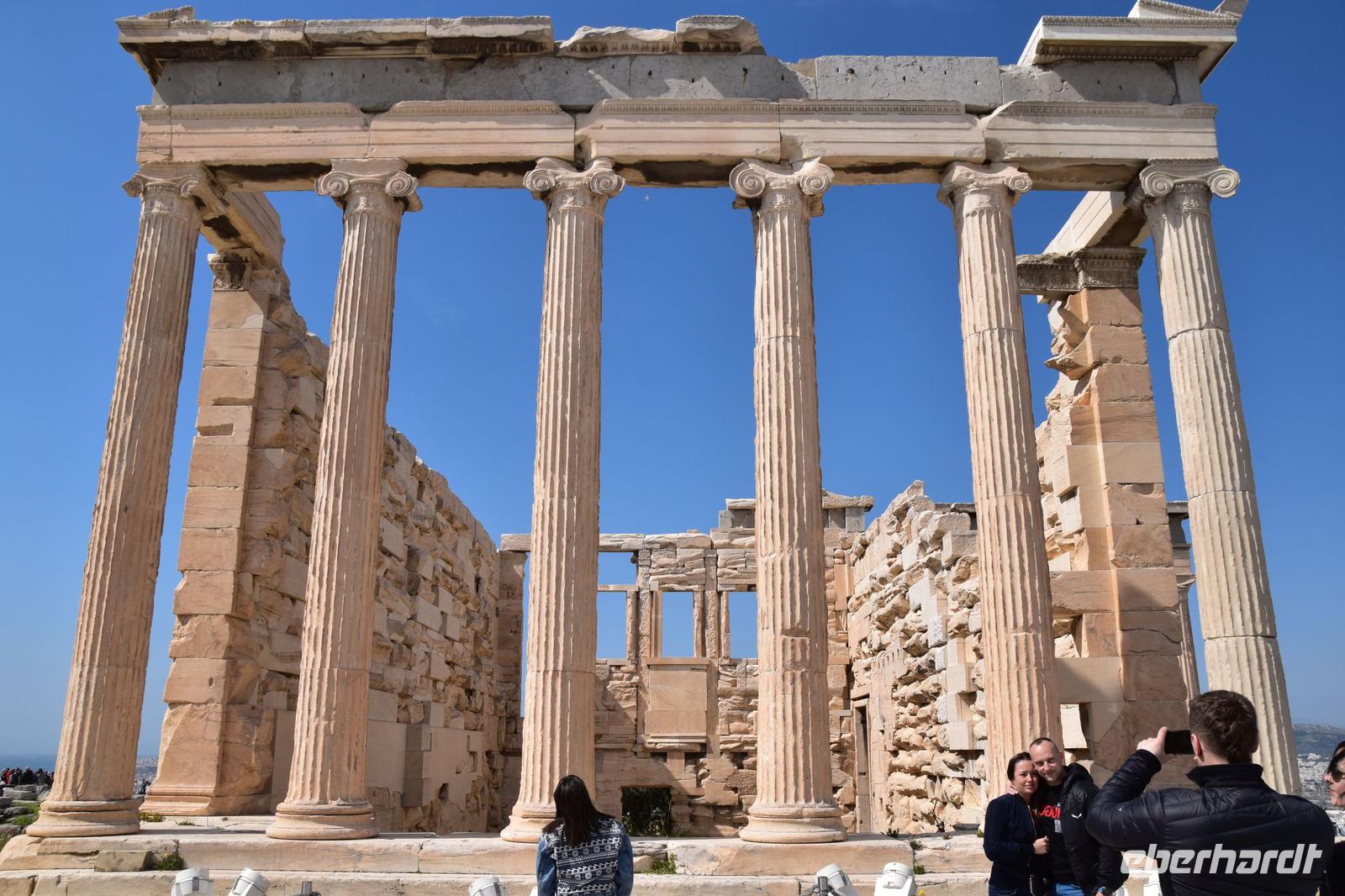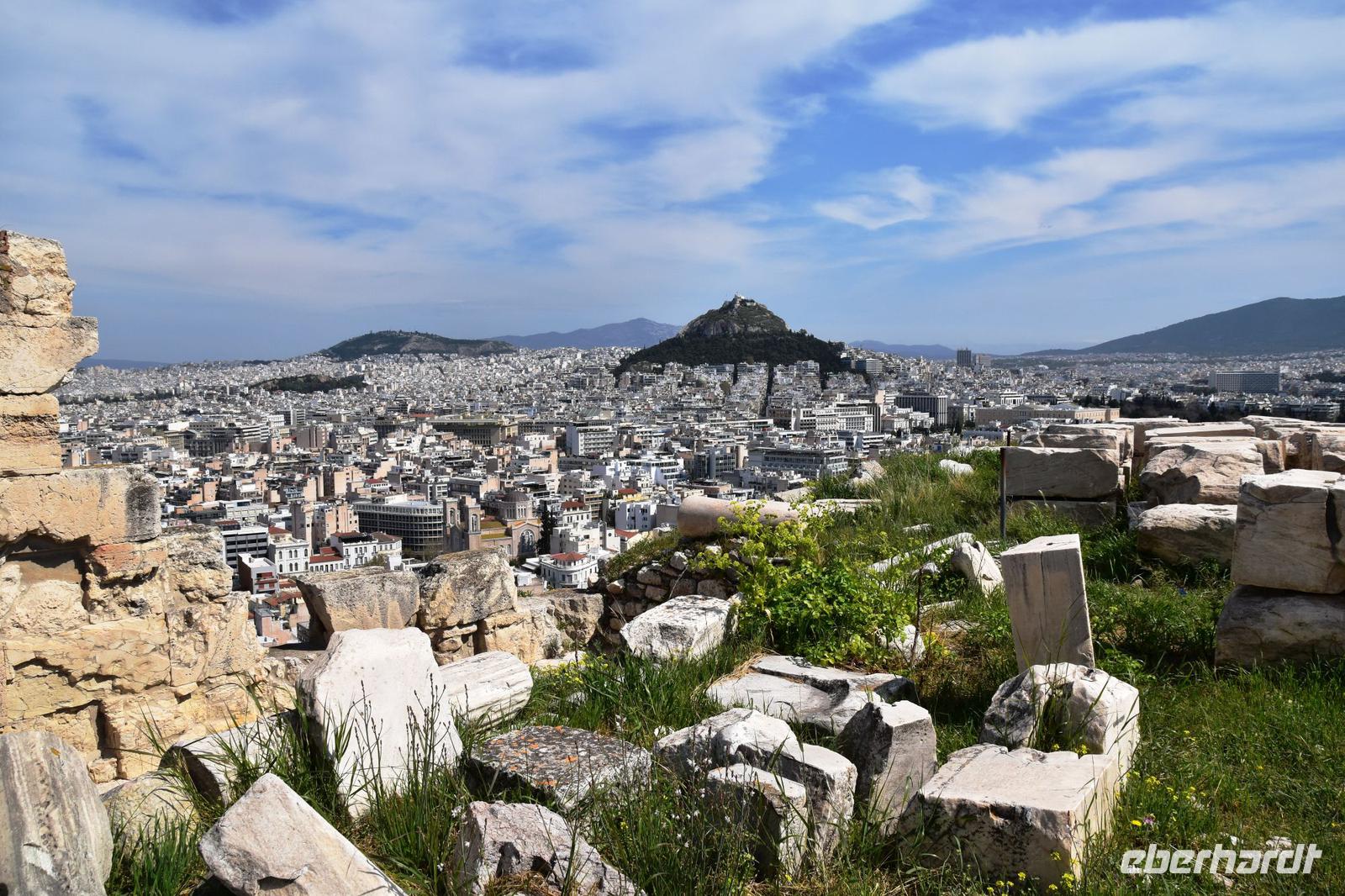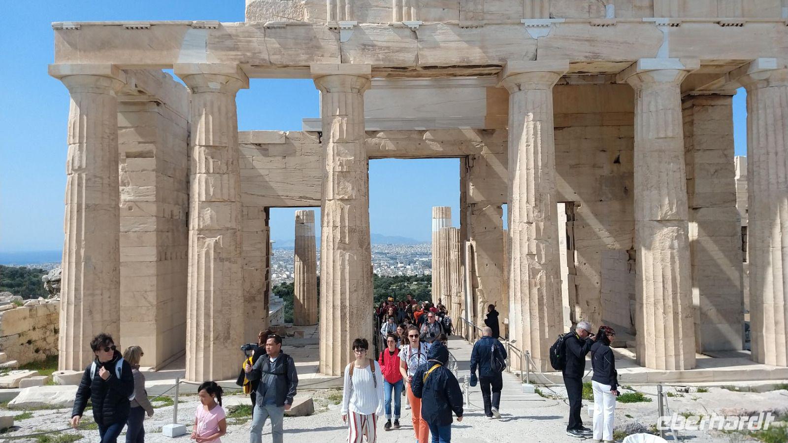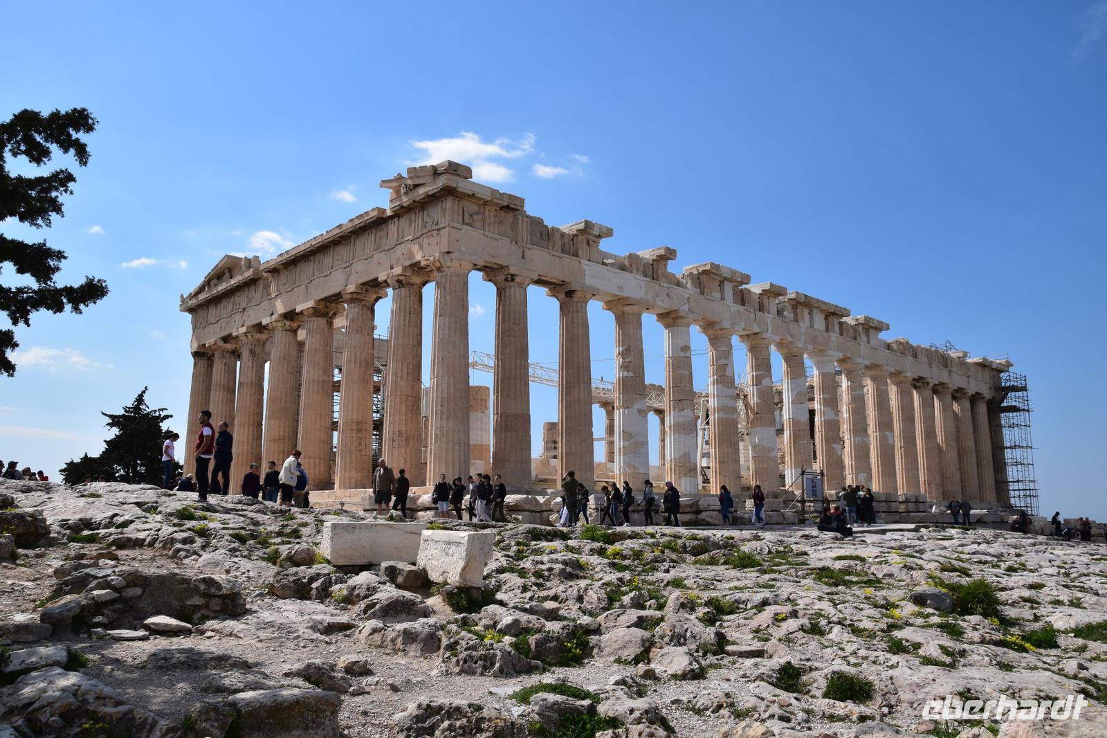 Wir treffen uns zur Panorama-Tour fahren aus dem Hafen und durch die Häuserzeilen von Piräus hinüber zur weiten Bucht vor Athen. Hier sind die Stadien und das neue Kulturzentrum der Stadt errichtet worden. Breite Alleestraßen führen zum Zentrum. Neben der großen Parkanlage mit dem Zeus-Tempel und mit römischen Ausgrabungen befinden sich die Paläste der Stadt, so auch das alte Schloss, welches heute Regierungssitz der Republik ist. Unser Hauptziel ist aber die Akropolis, die „Oberstadt" mit der Burganlage. Zu ihr klettern wir hinauf und besichtigen die Tempelanlagen auf dem 156 m hohen Burgberg. Perikles ließ diese Anlage nach der Zerstörung durch die Perser unter Leitung des berühmten Bildhauers Phidias um 400 vor Chr. neu errichten. Nach der verheerenden Zerstörung durch die Osmanen wurden in den letzten Jahren umfassende Rekonstruktionsarbeiten durchgeführt. Gerade befindet sich der Parthenon im Wiederaufbau.